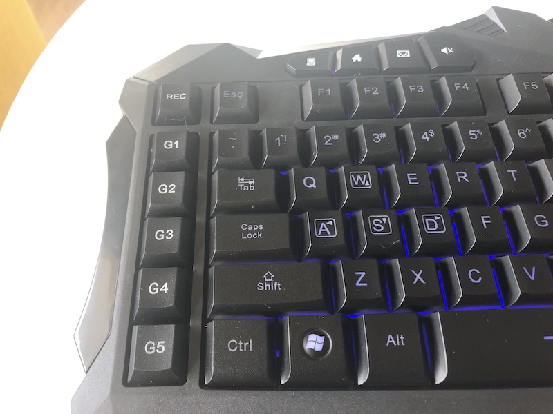 Na klawiaturze znajdziemy też dedykowany rządek przycisków, które możemy wykorzystać to zapisywania makr. Na górze znajdziemy przyciski do sterowania multimediami oraz skróty do np. poczty. Oczywiście są to dodatki typowo pecetowe, bo na konsoli nie mamy z nich zbytniego pożytku. Całość wykonana jest z dość twardego, chropowatego plastiku. Ciężko mi powiedzieć jak z wytrzymałością materiałów, bo nie rzucałem klawiaturą po przegranym meczu, ale znowu – za 70 zł nie mamy co spodziewać się cudów.