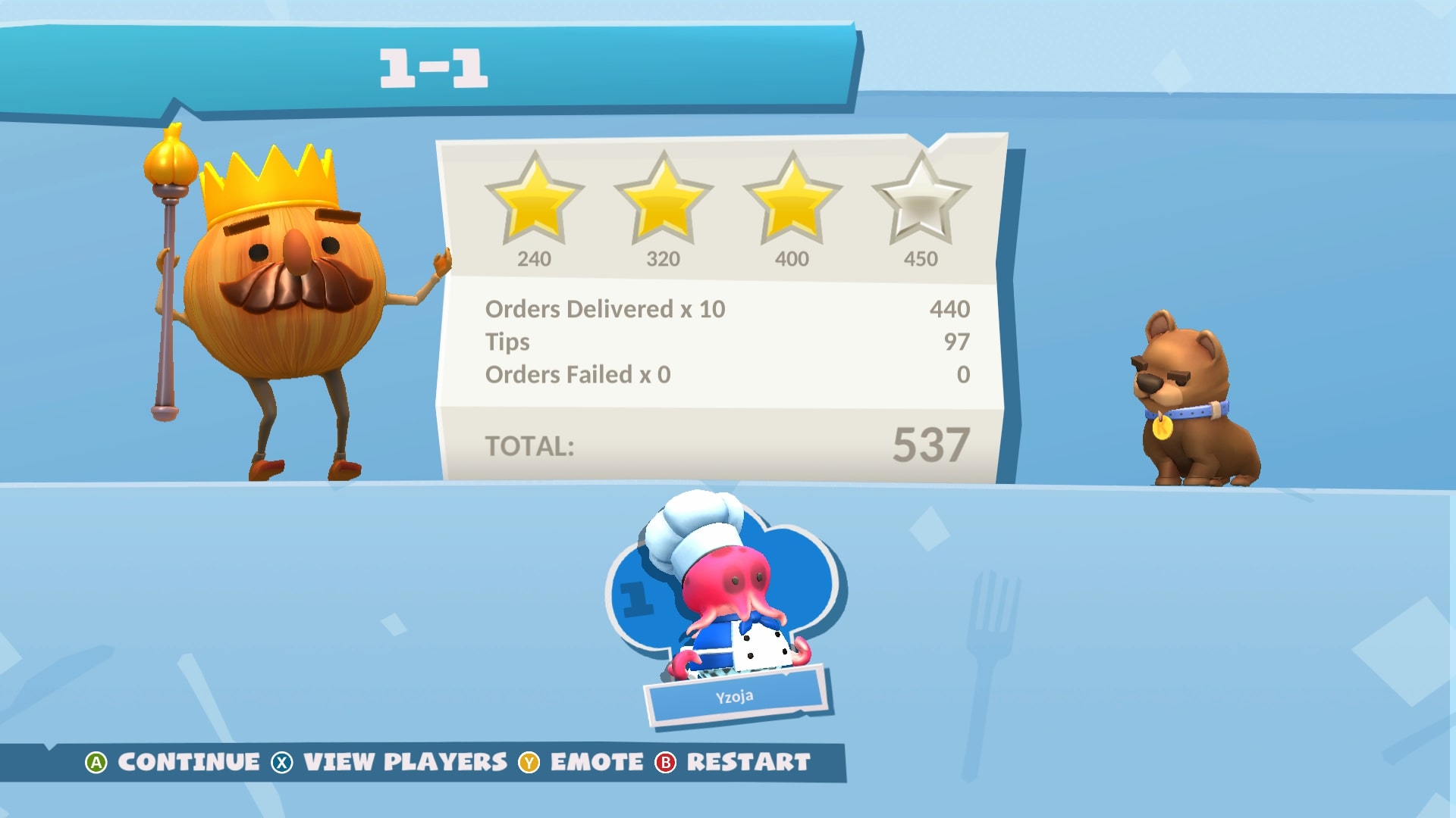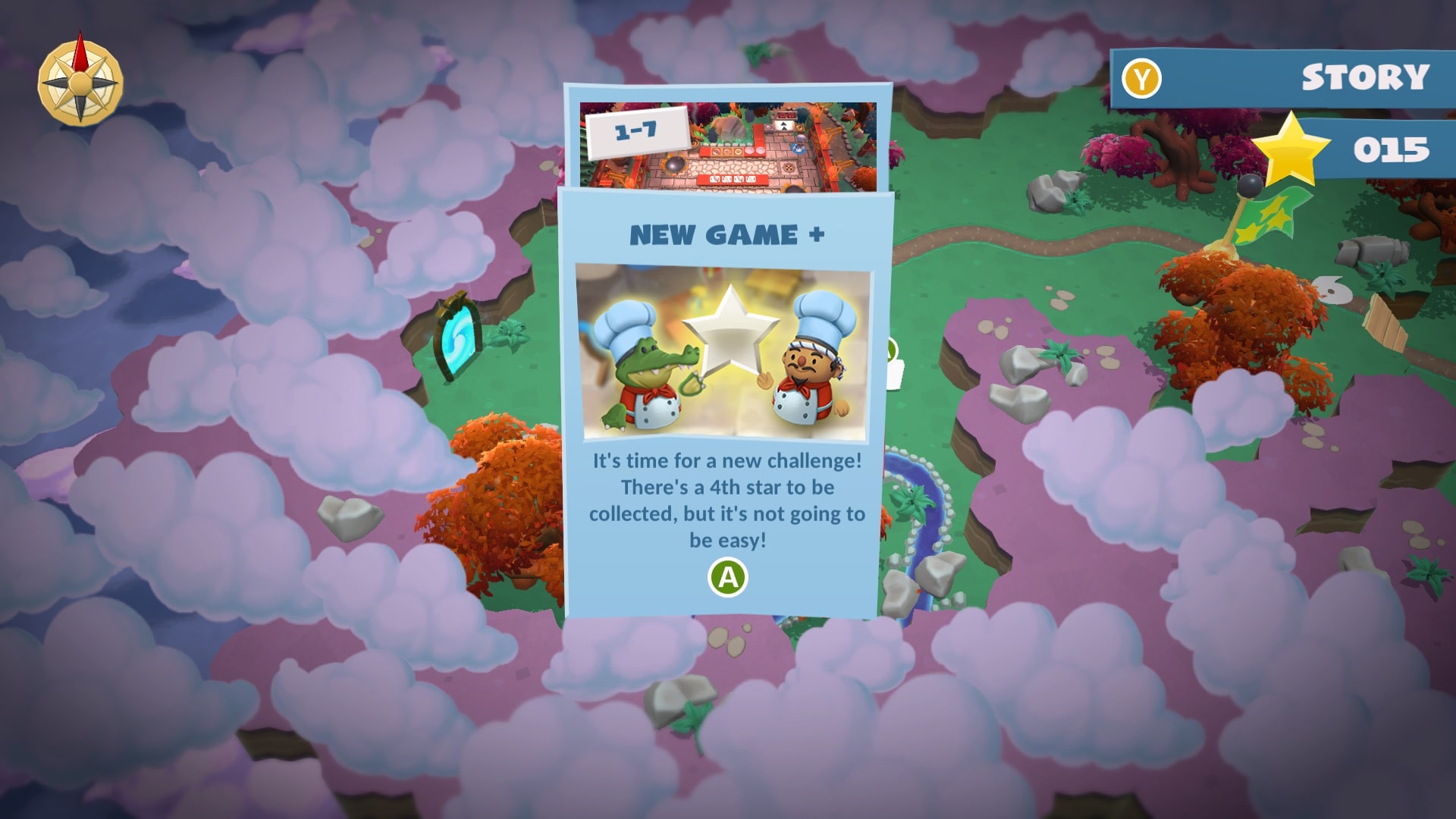Tak jak i w podstawowej grze, tak i tu, po ukończeniu wszystkich kuchni odblokowujemy tryb New Game + i czwartą gwiazdkę do zdobycia.