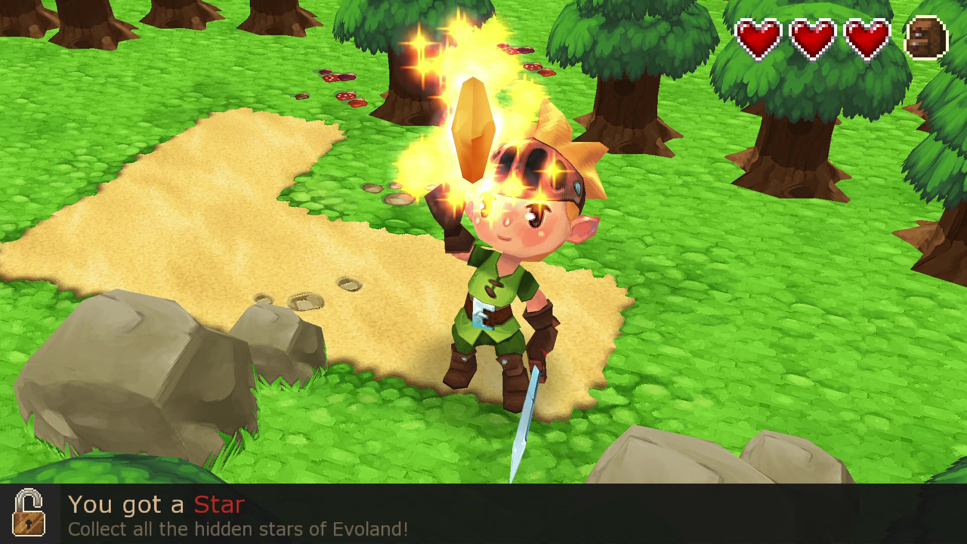 Rozpoczynając zabawę w Evoland 1 główny bohater nie potrafi nic poza chodzeniem w prawo, a podczas gry nie słyszymy nawet muzyki. Kolejne umiejętności i elementy rozgrywki uzyskujemy wraz z napotykanymi po drodze skrzynkami. Banalną fabułę, miecz, lepszą oprawę graficzną, muzykę czy możliwość rozmowy z NPC – wszystko to skrywają skrzynie.
