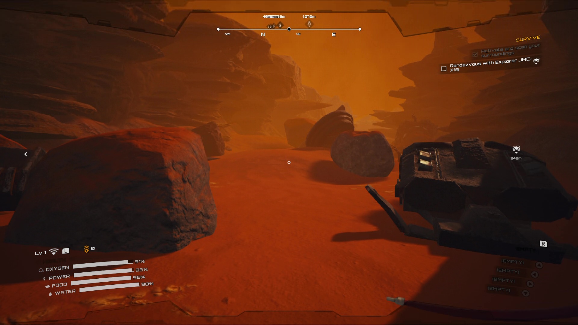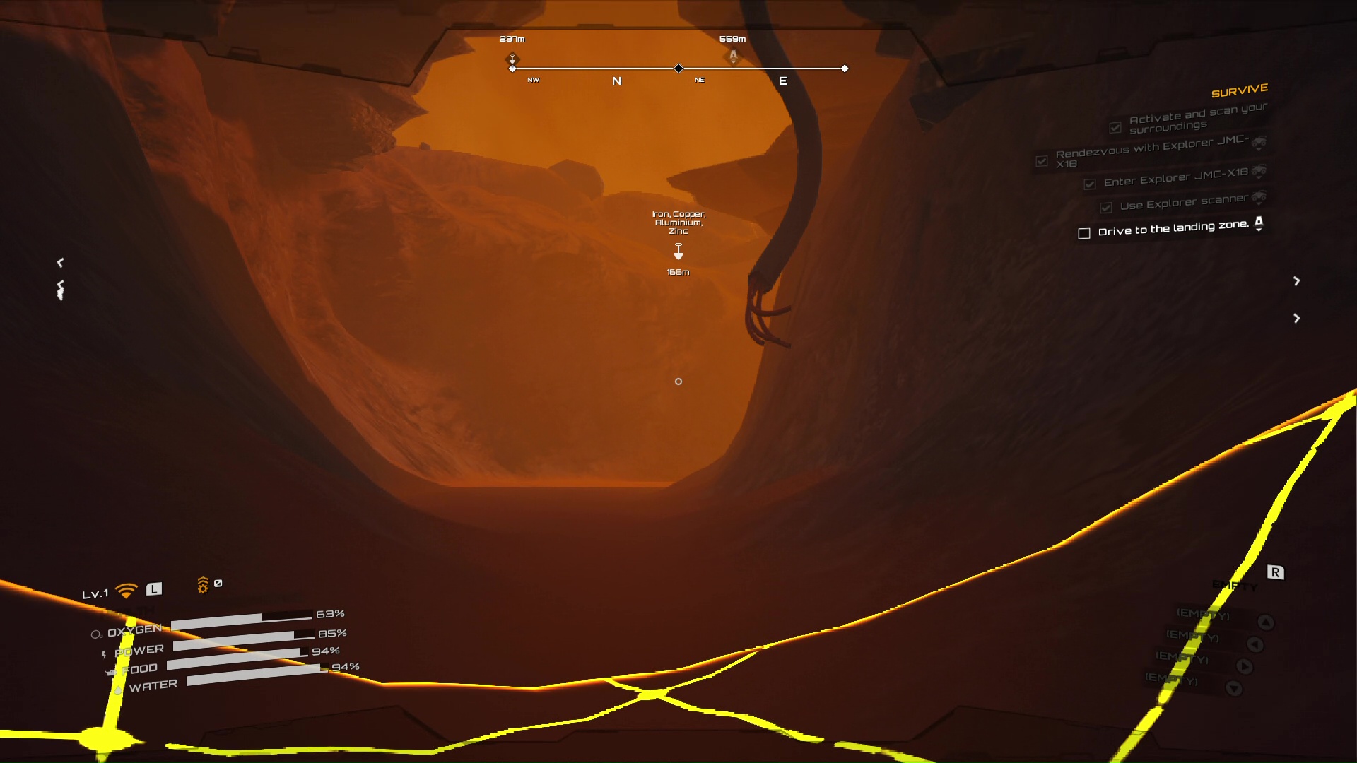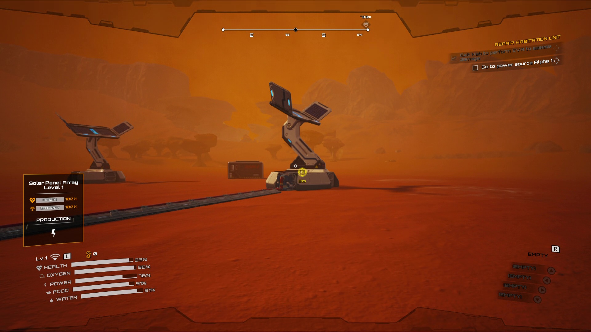 Podczas rozgrywki trzeba także stale monitorować parę głównych wskaźników, które ograniczają dystans, na który możemy odejść od bazy. Bez tlenu i pożywienia długo nie przetrwamy, a prąd wymagany jest do pracy urządzeń. Praktycznie więc stale eksplorujemy, zbieramy materiały potrzebne do rozbudowy naszej siedziby, dzięki czemu możemy wyruszyć jeszcze dalej.