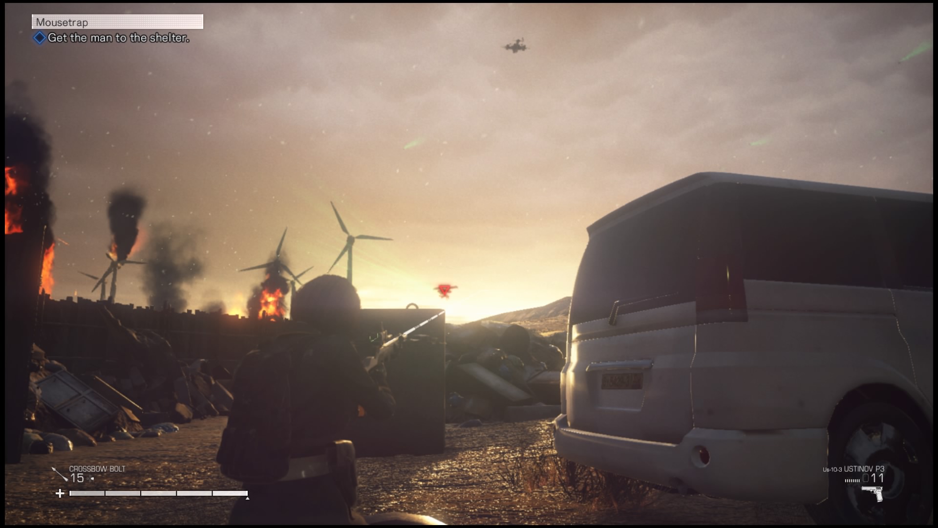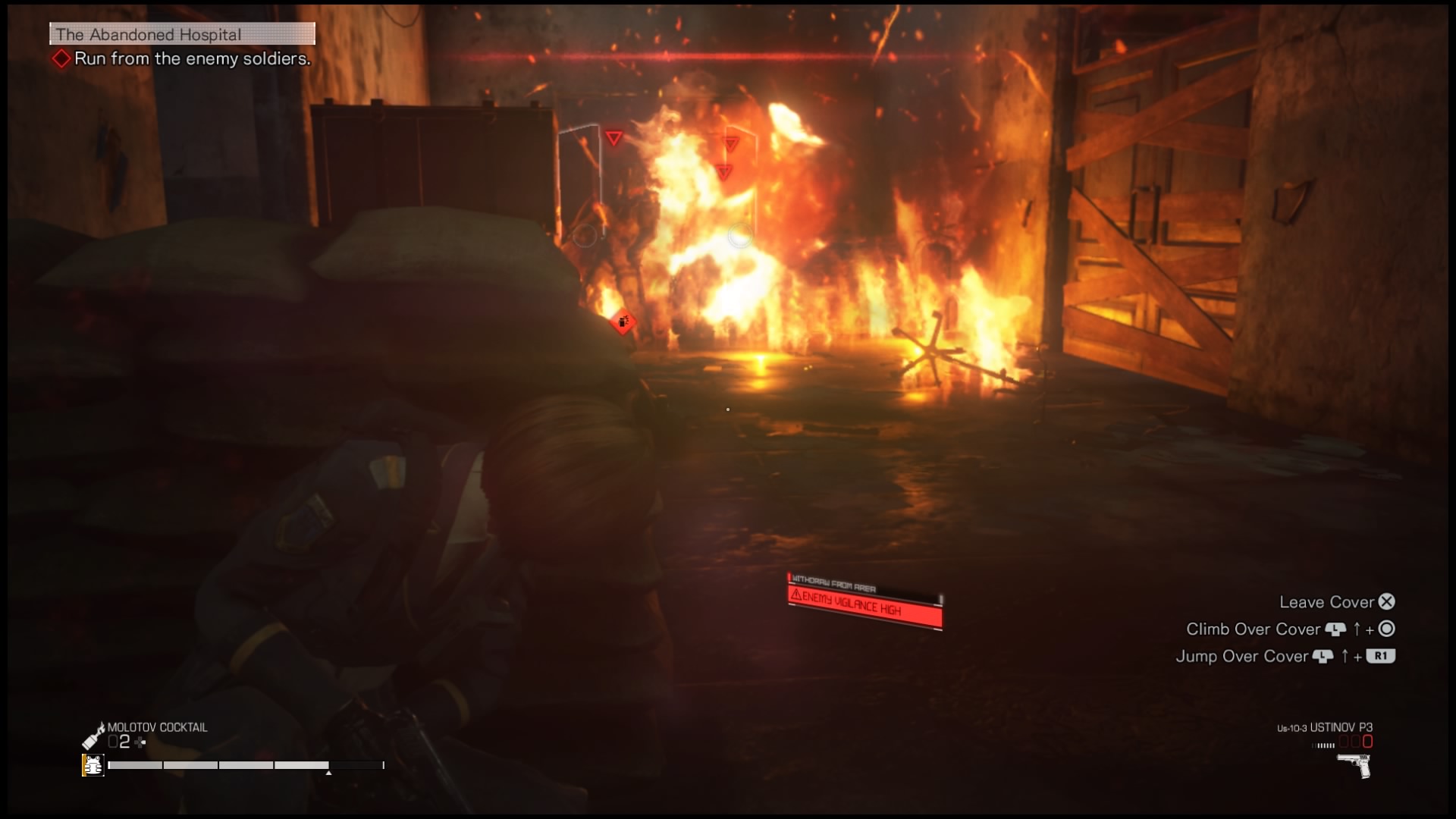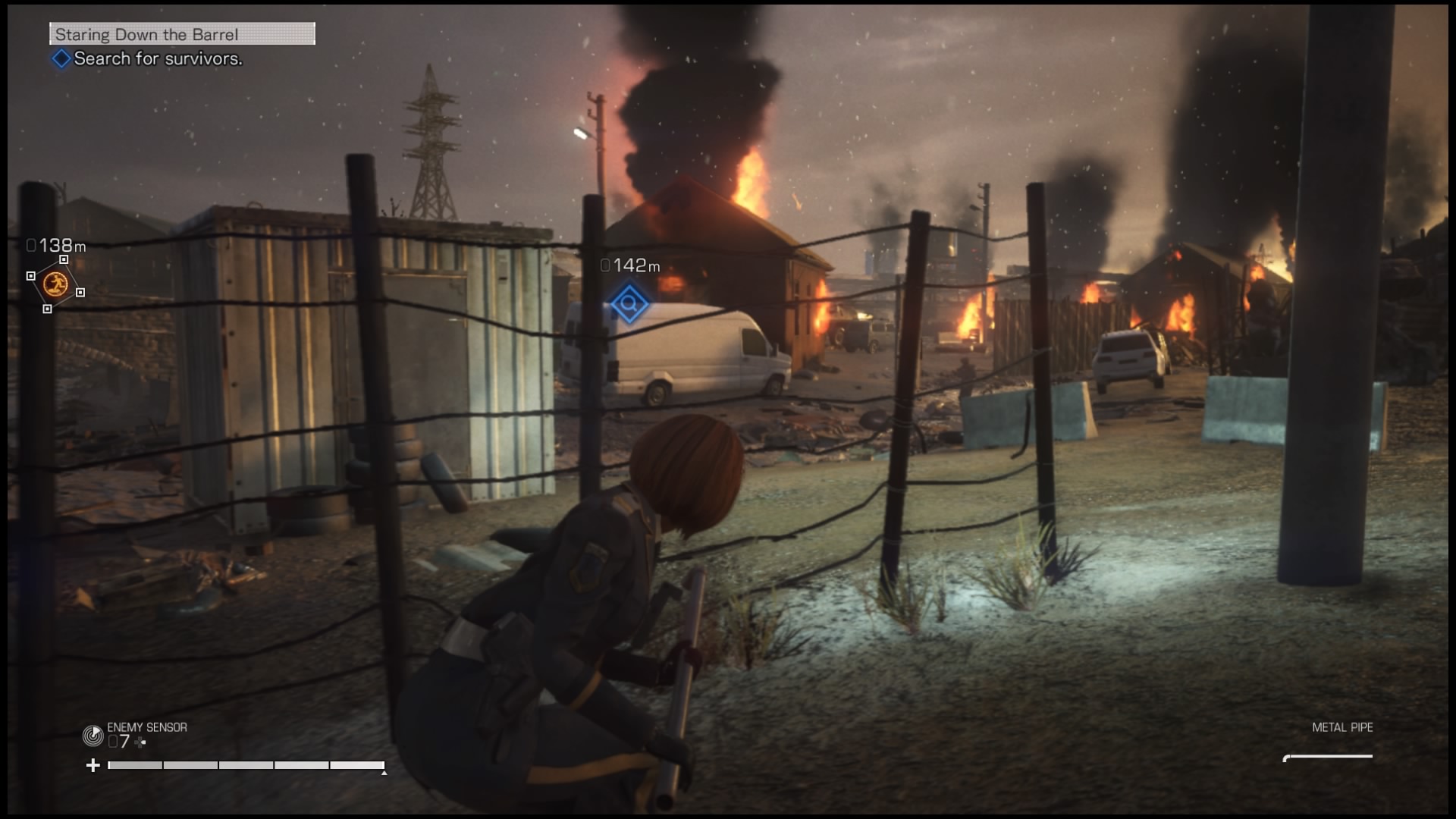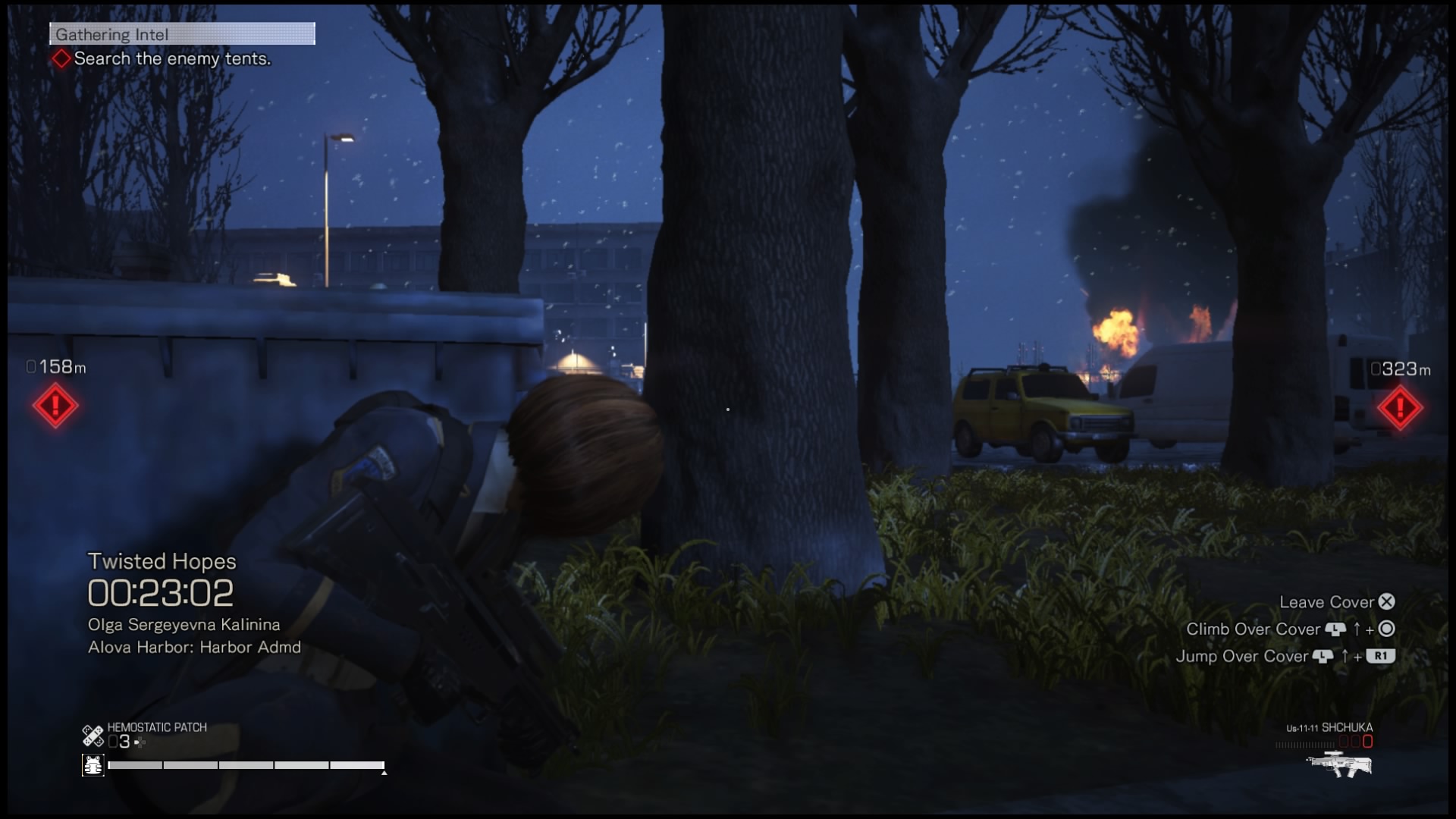 Na rozgrywkę składa się też szukanie ocalałych. W niemal każdej z kilkunastu misji, jakie będziemy przechodzić będziemy mogli uratować kilkoro cywilów pozostałych w strefie wojny. Po znalezieniu takiej osoby (i przekonaniu jej do pójścia z nami, może też się zabić jeśli rozmowa nie pójdzie nam dobrze) zazwyczaj podchodzimy do niej, naciskamy kwadrat i po krótkiej rozmowie będzie próbowała udać się do schronienia. Mamy mały wpływ na działanie tego NPC-a – naciśnięcie przy nim kwadratu przełączy postać niezależną między poruszaniem się i staniem, by umożliwić nam oczyszczenie okolicy. Jeśli tego nie zrobimy, żołnierze zostaną zaalarmowani i zabiją ocalałego. Zapewnia to jednak na tyle małą dawkę emocji, że szybko przestałem się przejmować ratowaniem ocalałych i skupiłem się na głównej linii fabularnej – która i tak, jak już pisałem wcześniej, nie należy do najlepszych