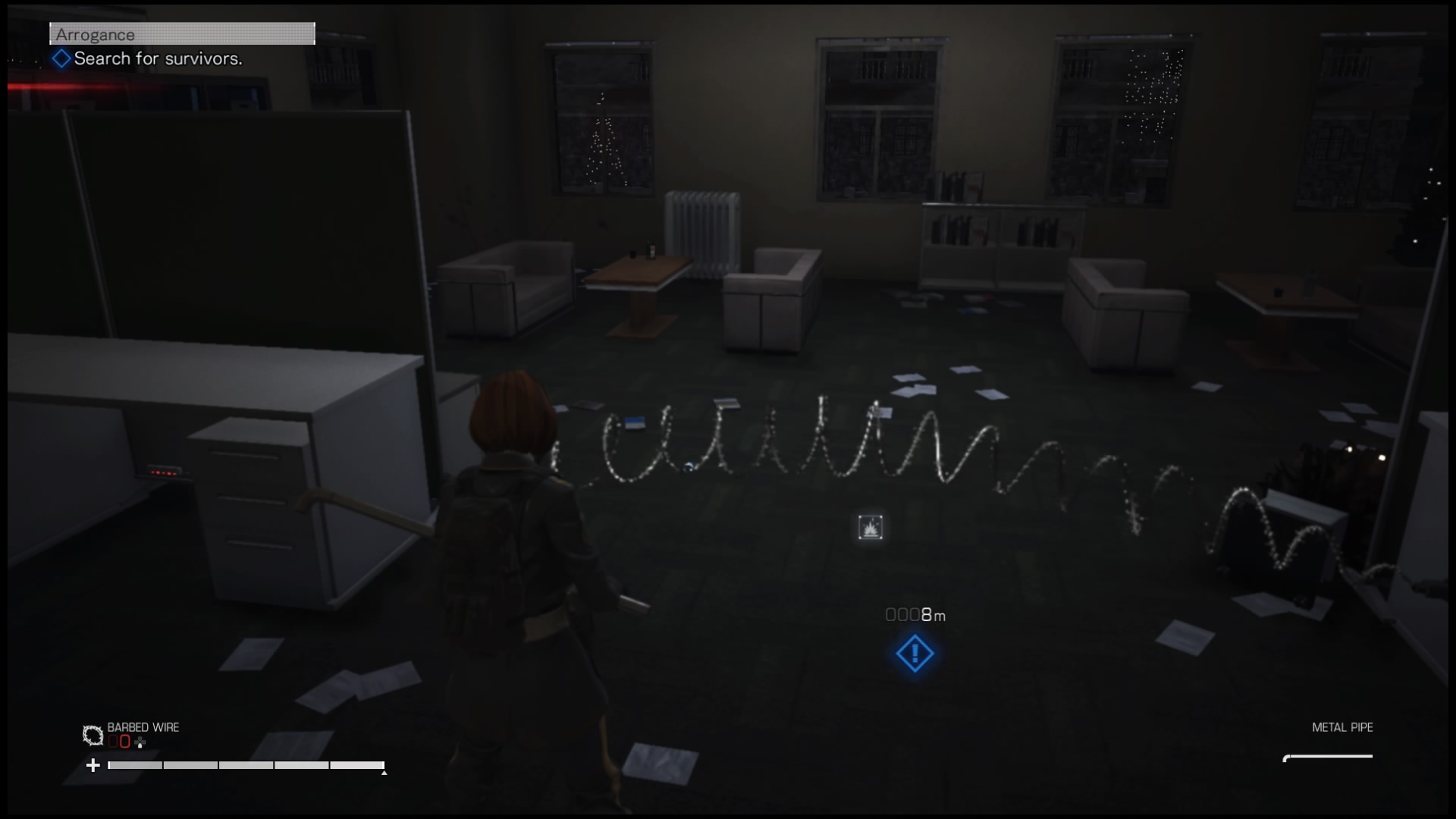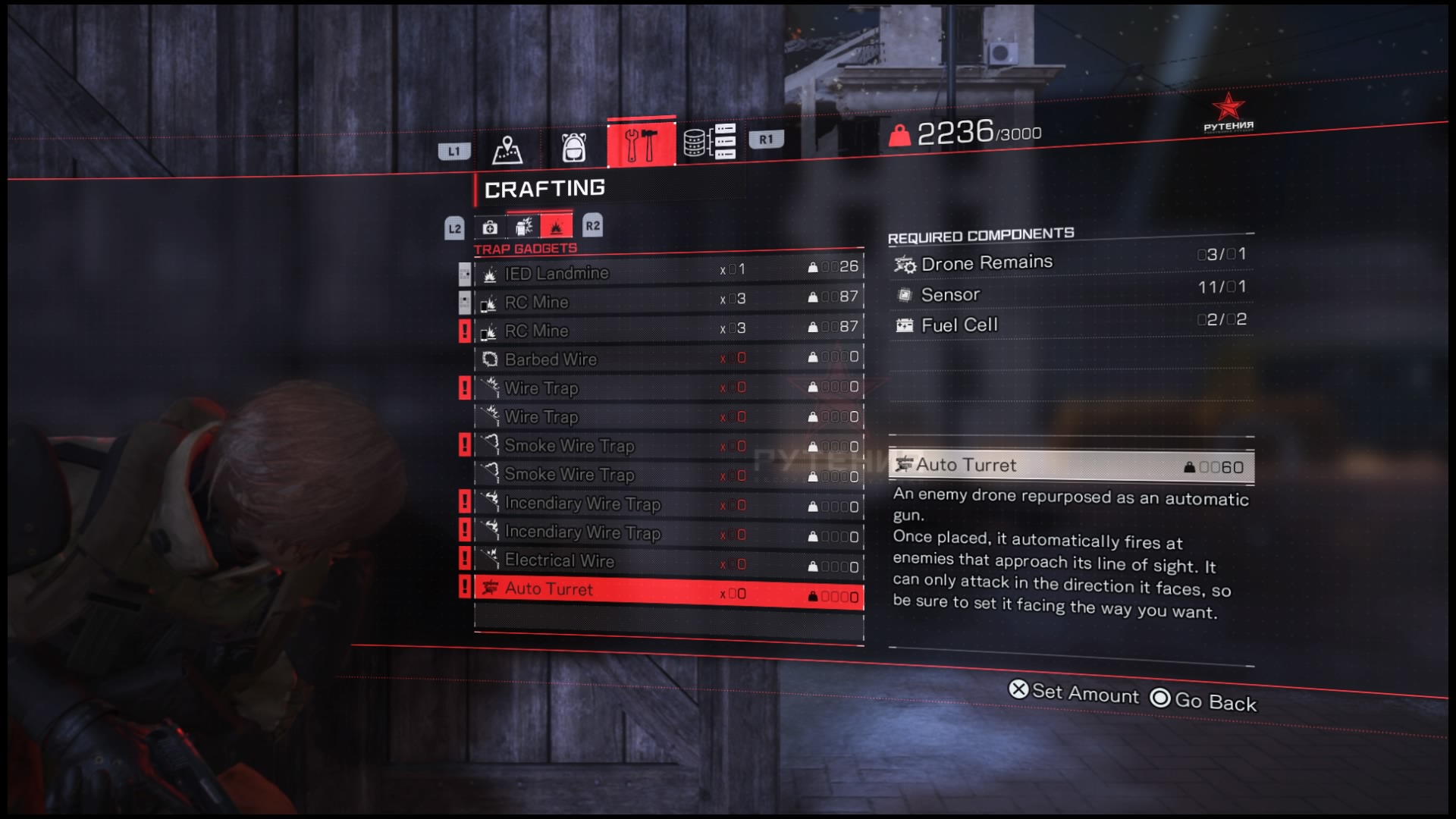 W Left Alive mamy do dyspozycji również gadżety. Tych jest naprawdę sporo. Są między innymi pułapki – połączone sznurem ładunki gazu lub prądu, mamy granaty EMP, zapalające, błyskowe, odłamkowe, miny zbliżeniowe i zdalnie detonowane, koktajle Mołotowa, wykrywacz przeciwników, kuszę z różnego rodzaju bełtami (zwykłymi, zapalającymi, elektrycznymi), apteczki, bandaże, tabletki przeciwbólowe, wybuchowe puszki – zdecydowanie jest w czym przebierać. Co istotne, większość gadżetów będziemy sami wytwarzali ze znalezionych w świecie gry surowców. Każde uruchomienie Left Alive zmienia liczbę poszczególnych surowców niezbędnych do skonstruowania określonego przedmiotu, ale nie ma to większego wpływu na rozgrywkę. Surowce znajdujemy leżące luzem na terenie Novo Slavy, ale przy podnoszeniu przedmiotów warto zwracać uwagę na udźwig naszej postaci. Nie może ona nieść wszystkiego, co tylko chcemy, jej kieszenie i plecaki mają z góry ustaloną pojemność. Możemy ją oczywiście zwiększać, szukając lepszych plecaków, ale nie unikniemy sytuacji, w której będziemy musieli zdecydować się, co wyrzucić, a co wziąć. Ostatecznie zorientowałem się, że mimo ogromnego asortymentu gadżetów stosuję w kółko kilka podstawowych. Gra w żaden sposób nie zachęca do zmian wykorzystywanych urządzeń i wszystkie starcia możemy ukończyć z prosty sposób: koktajl Mołotowa, strzelanie czym się da, granat odłamkowy, strzelenie, koktajl i tak dalej. Jeśli po drodze do szewskiej pasji nie doprowadzi nas idiotyczna SI przeciwników oczywiście.