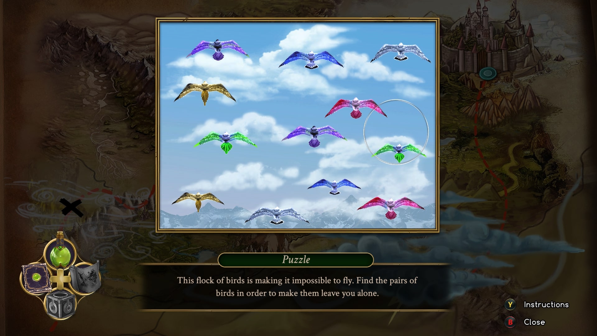 Zagadki typu Hidden Objects w sumie mnie tu irytowały. Tych “typowych”, gdzie mamy napisane nazwy przedmiotów i musimy je znaleźć było niewiele. Sporo było takich, gdzie trzeba było znaleźć kilkanaście sztuk czegoś oraz autentycznie diabelskie, gdzie były tylko zaznaczone kształty i trzeba było po nich odszukać odpowiedni przedmiot. No i nie wolno zapomnieć o tych, gdzie wśród dziesiątek symboli trzeba było znaleźć jeden konkretny. Oczywiście można te plansze pominąć i przejść do prostej gry w memory.
