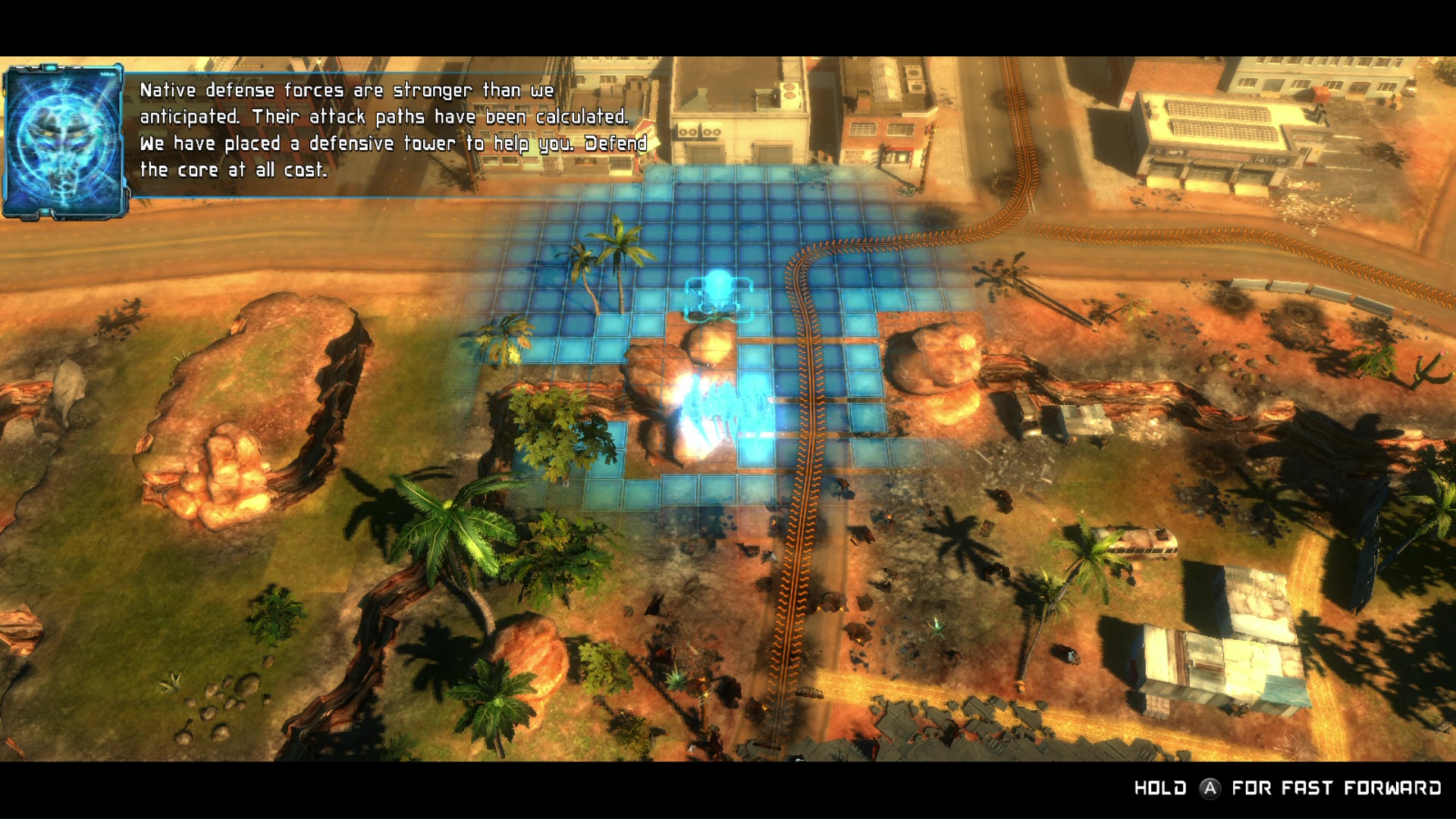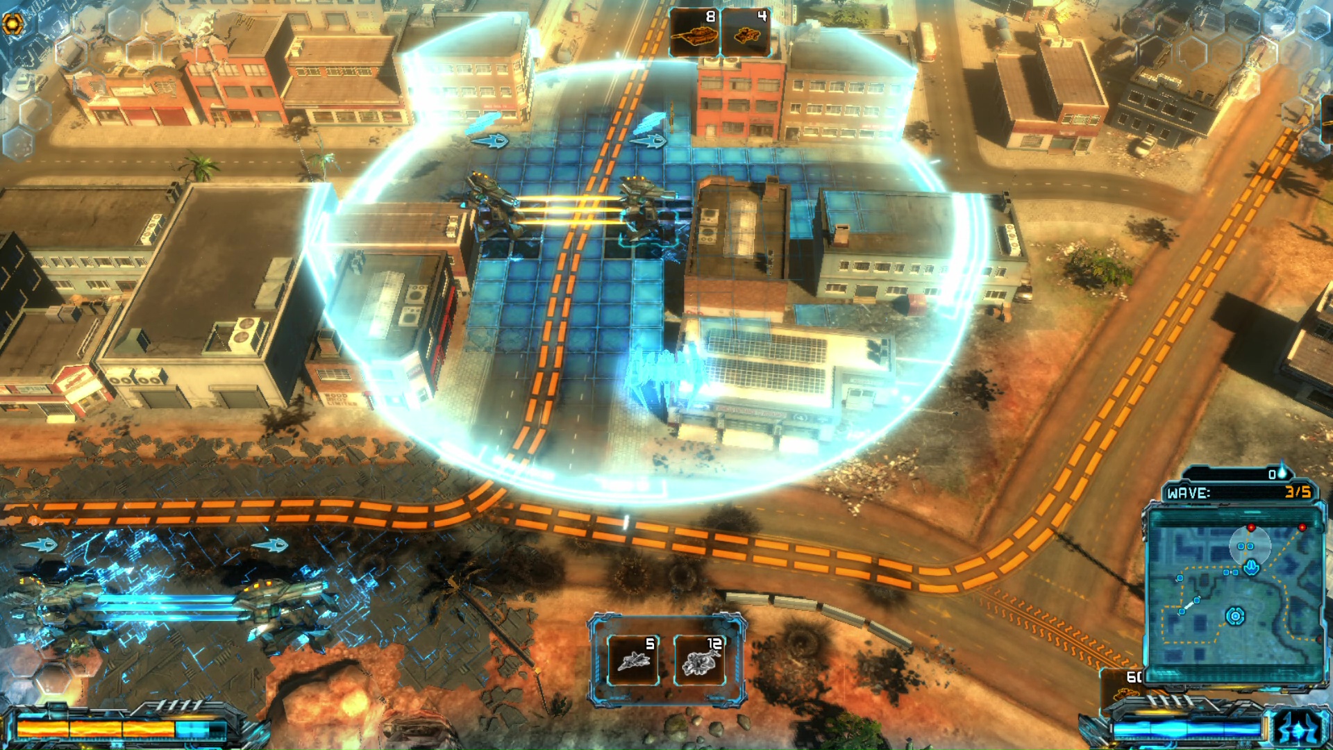 Sam statek jednak nie wystarcza do pokonania całego ziemskiego wojska. Dlatego też musimy budować wieżyczki, pomagające nam w obronie. Wraz z postępami odblokowujemy dostęp do kolejnych typów budowli, gdzie każdy sprawdza się lepiej przeciwko innym przeciwnikom. Ustawiając parę wież blisko siebie mamy możliwość blokowania ścieżek, przez co wróg będzie musiał docierać do naszej bazy dłuższą, wolniejszą trasą. Ostatnią falą w każdej misji jest boss, którego pokonanie wymaga nieco innej taktyki i atakowania jego słabych punktów.