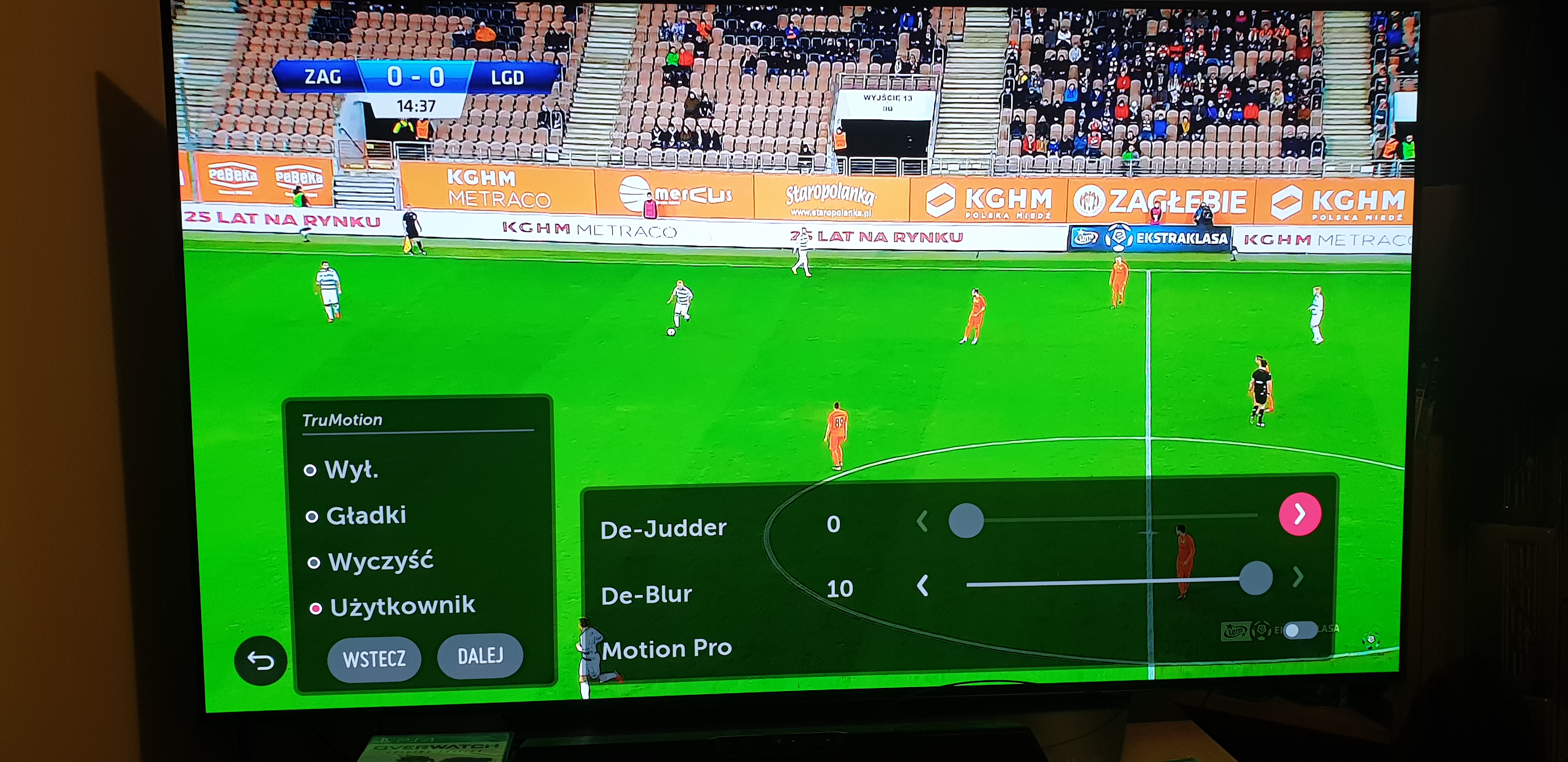Matryca w OLED B8 pracuje z prędkością 120 mHz, czyli jest idealna do oglądania sportu. Jednak w niektórych transmisjach może pojawić się efekt smużenia, aby poprawić sobie jakość obrazu w transmisji sportowej warto udać się do funkcji TrueMotion i dolnym suwakiem odpowiednio wyregulować sobie ostrość obrazu. Górny suwak służy natomiast do poprawiania płynności obrazu np. w filmach nagranych w 24 klatkach na sekundę.