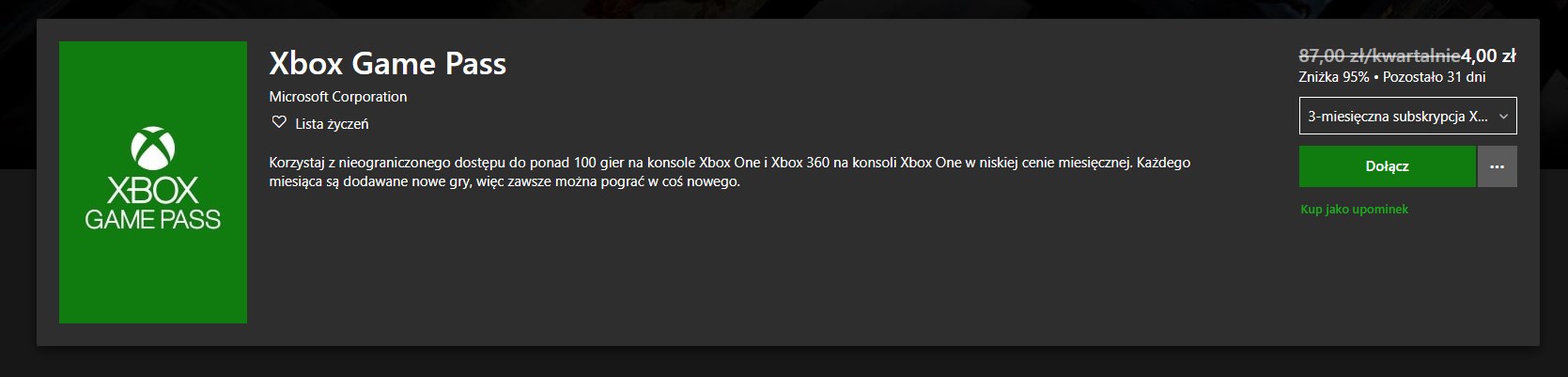 Microsoft Store obnizka promocja Xbox Game Pass