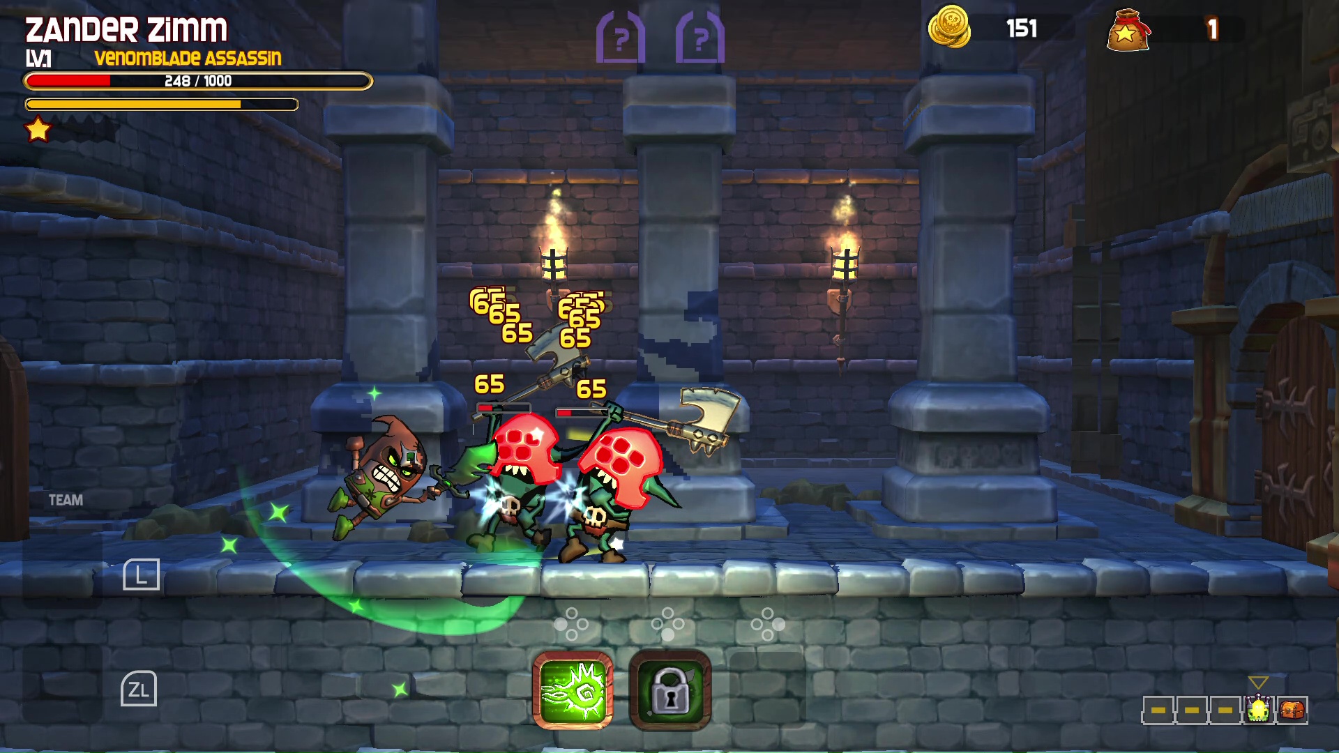 Naszym głównym zadaniem jest przemierzanie kolejnych lochów, z czego każdy składa się z paru pięter. Wybrany bohater porusza się samodzielnie, zatrzymując się przy wszystkich przeciwnikach. Wszystko, co musimy robić to wciskanie paru przycisków, odpowiadających za ciosy, czy blok. Po drodze natrafiamy na sporą liczbę różnorodnych przeciwników, gdzie każdy atakuje nieco odmiennie. Większego urozmaicenia rozgrywki tutaj nie znajdziemy, przez co zabawa szybko zaczyna się nudzić.
