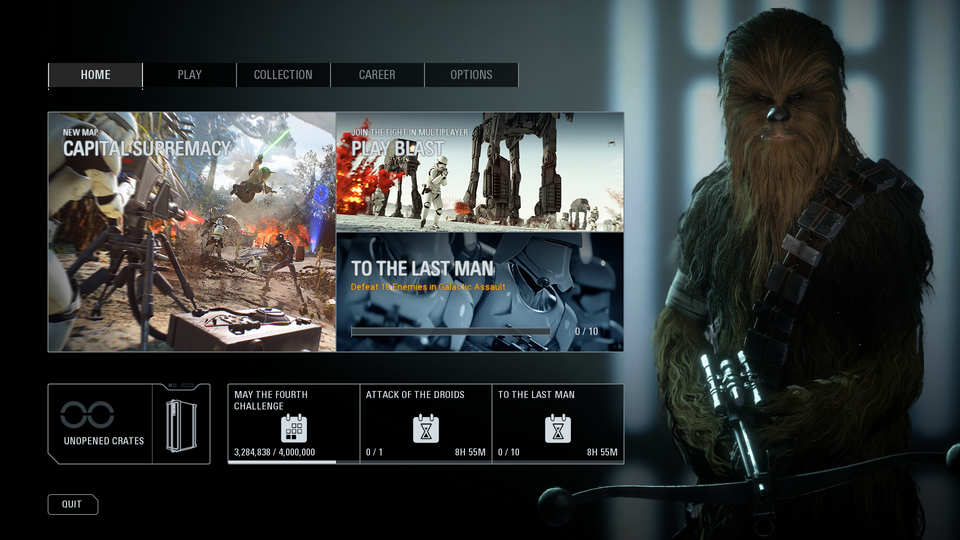 Na razie twórcy nie zapowiedzieli żadnych takich planów, ale w menu głównym gry umieścili model najsłynniejszego Wookiego.