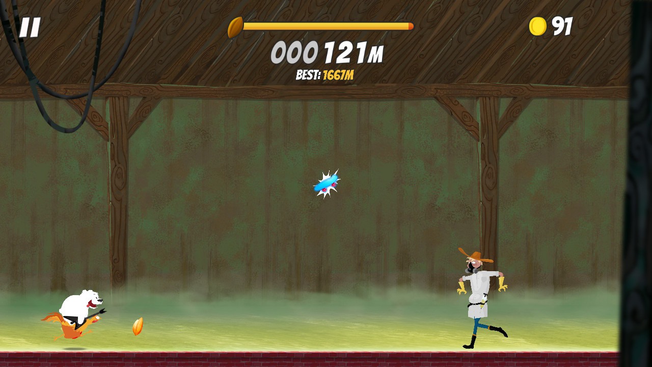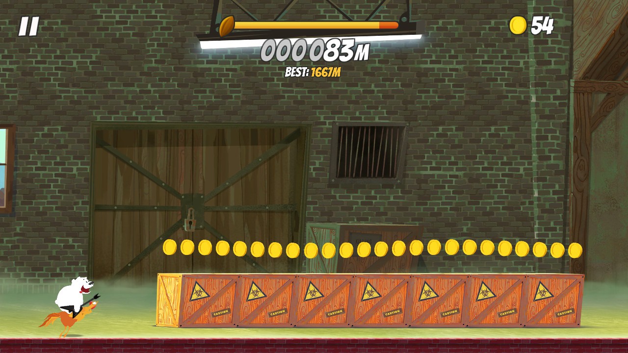 Kierujemy misiem polarnym jeżdżącym na kurczaku. Podczas rozgrywki korzystamy wyłącznie z jednego przycisku (A lub ZR), służącego do wykonywania skoku. Postać samodzielnie biegnie coraz szybciej naprzód, a naszym jedynym zadaniem jest unikanie nadciągających przeszkód. Przy okazji zbieramy monety, jedzenie dla kurczaka oraz różnorakie power upy (np. magnes przyciągający pieniądze, czy też kask chroniący nas przed uderzeniem w przeszkodę). Trasa generowana jest losowo, dzięki czemu kolejne podejścia nieco różnią się.