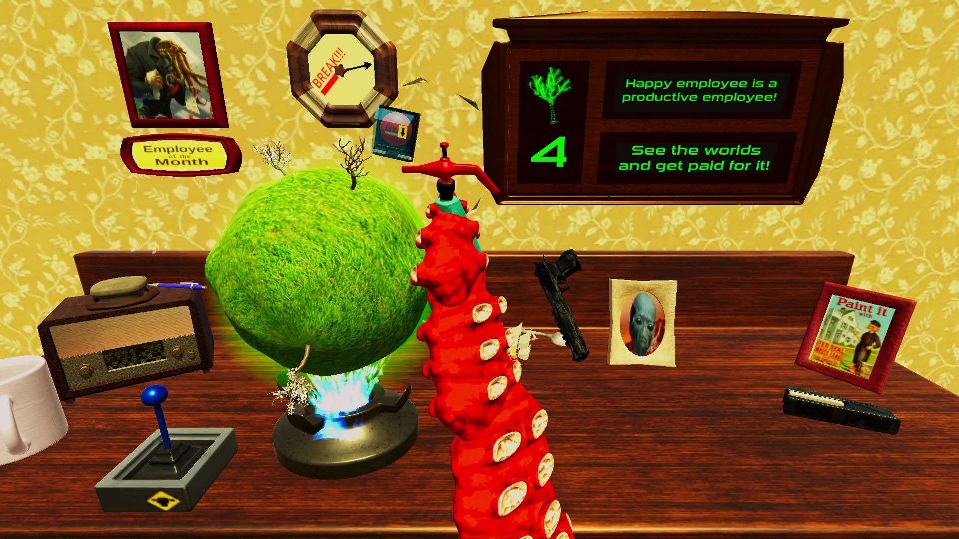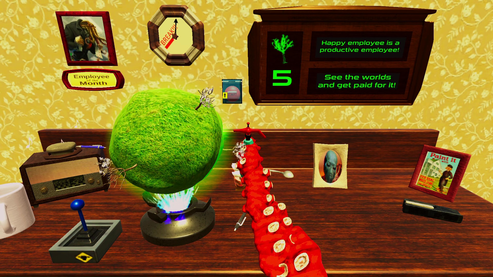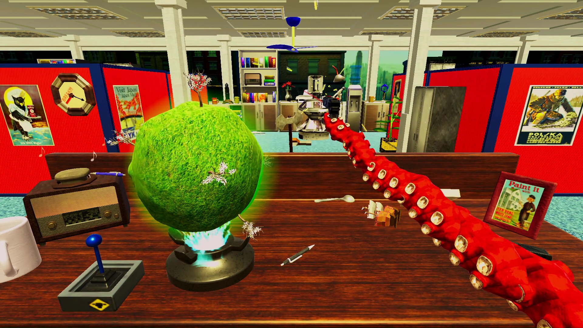 Zasiadamy więc za biurkiem, zapoznajemy się z krótką instrukcją i zabieramy się do pracy. Wiszący zegar wskazuje nam ile czasu zostało do końca dniówki. Największą przeszkodą podczas dnia nie będzie jednak poziom trudności wykonywanych zadań – wydają się one wręcz banalne.. Naszym największym wrogiem jest koszmarne, często irytujące sterowanie. Skutecznie utrudnia ono rozgrywkę. Dodatkowo nie ułatwia rozgrywki stanowczo zbyt powolne poruszanie się macki.