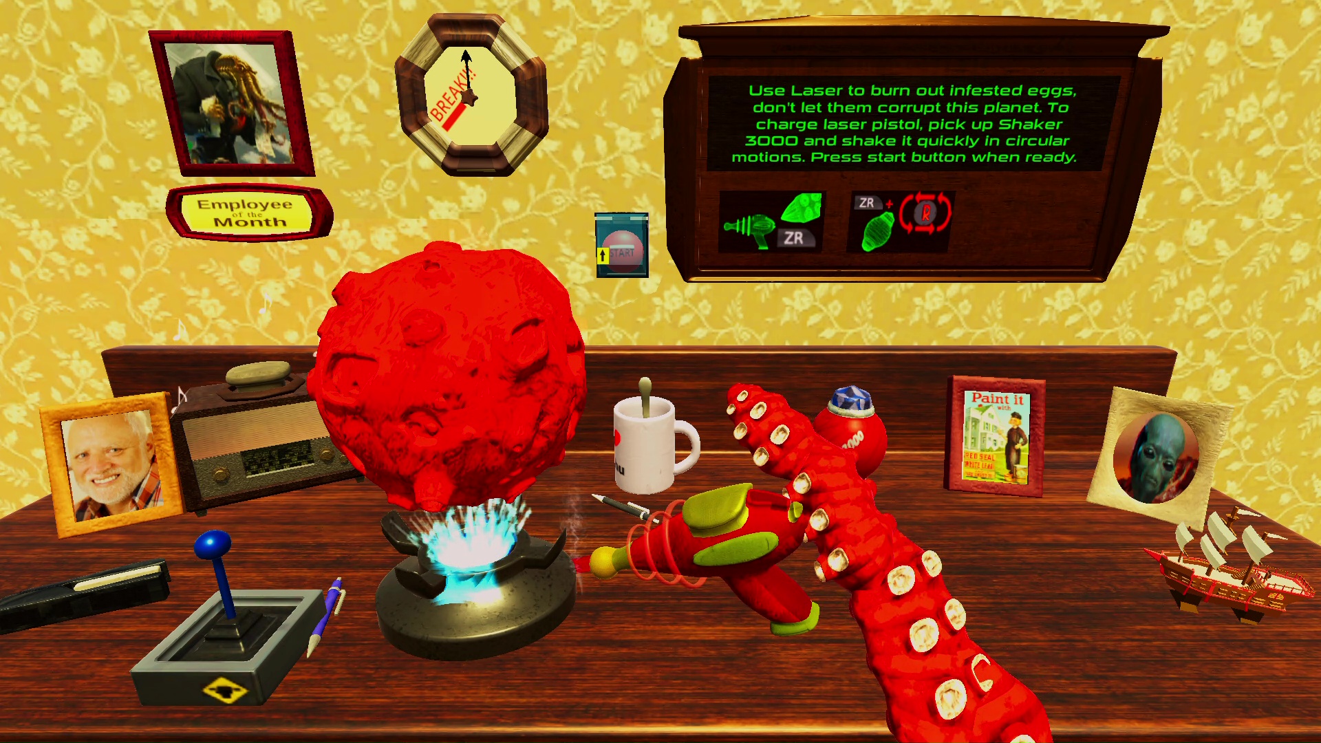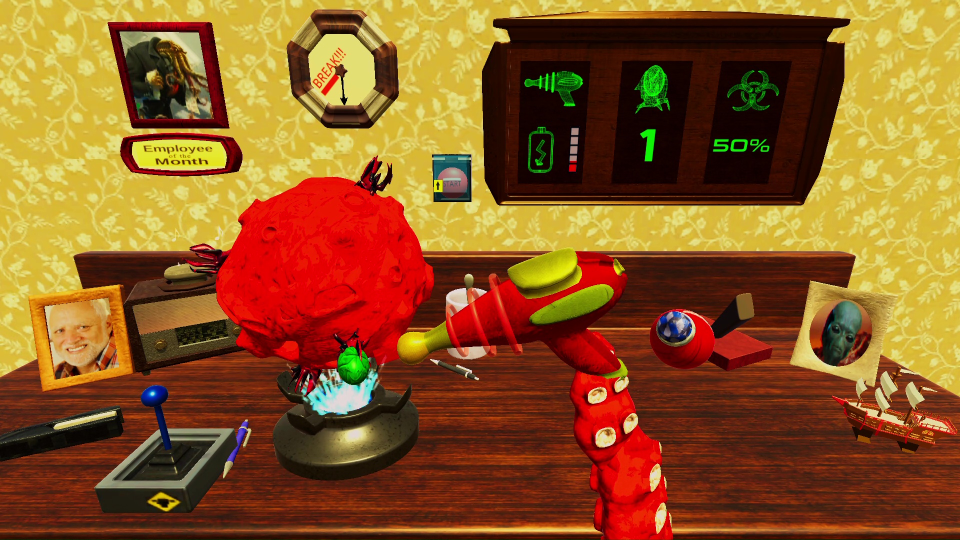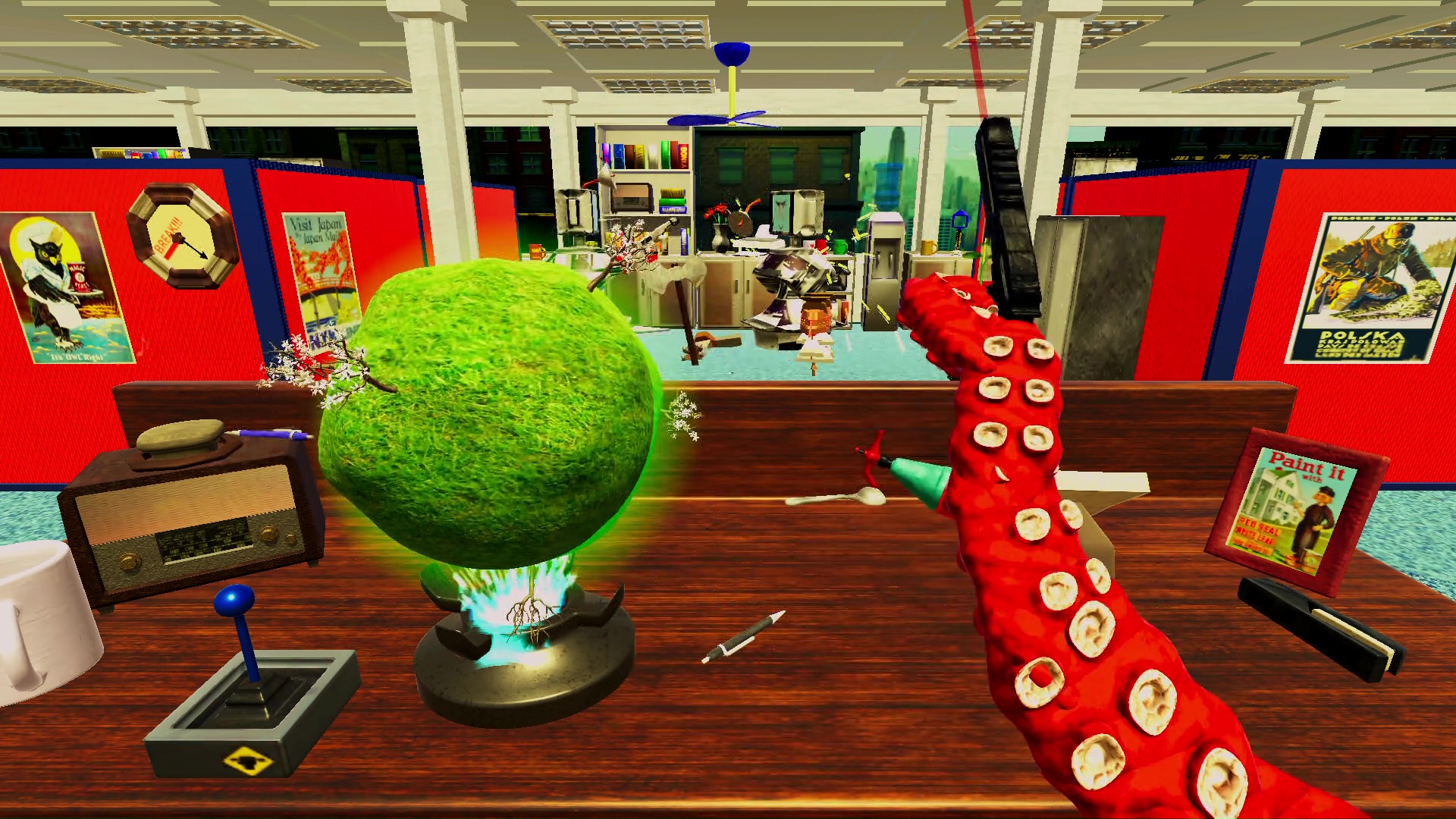 Zasiadamy więc za biurkiem, zapoznajemy się z krótką instrukcją i zabieramy się do pracy. Wiszący zegar wskazuje nam ile czasu zostało do końca dniówki. Największą przeszkodą podczas dnia nie będzie jednak poziom trudności wykonywanych zadań – wydają się one wręcz banalne.. Naszym największym wrogiem jest koszmarne, często irytujące sterowanie. Skutecznie utrudnia ono rozgrywkę. Dodatkowo nie ułatwia rozgrywki stanowczo zbyt powolne poruszanie się macki.