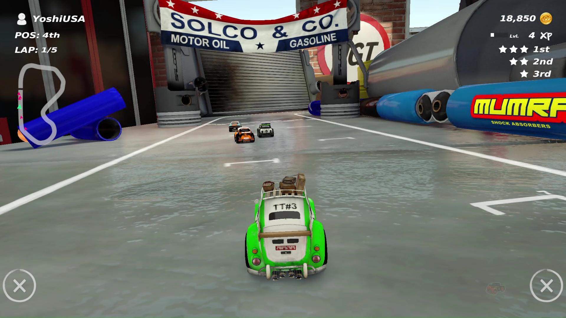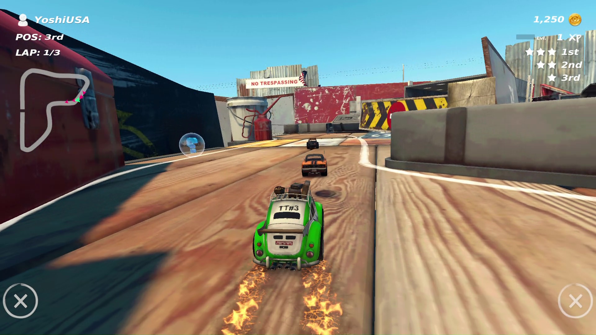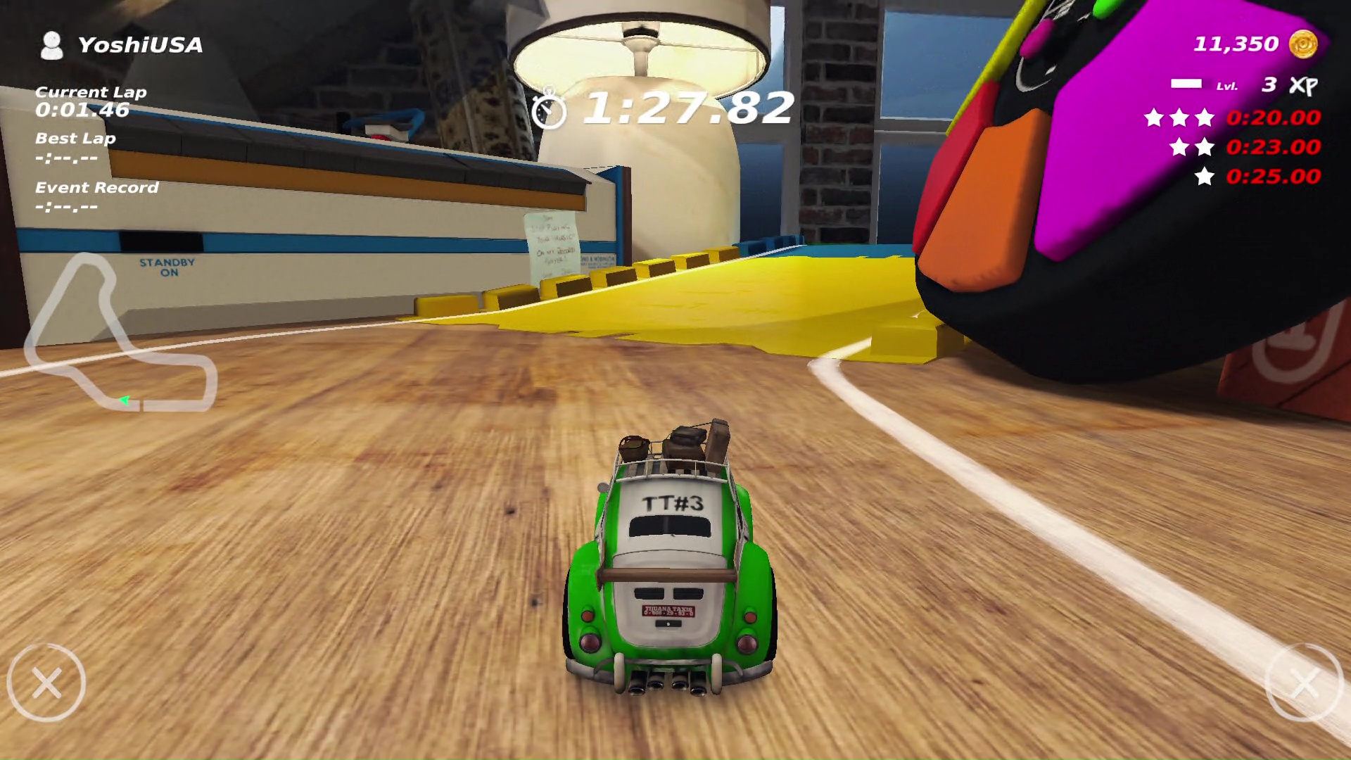 Nieco zawodzi liczba dostępnych pojazdów. Do nasze dyspozycji oddano zaledwie 16 aut, podzielonych dodatkowo na trzy klasy. Choć nie znajdziemy tutaj żadnej licencjonowanej bryki, miniaturowe samochody wyraźnie inspirowane są znanymi maszynami. Nawet nazwy zostały wyłącznie lekko zmienione – Ferrari zmieniło się w Fauxrarri, Bugatti w Baguetti, a Ford Mustang Hoonicorn dostępny jest jako Huuligun. Zręcznościowy model jazdy jest całkiem przyjemny, nie ma uczucia jakbyśmy sterowali kartonami, a każde auto prowadzi się nieco inaczej. Statystyki każdego z nich możemy dodatkowo ulepszyć wydając odpowiednią sumę zdobytych pieniędzy. Ciekawym ulepszeniem są niesamowicie drogie opony, dające nam dodatkową umiejętność – dla przykładu podskok, chwilową osłonę przed atakami wrogów, czy wysuwające się kolce.