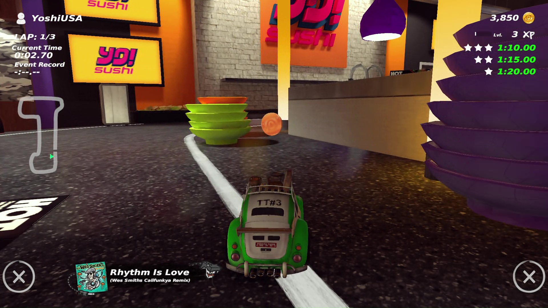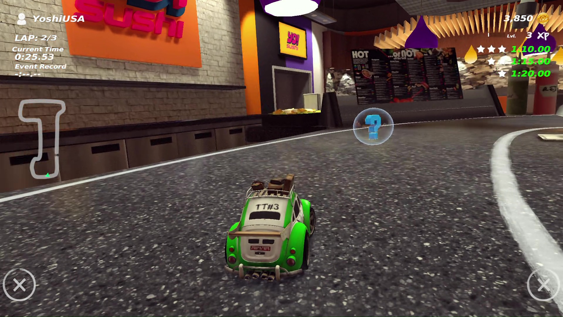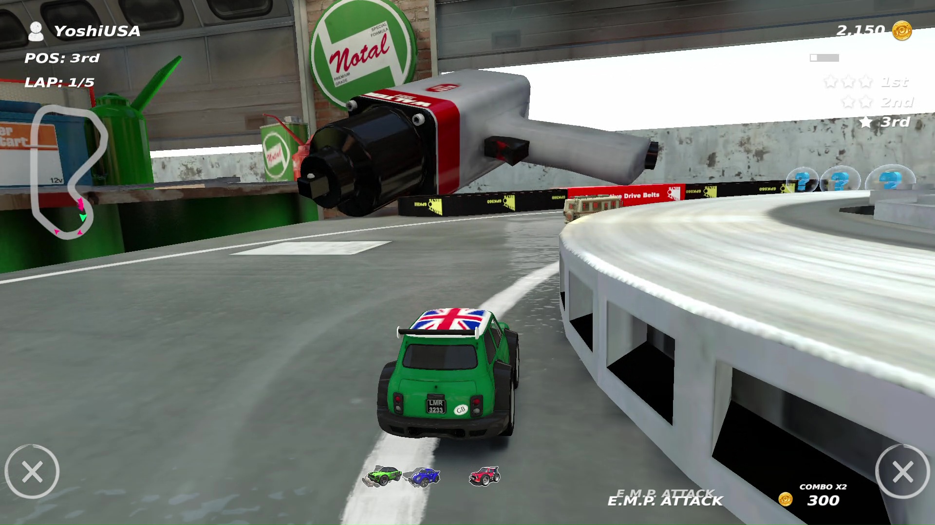 Nieco zawodzi liczba dostępnych pojazdów. Do nasze dyspozycji oddano zaledwie 16 aut, podzielonych dodatkowo na trzy klasy. Choć nie znajdziemy tutaj żadnej licencjonowanej bryki, miniaturowe samochody wyraźnie inspirowane są znanymi maszynami. Nawet nazwy zostały wyłącznie lekko zmienione – Ferrari zmieniło się w Fauxrarri, Bugatti w Baguetti, a Ford Mustang Hoonicorn dostępny jest jako Huuligun. Zręcznościowy model jazdy jest całkiem przyjemny, nie ma uczucia jakbyśmy sterowali kartonami, a każde auto prowadzi się nieco inaczej. Statystyki każdego z nich możemy dodatkowo ulepszyć wydając odpowiednią sumę zdobytych pieniędzy. Ciekawym ulepszeniem są niesamowicie drogie opony, dające nam dodatkową umiejętność – dla przykładu podskok, chwilową osłonę przed atakami wrogów, czy wysuwające się kolce.