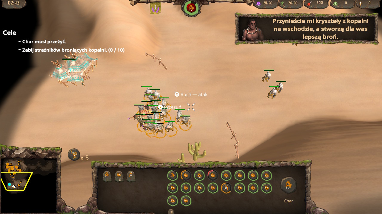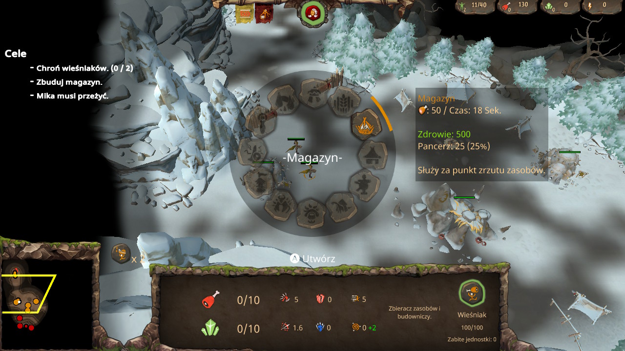 Podczas zabawy ważne jest zdobywanie trzech surowców. Kryształy wydobywamy ze złóż, jedzenie znajdujemy na krzakach. Możemy sobie ułatwić ich zbieranie poprzez budowanie kopalni i farmy. Surowce pozwalają nam na wznoszenie różnorakich budynków, generujących nam kolejne potrzebne jednostki.