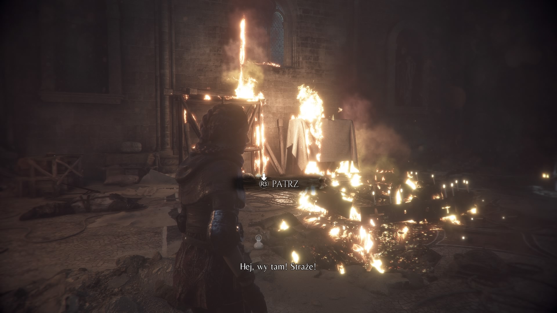 To jednak nie wszystko, co zostanie oddane do naszej dyspozycji. W miarę postępów fabularnych odblokujemy szereg nowych gadżetów. Zyskamy dostęp do Ignifiera, dzięki któremu zapalimy na pewien czas paleniska. Po kilku następnych rozdziałach będziemy w stanie gasić ogień dzięki następnemu gadżetowi. Przeciwników, których chroni zbroja będziemy mogli zmusić do zdjęcia hełmu, a następnie wyeliminować celnym rzutem kamieniem (każdy oponent (poza jednym na końcu) ginie po trafieniu go w nieosłonioną głowę). Im bliżej końca gry, tym bardziej agresywne są działania Amicii i Hugo. Przyznam, że dziwnie było mi oglądać zmianę nastawienia postaci do odbierania życia innym. Początkowe dylematy i rozterki moralne bardzo szybko ustępują miejsca przeistoczeniu się w bezlitosną maszynę do zabijania. Nie miałbym niczego przeciwko temu – w końcu sytuacja, w jakiej znaleźli się bohaterowie musi wywrzeć na nich jakiś wpływ – ale transformacja ta nie została odpowiednio przedstawiona, przez co mam wrażenie nagłego obcowania z innymi, nieznanymi mi postaciami.