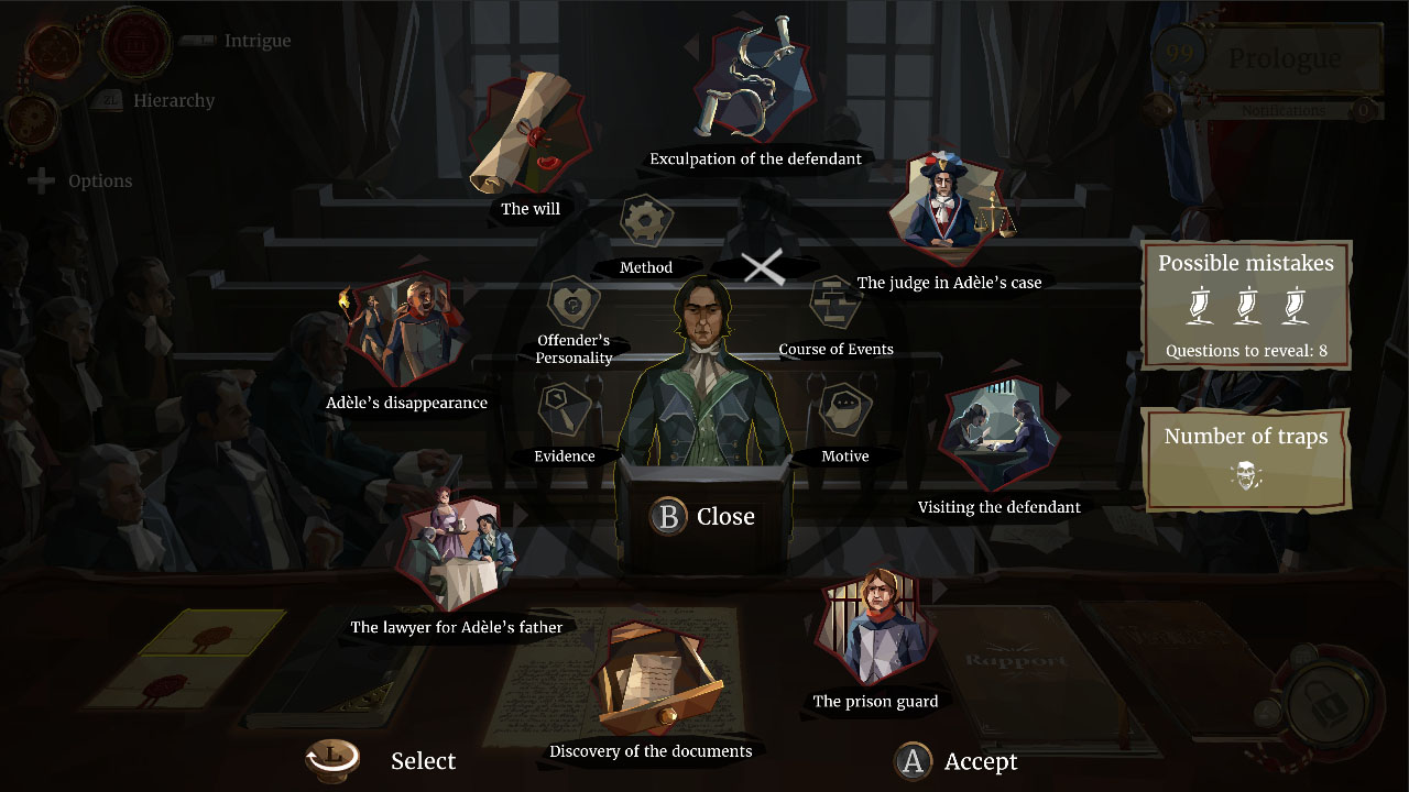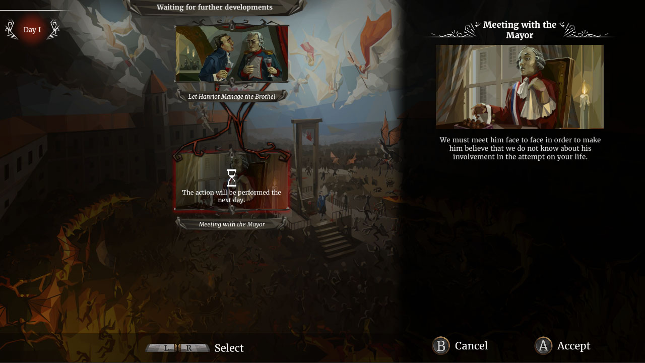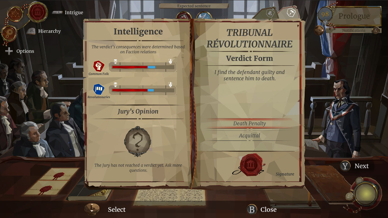 W We. The Revolution gracz wciela się w rolę sędziego Trybunału Rewolucyjnego, wydaje wyroki w sprawie zwykłych mieszkańców miasta, rewolucjonistów i arystokracji. Musi jednak uważać, by samemu nie stać się wrogiem rewolucji – złe decyzje mogą go kosztować, dosłownie, głowę. Fabuła gry nie ogranicza się jednak tylko do sal sądowych, w tle toczonych rozpraw główny bohater prowadzi życie rodzinne, a także bierze udział w skomplikowanej politycznej grze.
