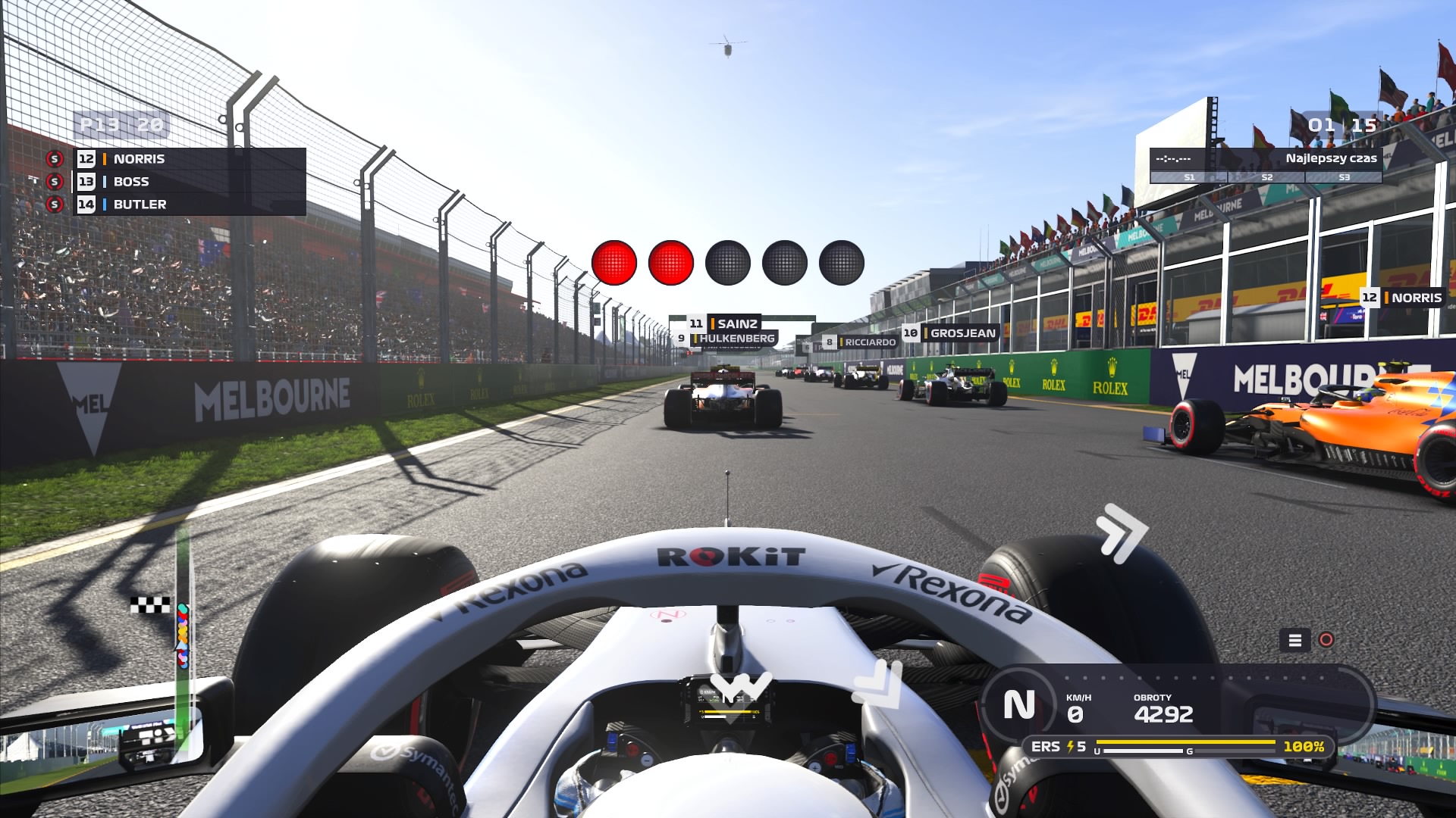 Robert Kubica wrócił po dziewięciu latach na tory wyścigowe Formuły 1, a polscy kibicie znów oglądają królową sportów motorowych. Nawet polska telewizja zdecydowała się transmitować wyścigi F1. Co prawda ich emisja zaczyna się dopiero od połowy wyścigu, ale dzięki temu każdy kibic może oglądać zmagania najlepszych kierowców na świecie, a następnie wysłuchać ekspertów po ostatnim okrążeniu. Zanim przejdziemy jeszcze do samej recenzji gry, to warto pochwalić polskie wydawnictwo CDP za przygotowanie okładki gry z Robertem Kubicą oraz Lewisem Hamiltonem. Ten sam duet wita nas także w menu gry – do pełni szczęścia zabrakło tylko powitania nagranego przez Kubicę oraz komentarza Andrzeja Borowczyka z Mikołajem Sokołem.