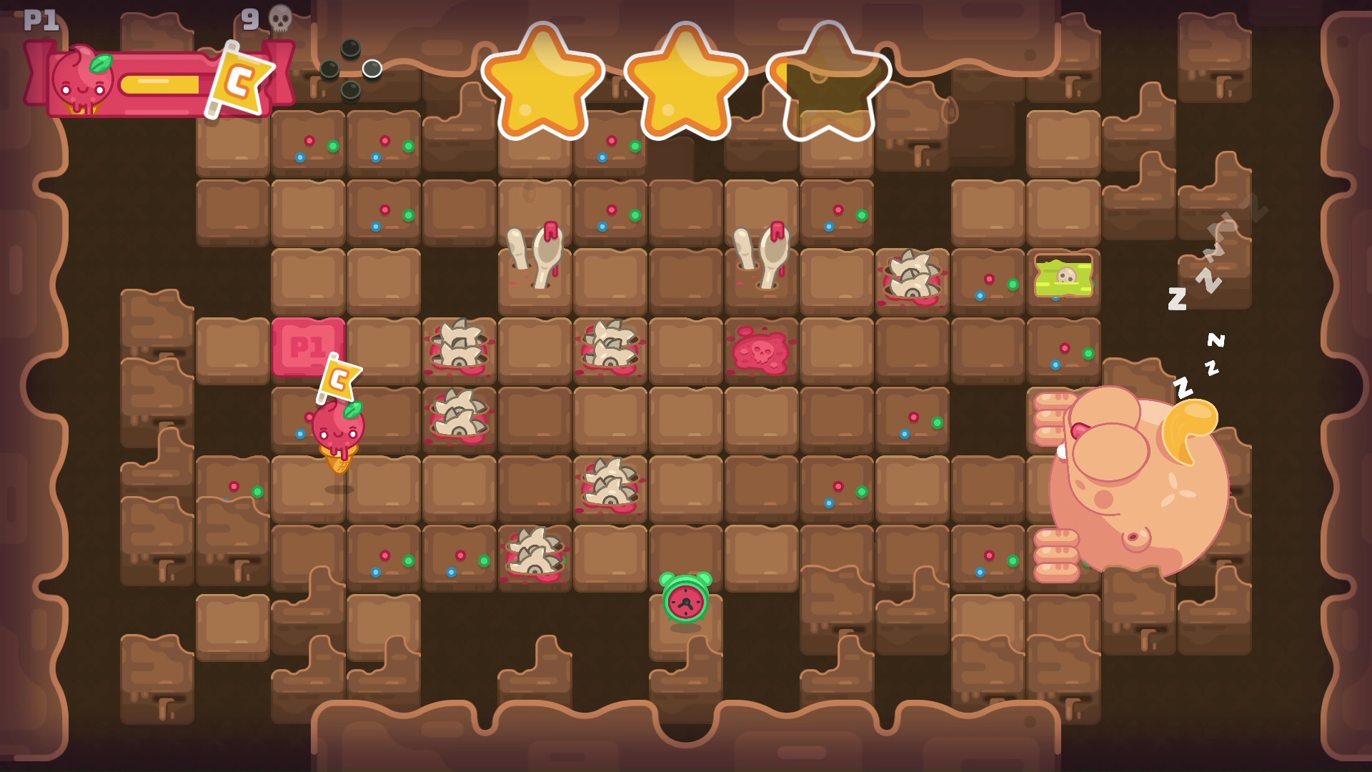 Niestety, nie ma żadnego sposobu, pozwalającego domyślić się, gdzie ukryto pułapki. Cała zabawa polega na ciągłych próbach i błędach, wielokrotnym ginięciu i wracaniu na start. Co prawda, otrzymujemy co pewien czas bonusy pozwalające podejrzeć otaczające nas pola, bądź chroniące nas przed jedną pułapką, jednak nie zmienia to faktu, że w przeważającej części gra opiera się na szczęściu. Zdobycie trzech gwiazdek za pierwszym podejściem jest niemalże niemożliwe – dopiero, gdy raz poznamy mapę i zapamiętamy trasę, mamy szansę ukończyć etap w odpowiednio krótkim czasie. Wszystko to zniechęca do dalszej zabawy już po paru pierwszych planszach.