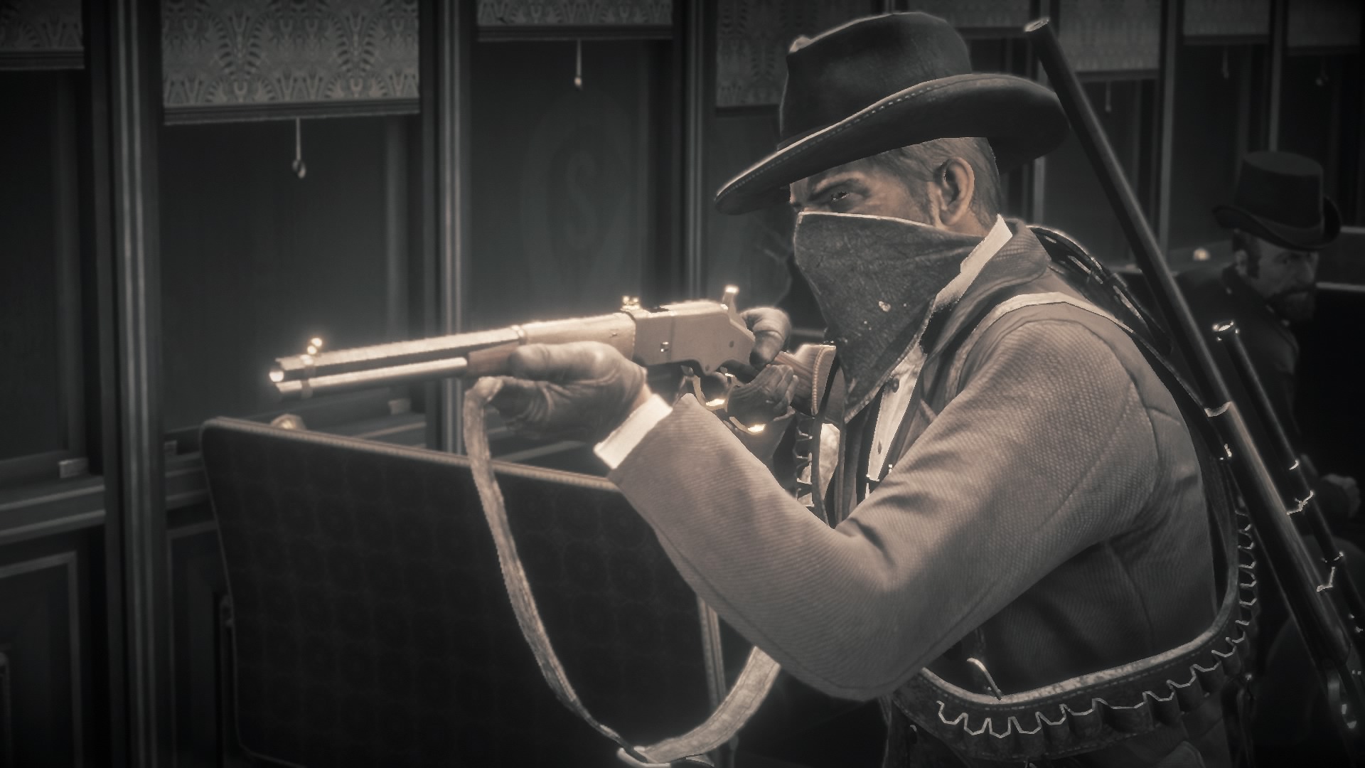 Nie można też narzekać na dostępny asortyment uzbrojenia. Będziemy mogli strzelać z działek automatycznych, karabinów wyborowych, strzelb, karabinów obrotowych, łuku, pistoletów różnego rodzaju, czy też rewolwerów. Broń można też ulepszać, zarówno wizualnie jak i pod względem parametrów. U rusznikarza kupimy lepsze lunety i lufy oraz nowe rodzaje amunicji. Za odpowiednią opłatą może on też wygrawerować wzór na lufie, czy obić kolbę skórą w jednym z kilku kolorów. Te modyfikacje nie mają oczywiście znaczenia dla zasięgu broni, czy zadawanych przez nią obrażeń, ale stanowią miły dla oka dodatek. Pozostając przy kwestiach wyglądu, muszę zaznaczyć obecność sklepów z ubraniami. Możemy w nich nabyć płaszcze, kapelusze, muchy, krawaty, koszule, spodnie, buty, kamizelki, szelki, a nawet ostrogi. Poza oczywistą różnicą w wyglądzie inna jest ich osłona przed temperaturami. Warto bowiem wiedzieć, że w Red Dead Redemption II przydaje się noszenie co najmniej dwóch rodzajów ubrania. Jeśli będziemy przemierzali zaśnieżone połacie terenu jedynie w koszuli (albo jeśli będziemy biegać po zielonych lasach w grubym płaszczu), możemy być pewni, że zdrowie albo wytrzymałość będą nam bardzo szybko spadały.