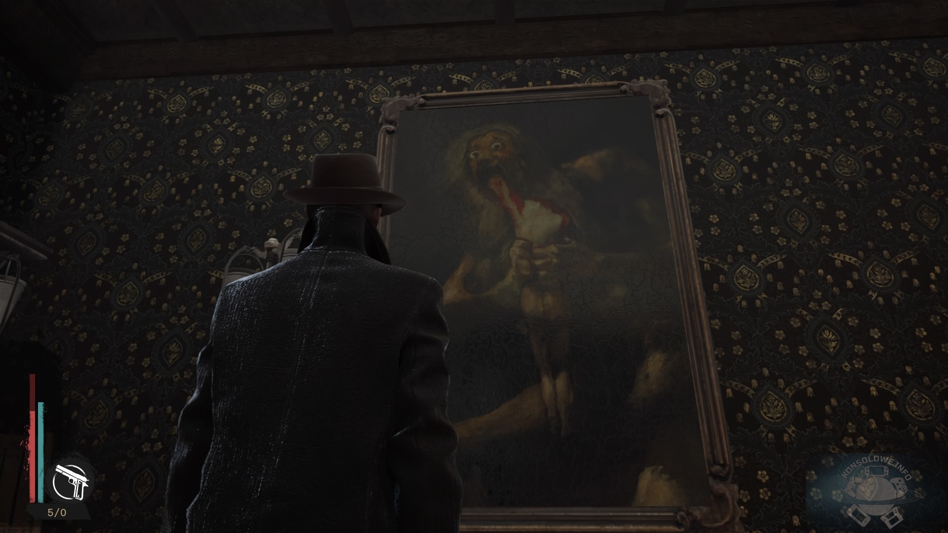 Prawdę mówiąc, mimo wszystko jakoś bym przebolał wymienione wcześniej wady i mógł przyzwoicie bawić się grą, gdyby nie kolejny element rozgrywki. A tym jest niestety walka. Oakmont jest przepełnione różnego rodzaju potworami. Są pająko-podobne stwory, sunące ku nam dwunożne kreatury rozdzierające sobie twarz i biegnące w naszym kierunku, coś na kształt żuków, czy na przykład wielkie i ociężałe (z braku lepszego określenia) “gruszki” z kończynami. Z potworami często musimy walczyć, aby przejść dalej. Należy jednoczenie przyznać, ze niekiedy jest możliwość ominięcia wrogów lub ucieknięcia przed nimi. Na ogół jednak zdecydowanie bardziej opłaca się ich pozbyć – oponenci są zwyczajnie tępi, a pozbycie się ich zapewnia nam punkty doświadczenia. Problem z potworami jest taki, że jest ich po prostu za dużo. Jeśli ginąłem w starciach z nimi, to nie był to efekt ich bardzo dobrej sztucznej inteligencji (dla monstrów zwykła szafka albo filar są często przeszkodą nie do pokonania), a zwyczajnie zbyt dużej liczby oponentów.The Sinking City nie sprawdza się w roli trzecioosobowej strzelanki (tym bardziej, że amunicja to rarytas). Broni co prawda jest sporo (są karabiny maszynowe, pistolety, rewolwery, pistolet maszynowy Thompson, strzelba), ale asortyment nie jest w stanie zamaskować drewnianej walki, przez którą w ogóle nie czuć siły rażenia broni. Warto też wspomnieć o systemie tworzenia przedmiotów. Po przejściu do ekwipunku możemy wytworzyć amunicję (która jest na wagę złota, dosłownie), granaty, pułapki, apteczki i inne przydatne przedmioty użytkowe. Wśród nich znajdziemy również środek uspokajający. Nasz bohater, widząc potwory i walcząc z nimi może coraz bardziej wariować, co jest obrazowane przez wylewający się zewsząd mrok i tajemnicze głosy oraz wizje. Odwalają one swoją robotę, ale nie mogę stwierdzić, żebym martwił się o stan psychiczny Reeda przez kilkadziesiąt godzin, jakie poświęciłem produkcji. Grze nie udało się zbudować między bohaterem, a mną żadnej więzi emocjonalnej.