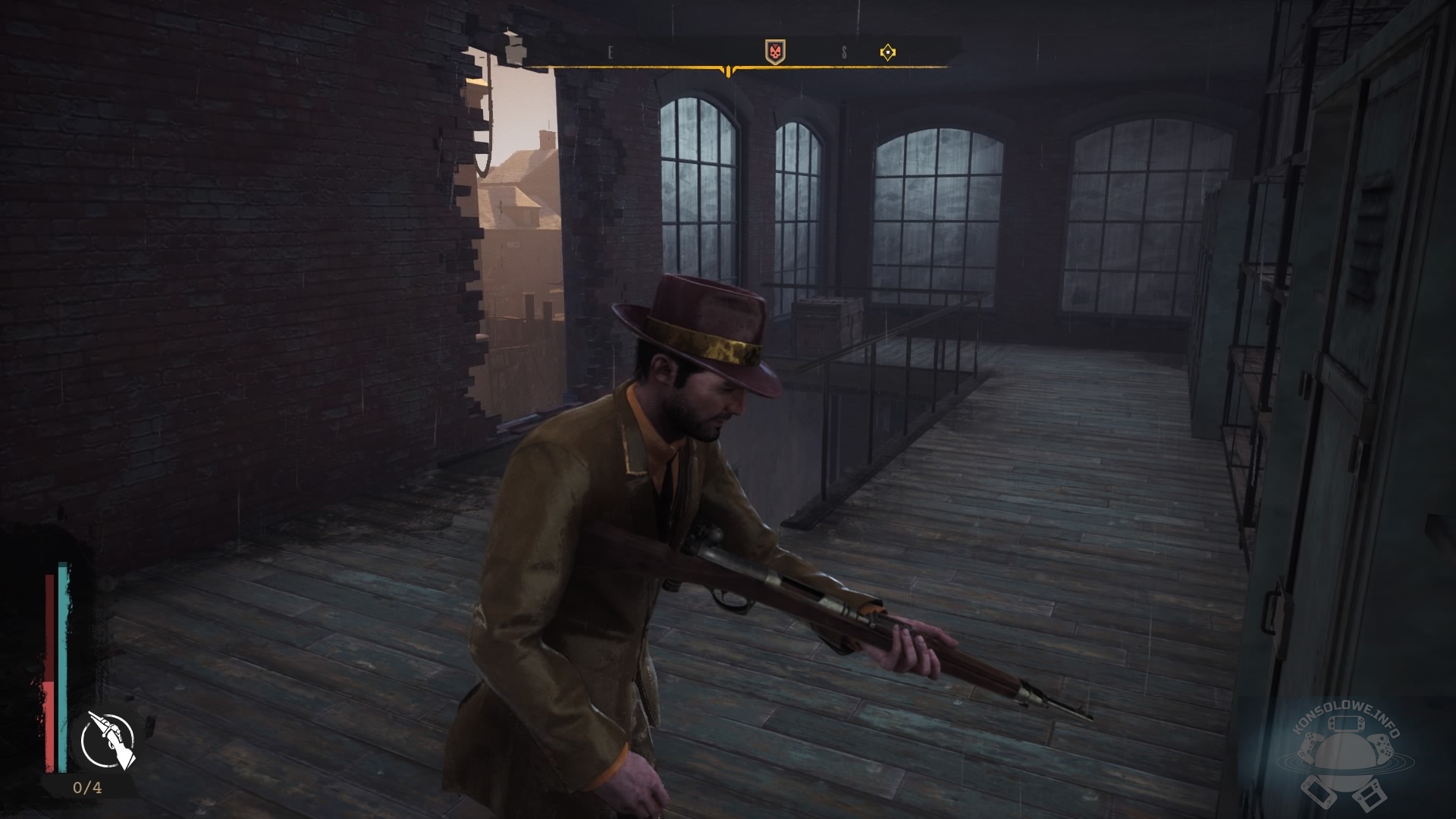 Dodatkowo wystarczyło mi zaledwie kilka pierwszych minut rozgrywki, by natrafić na miejsce, w którym widać nachodzące na siebie i wręcz przenikające tekstury. Możliwości przemierzania świata przez naszego bohatera również wołają o pomstę do nieba. Nie brakuje murków, czy wyżej położonych krawędzi, na które musimy wejść. Dla naszej postaci nawet zwykły wysoki na kilkanaście centymetrów krawężnik stanowi powód do wciśnięcia przycisku odpowiedzialnego za wspinania się. Byłoby to jeszcze do przeżycia, gdyby nie kolejny mankament The Sinking City. Na wzniesienie możemy wejść tylko ze ściśle przez twórców określonego miejsca. Sprawia to, że często przesuwamy się z boku na bok, naciskając przy tyn nieustannie trójkąt na padzie, szukając nieoznakowanego miejsca, w którym możemy wejść na wyżej położony teren. Wygląda to bardzo nienaturalnie i nawet nie tyle śmiesznie, co żenująco w dzisiejszych czasach. Nie mogę też nie wspomnieć o spadkach liczby wyświetlanych klatek na sekundę i bardzo częstym doczytywaniu się tekstur przed naszymi oczami. Raz nawet parsknąłem śmiechem, bo wystarczyło, że zrobiłem krok, a w oddali magicznie pojawił się metalowy żuraw! W połączeniu z niewielką odległością pola widzenia daje to mało zachęcający do spędzania czasu z tą produkcją obraz.