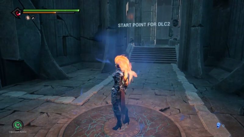 Pierwsze wrażenie po powrocie było jak najbardziej pozytywne. Tekstury stały się bogatsze w detale, zniknął napis informujący o punkcie startowym DLC, a wersja językowa została ujednolicona, dzięki czemu mogłem komfortowo grac w pełni zlokalizowane Darksiders III. Udałem się do lokacji, w której pokonałem wcześniej bossa – nie było go, co pozwalało mi mieć nadzieję na to, że pewien postęp z wcześniejszej wersji kodu został zachowany. Następnie udało mi się dostać do obelisku, połączonego z czterema odnogami (przypisanymi do każdej z czterech Esencji). Kolejny segment był poświęcony elektrycznym zdolnościom Furii i niestety już tutaj natknąłem się na przeszkodę, której nie byłem w stanie pokonać.