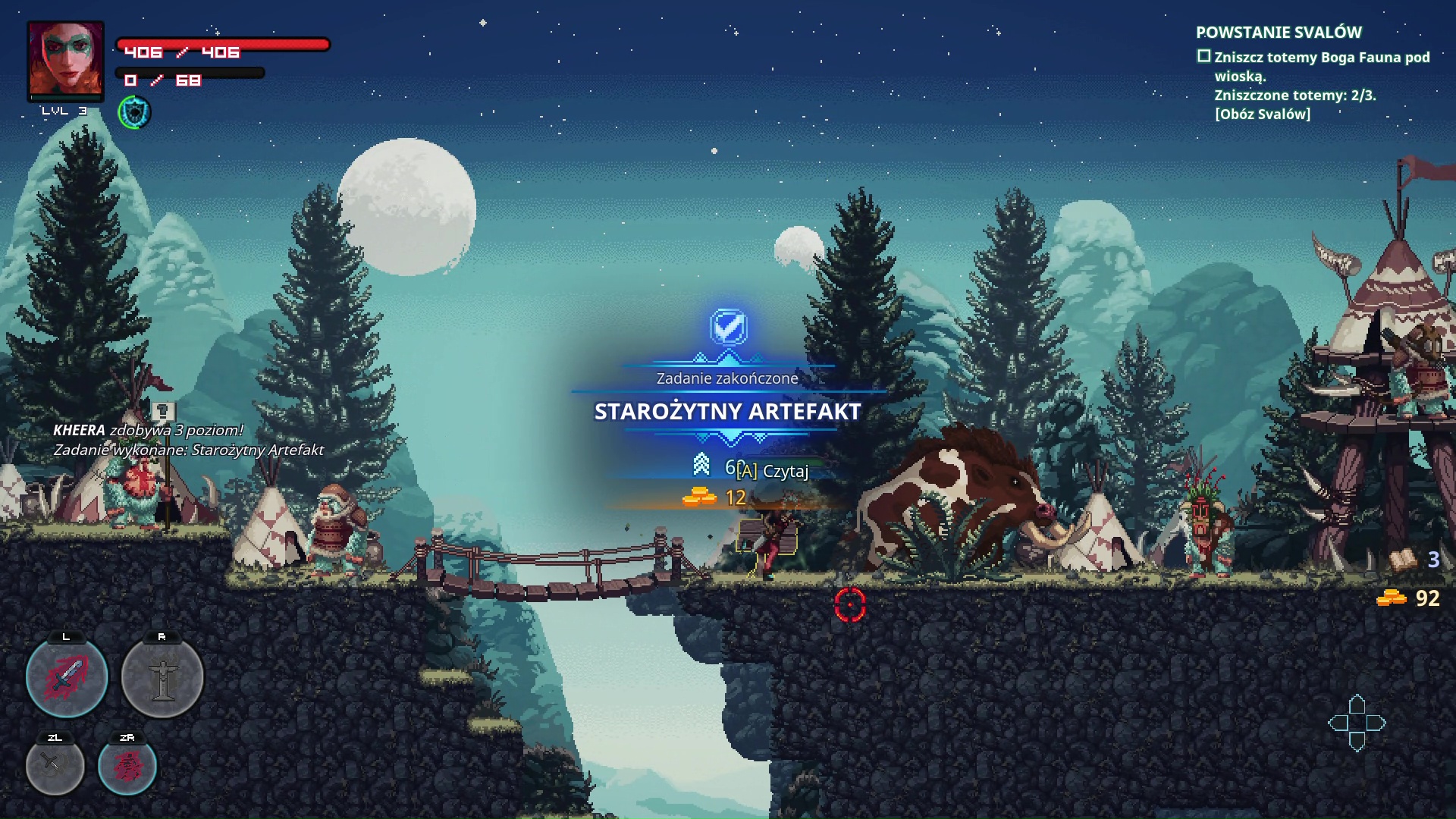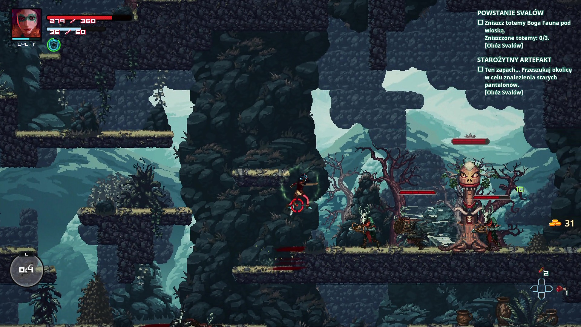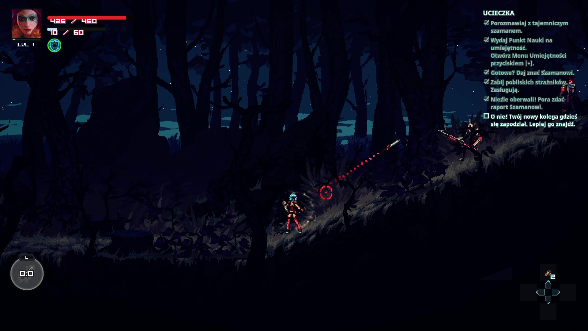 Zabawę rozpoczynamy od wybrania jednej spośród pięciu postaci. Każdy z bohaterów posiada własne, unikalne umiejętności, odblokowywane wraz z postępem. Następnie przechodzimy do prostego samouczka, gdzie poznajemy podstawy rozgrywki. Sterowanie rozwiązane jest dość niecodziennie, jak na dwuwymiarową platformówki. Lewą gałką kierujemy postacią, podczas gdy prawą celujemy we wrogów. Podstawowy atak wykonujemy za pomocą L, a kolejne umiejętności przypisywane są do R, ZR i ZL. Po przyzwyczajeniu się, sprawdza się to całkiem dobrze.