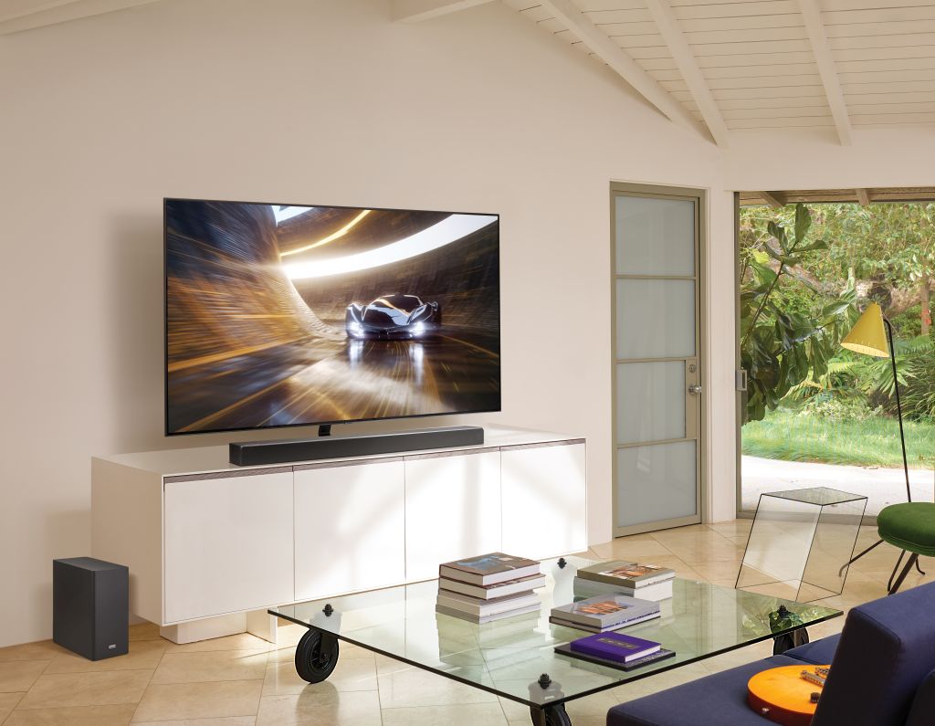 Na koniec warto wspomnieć, że ten soundbar Samsung Harman Kardon Q80R z Q-serii tworzy idealnie zgrany duet z telewizorem QLED Q80 nie tylko pod względem funkcjonalności, lecz także designu. Soundbar wyróżnia się niezwykle smukłą obudową o wysokości zaledwie 83 mm.