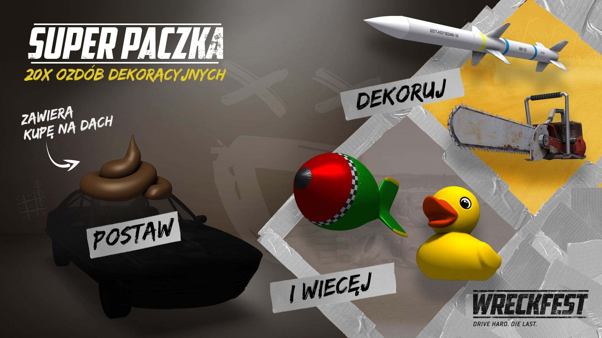 Wreckfest oferuje szeroki wachlarz ulepszeń i opcji tuningu. Bez względu na to, czy będziesz montować wzmocnione zderzaki, klatki bezpieczeństwa i listwy boczne, aby przygotować do demolki na arenie, czy też zdecydujesz się na wymianę filtru powietrza, wału rozrządu lub układu paliwowego z myślą o wyścigu wraków, jedno jest pewne – Wreckfest to gwarancja najbardziej emocjonujących walk ze wszystkich samochodówek.