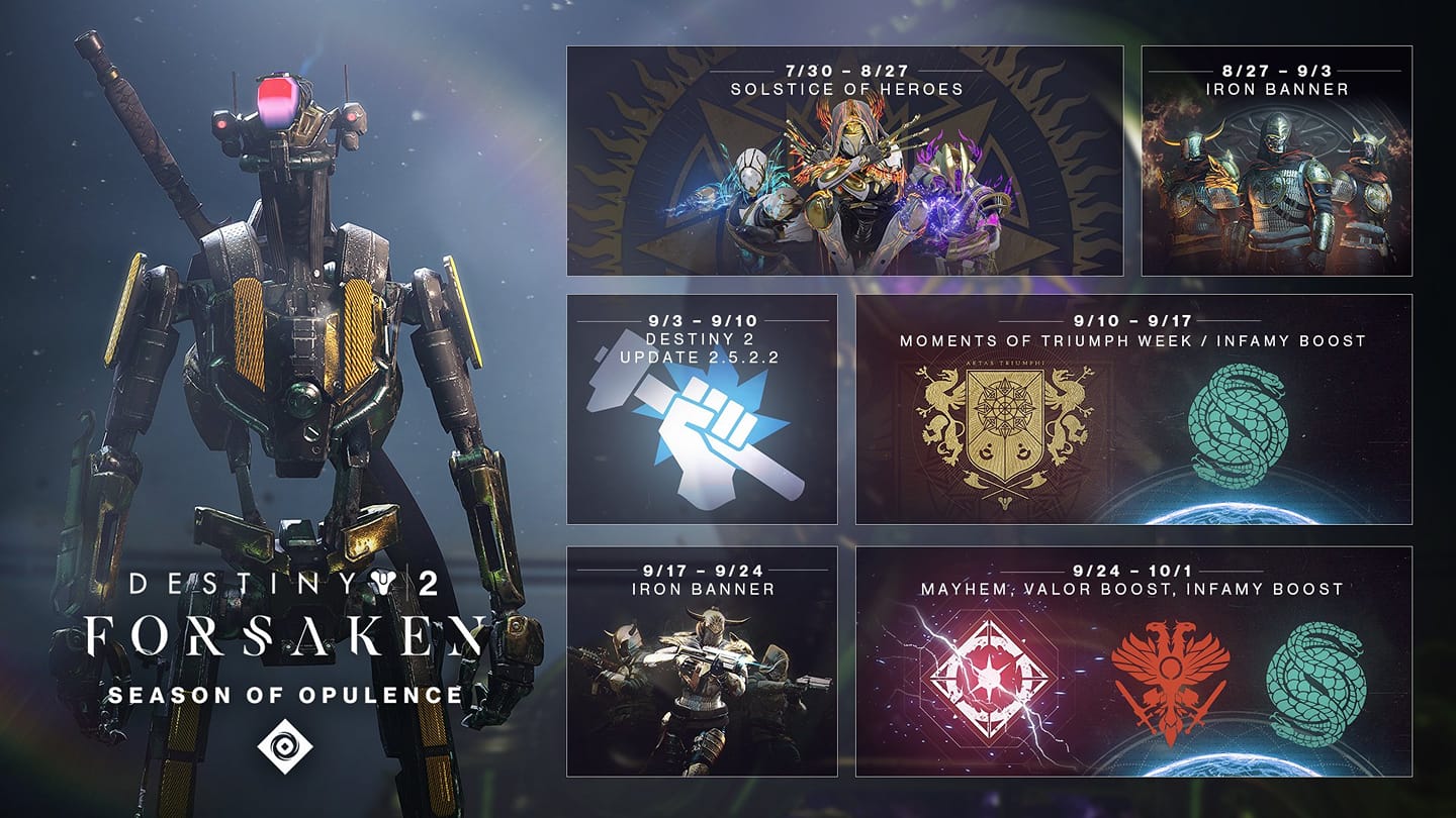 A tak prezentuje się mapa z planowanymi wydarzeniami w Destiny 2 na sierpień i wrzesień: