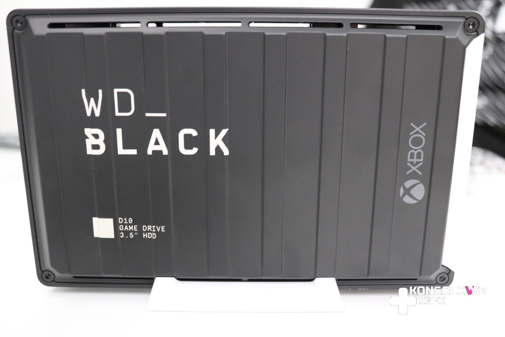 WD_Black D10 – licencjonowany przez Microsoft dysk zewnętrzny dedykowany konsolom Xbox One (chociaż oczywiście będzie działał również na komputerach i konsolach PlayStation 4). Będzie występował w wariantach aż do 12 TB. Warto zaznaczyć, że przy kupnie tego dysku dostaniemy w gratisie 3 miesiące dostępu do abonamentu Xbox Game Pass Ultimate. Dysk jest wyposażony w dwa porty USB umożliwiające ładowanie podłączonych w ten sposób urządzeń.