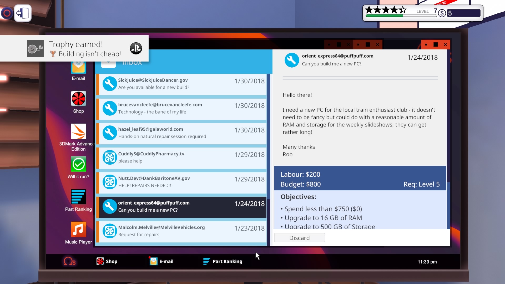 PC Building Simulator to jedna z tych gier, która próbuje zmienić nudę i rutynę pracy w coś ciekawego. Przyznam szczerze, że jest relaksująca. Można w niej zbudować swój komputer marzeń, a nawet i 10. Spędziłem w niej cały weekend i na pewno do niej wrócę. Szkoda, że część serwisowa ogranicza się tylko do PC, przecież można by też serwisować laptopy, ale to może w drugiej części tej gry.