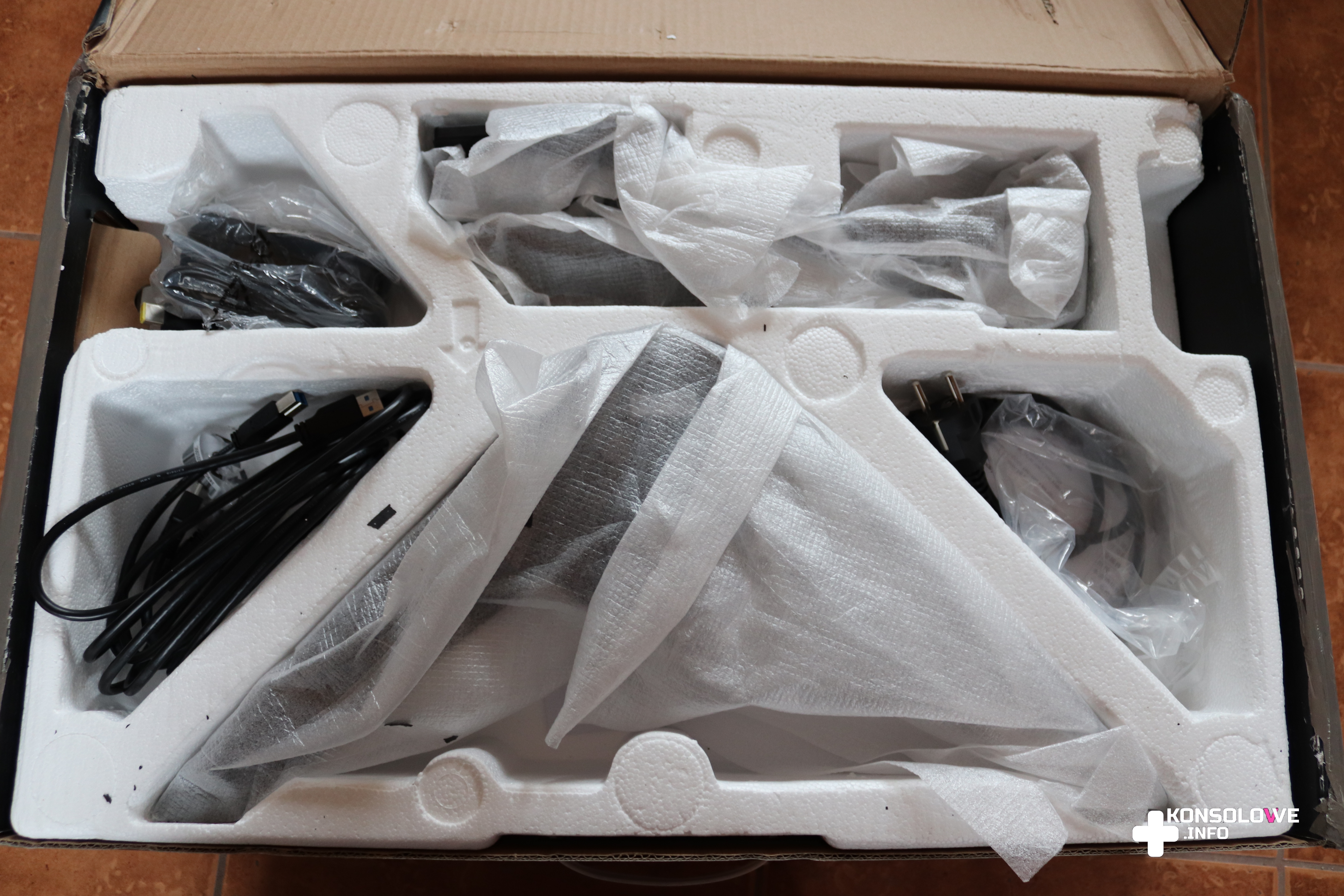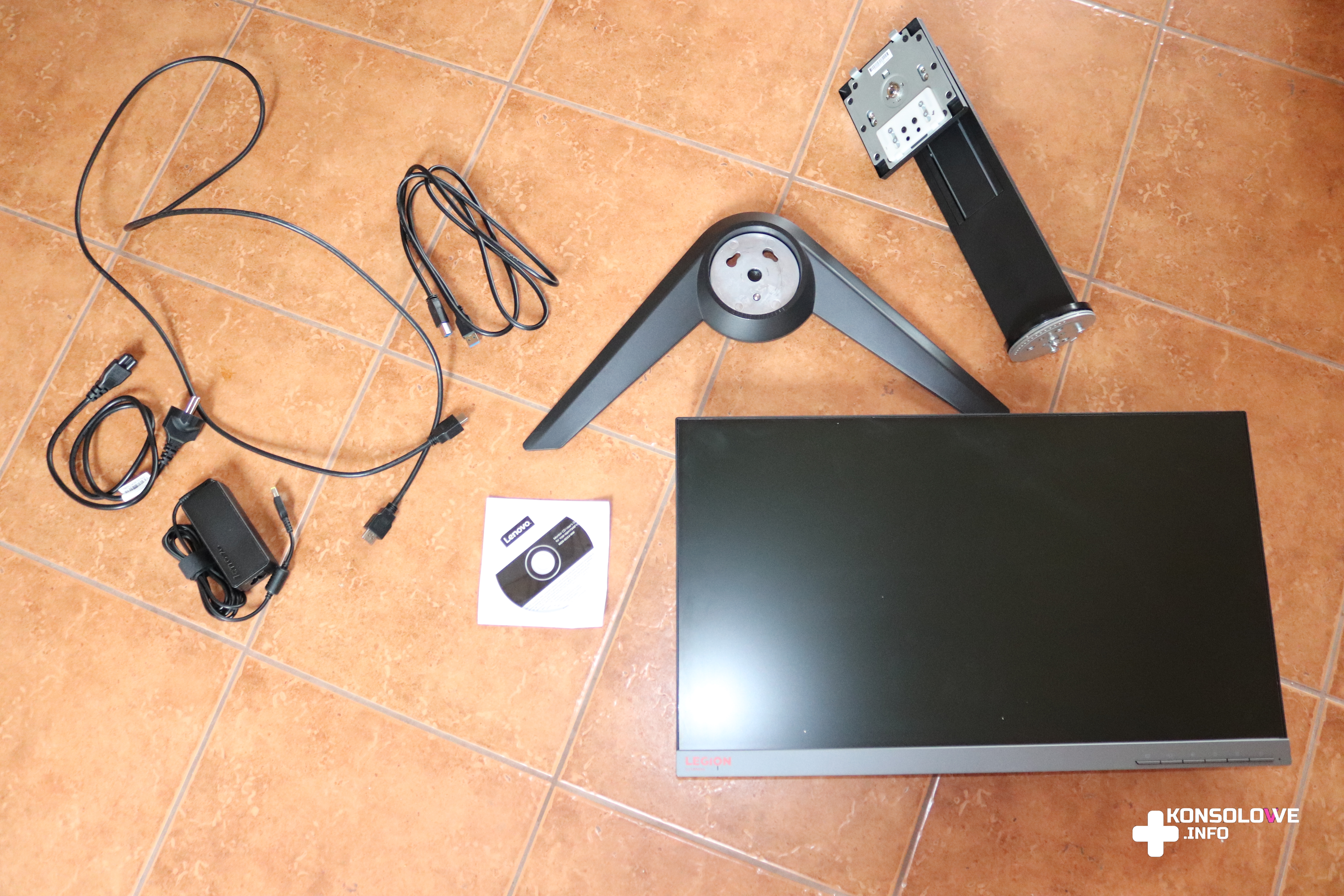 Pierwszym, co rzuciło mi się w oczy po odebraniu paczki od kuriera, były dość duże wymiary pudełka. Wynoszą one: cm 40 (wysokość) x 65 cm (szerokość) x 18 cm (głębokość). Sam ekran ma prawie 25 cali przekątnej, natomiast maksymalna wysokość, na jaką możemy go wysunąć wynosi prawie 50 cm. Opakowanie skrywało oczywiście również styropian chroniący elementy monitora przed uszkodzeniem i szereg kabli – HDMI 2.0, zasilający oraz USB – USB typu B . Nie zabrakło także podstawki i instrukcji obsługi na płycie. Dołączono również krótki poradnik złożenia monitora, ale nie sprawiło to żadnego problemu i nie uważam, żeby ta instrukcja była niezbędna. Jednak na pewno trzeba docenić, że producent dorzucił taki poradnik. Nie dodał za to imbusa, więc skręcając Lenovo Legion musicie mieć na podorędziu śrubokręt.