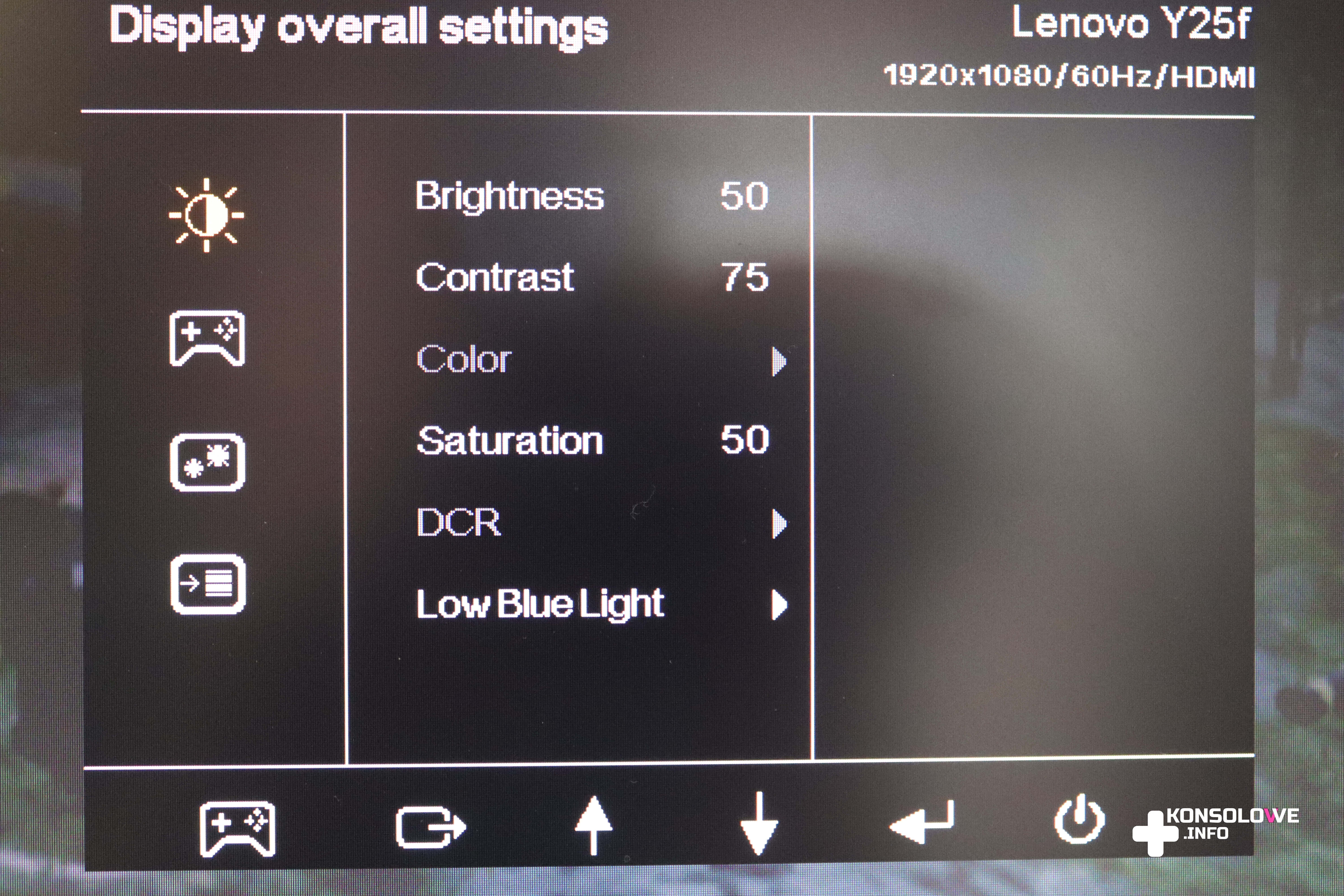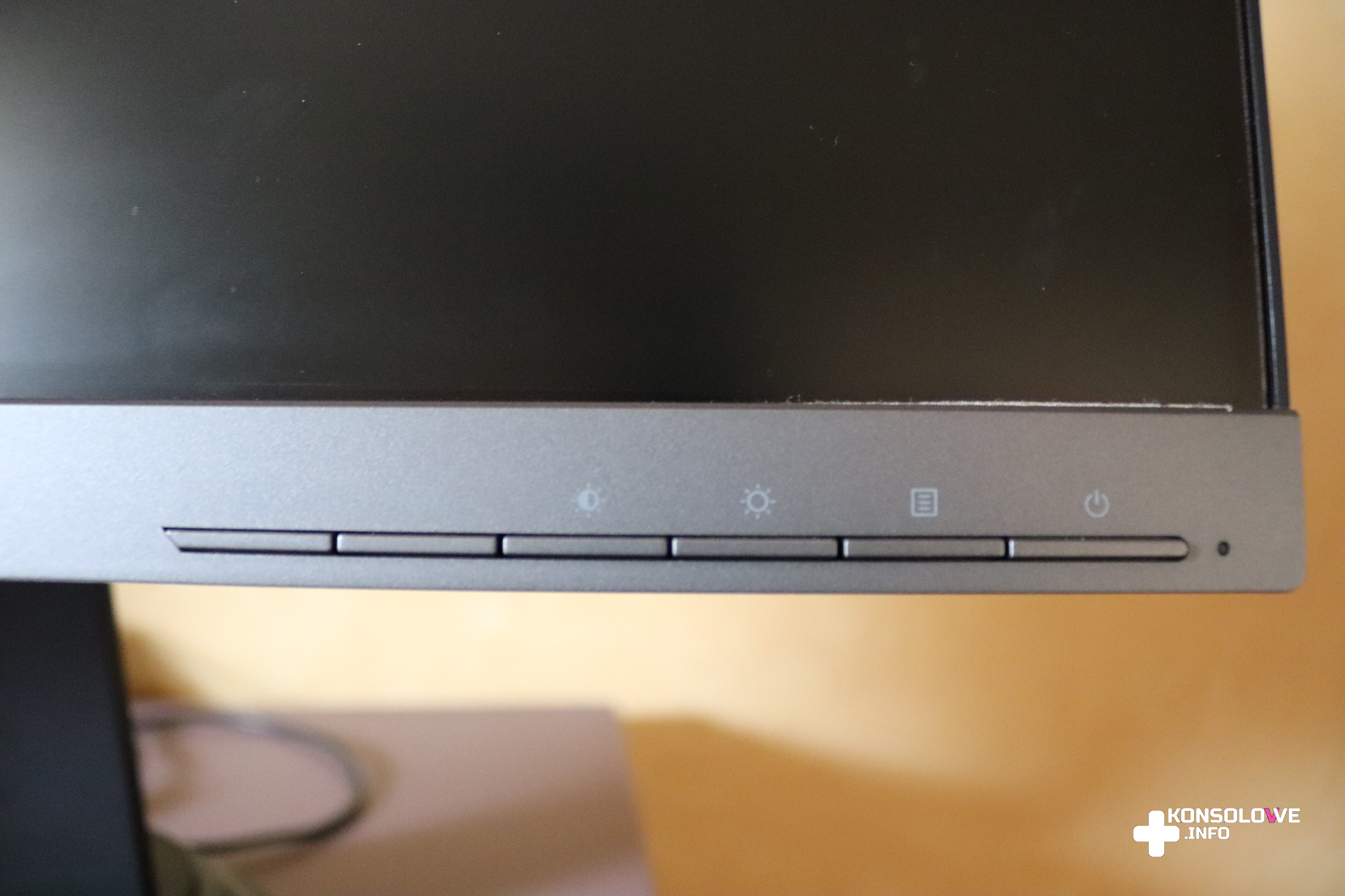 Prawy dolny róg frontu monitora jest zarezerwowany dla przycisków sterowania ustawieniami sprzętu. Możemy tu ustawić takie parametry jak jasność, kontrast, czy minimalizowanie efektu niebieskiego światła. Zdecydowanie polecam wybranie tej funkcji – oczy męczą się wtedy zauważalnie mniej. Muszę przyznać, że ani trochę mnie nie bolały, mimo grania w dość widowiskowe produkcje – Batman: Arkham Knight, Wiedźmina 3: Dziki Gon, Detroit: Become Human, Far Cry 5, czy Super Mario Odyssey.