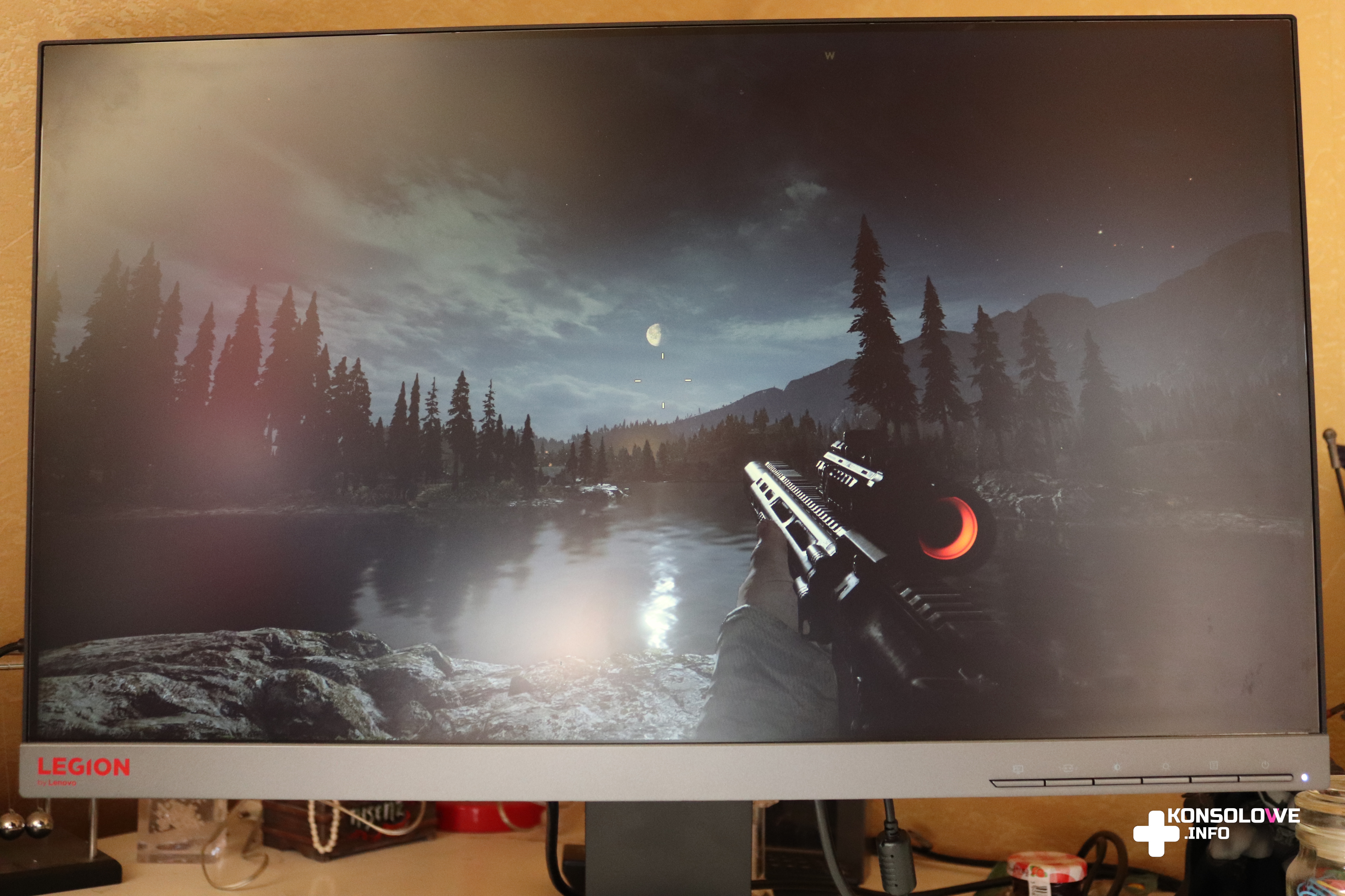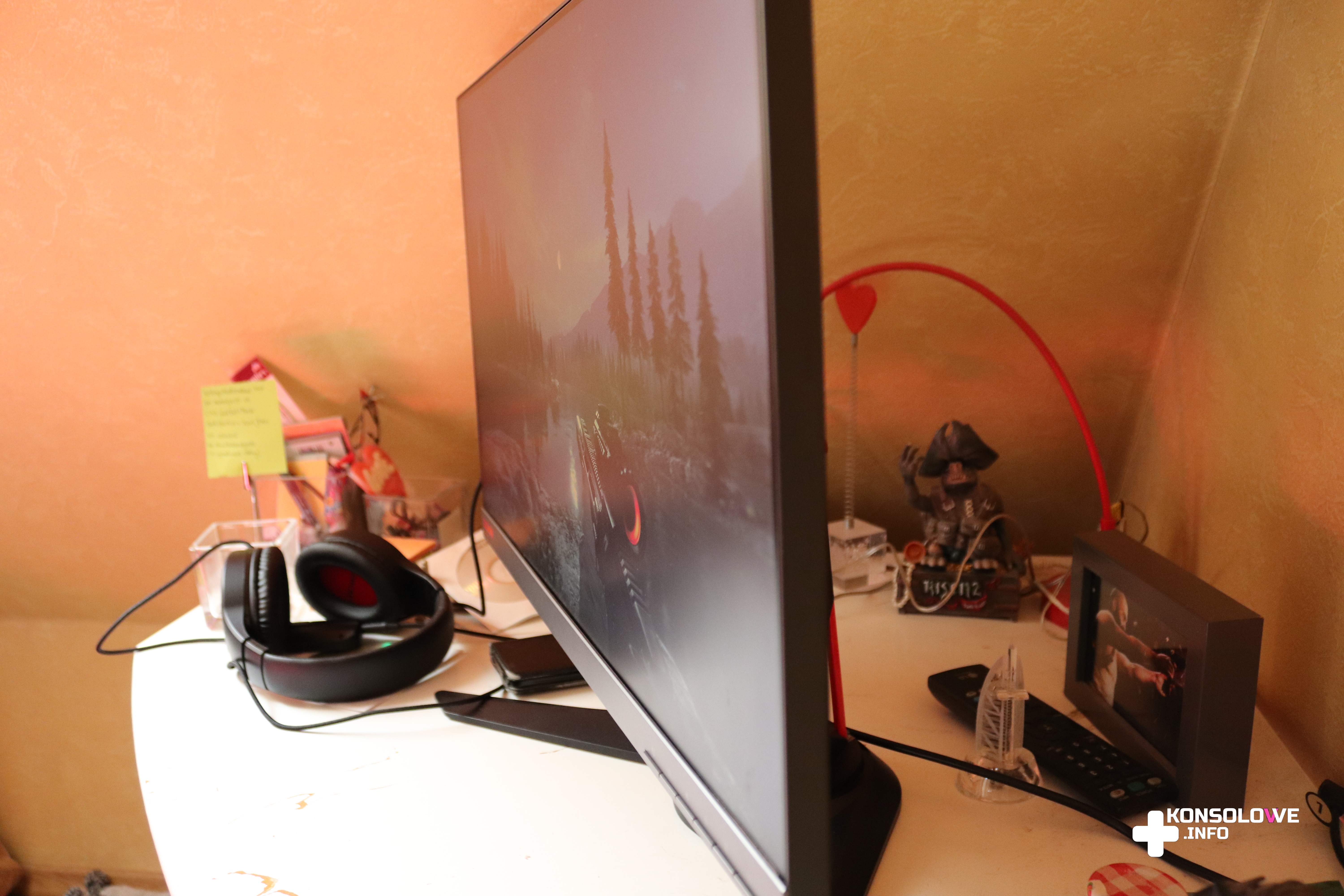 Lenovo Legion Y25F odznacza się też doskonałymi kątami widzenia. Czy patrzymy na wyświetlany obraz z góry, czy z boków nie ma problemu z dostrzeżeniem szczegółów. Producent informuje, że pionowy kąt widzenia wynosi 170 stopni, natomiast poziomy 160 stopni. Jak widać na niżej zamieszczonych zdjęciach, wiadomość ta pokrywa się ze stanem faktycznym. Nawet przechodzące obok monitora osoby nie mają trudności z zauważeniem dokładnie tego samego, co widzi osoba siedząca na wprost ekranu. Kąty widzenia są jedną z największych zalet testowanego monitora.