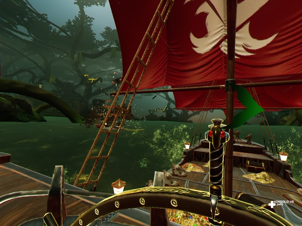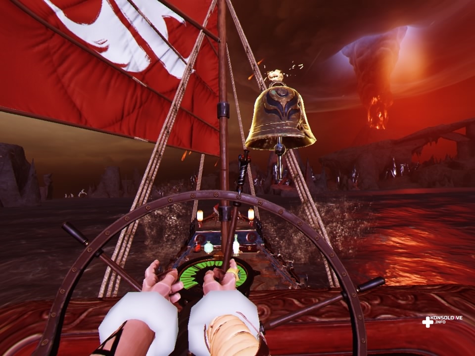 Nie mogę nie wspomnieć o sterowaniu, czymś bardzo istotnym pod względem poprawności śledzenia ruchów. Battlewake daje do wyboru dwa sposoby sterowania. Możemy wykorzystywać standardowy pad DualShock 4, który jest w zestawie z konsolą PlayStation 4. Sprawdziłem ten sposób i bardzo szybko wróciłem do sterowania kontrolerami Move. Pad wprowadza za duże uproszczenia i ograniczania. Sterując za pomocą DualShocka 4, nasze dłonie są permanentnie ze sobą powiązane, a celowanie jest o wiele mniej precyzyjne. Natomiast jeśli chwycimy dwa kontrolery PlayStation Move, sytuacja zmienia się o 180 stopni. Jedną ręką obracamy sterem (warto zaznaczyć, że każdy z kapitanów ma swój specyficzny wygląd uchwytu), natomiast drugą obsługujemy kotwice (oczywiście jeśli chcemy, możemy też obracać ster za pomocą dwóch rąk). Odpowiednie wykorzystanie steru i kotwic umożliwia nam wykonanie szybkiego obrotu, co jest nieodzowne przy manewrowaniu między skałami, ostrzeliwanymi obszarami i statkami wroga. Sterowanie za pomocą kontrolerów Move jest bardzo dobrze wykonane i ani razu nie natknąłem się na problem dotyczący niewłaściwego śledzenia kontrolerów.