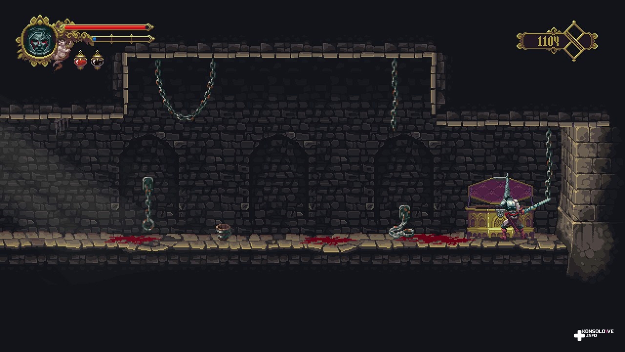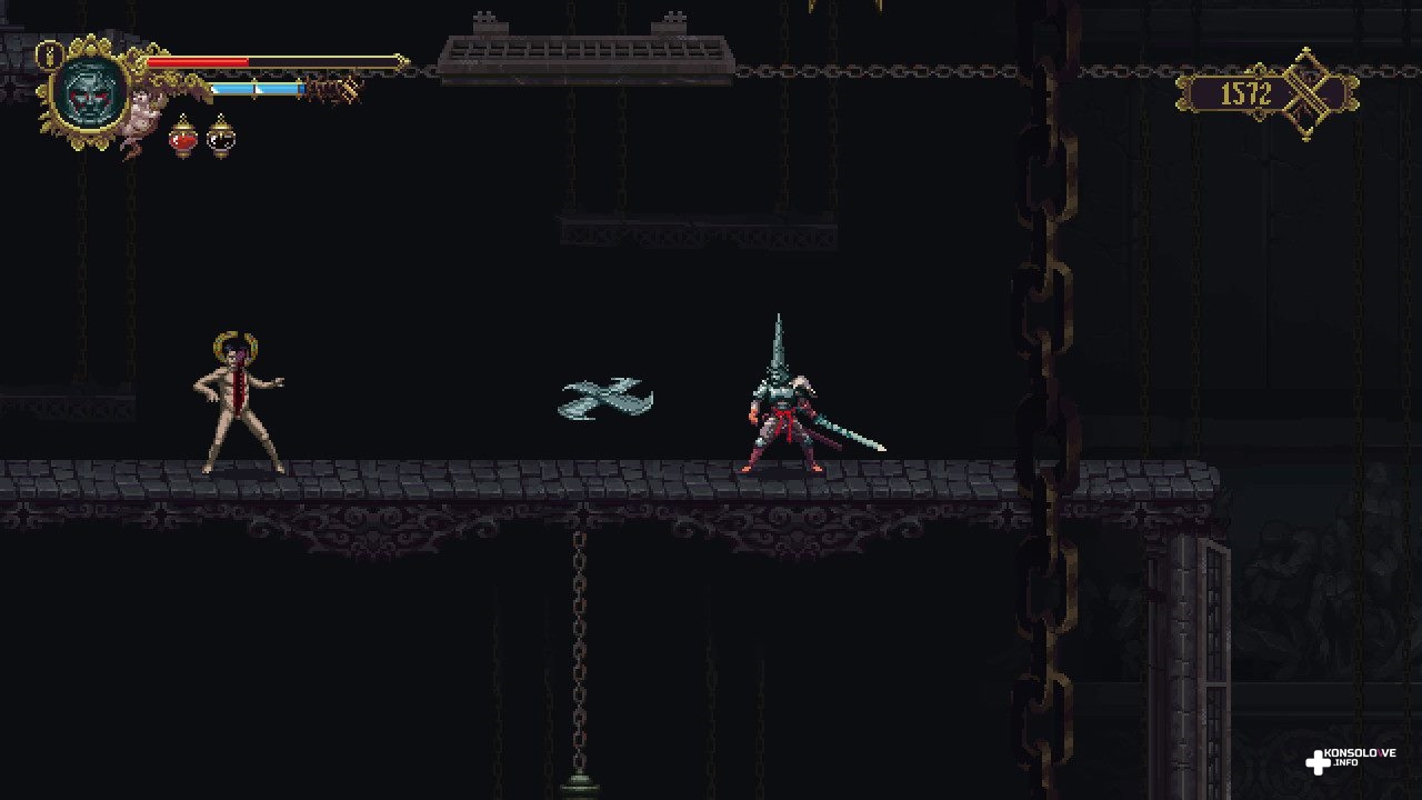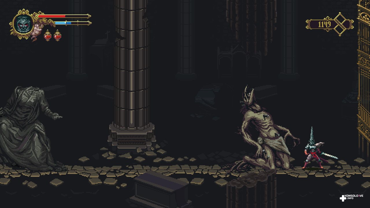 Historia nie należy do wybitnych i jest zaledwie tłem dla rozgrywki. Na szczęście ta jest o niebo lepsza od fabuły. Jeśli znacie termin metroidvania, to już wiecie na czym polega Blasphemous. Jednak tym z Was, którzy nie są świadomi znaczenia tego słowa już spieszę z wyjaśnieniem. W Blasphemous mamy do czynienia z dwuwymiarową rozgrywką, w której nasz bohater porusza się w lewo bądź prawo, walcząc z napotykanymi przeciwnikami i pokonując przepaści. Tak w telegraficznym skrócie można podsumować rozgrywkę w dziele Hiszpanów. Jeśli jednak niczego więcej bym o niej nie napisał, wyrządziłbym grze wielką krzywdę. Rozgrywka jest bowiem o wiele bardziej rozbudowana.