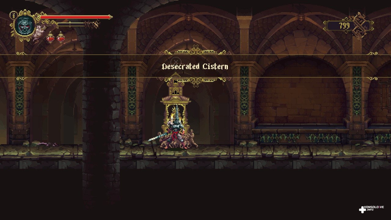 Naszą postać możemy tez ulepszać w odwiedzanych specjalnych kapliczkach. Zdecydowanie warto to robić, bo dzięki temu możemy odblokować dalsze skoki czy na przykład więcej ataków, które możemy wykonać w kombinacji. Szkoda jedynie, że miejsca te nie występują częściej. Pisząc jeszcze o kapliczkach, muszę wspomnieć o zapisywaniu postępów. Mamy tu do czynienia z klasycznym systemem punktów kontrolnych. Podchodząc do określonej kapliczki i klękając przed nią, nasz progres zostanie zapisany, a życie i zapas uzdrawiających flakonów uzupełnione. Warto więc szukać miejsc, w których nasz bohater może się pomodlić.