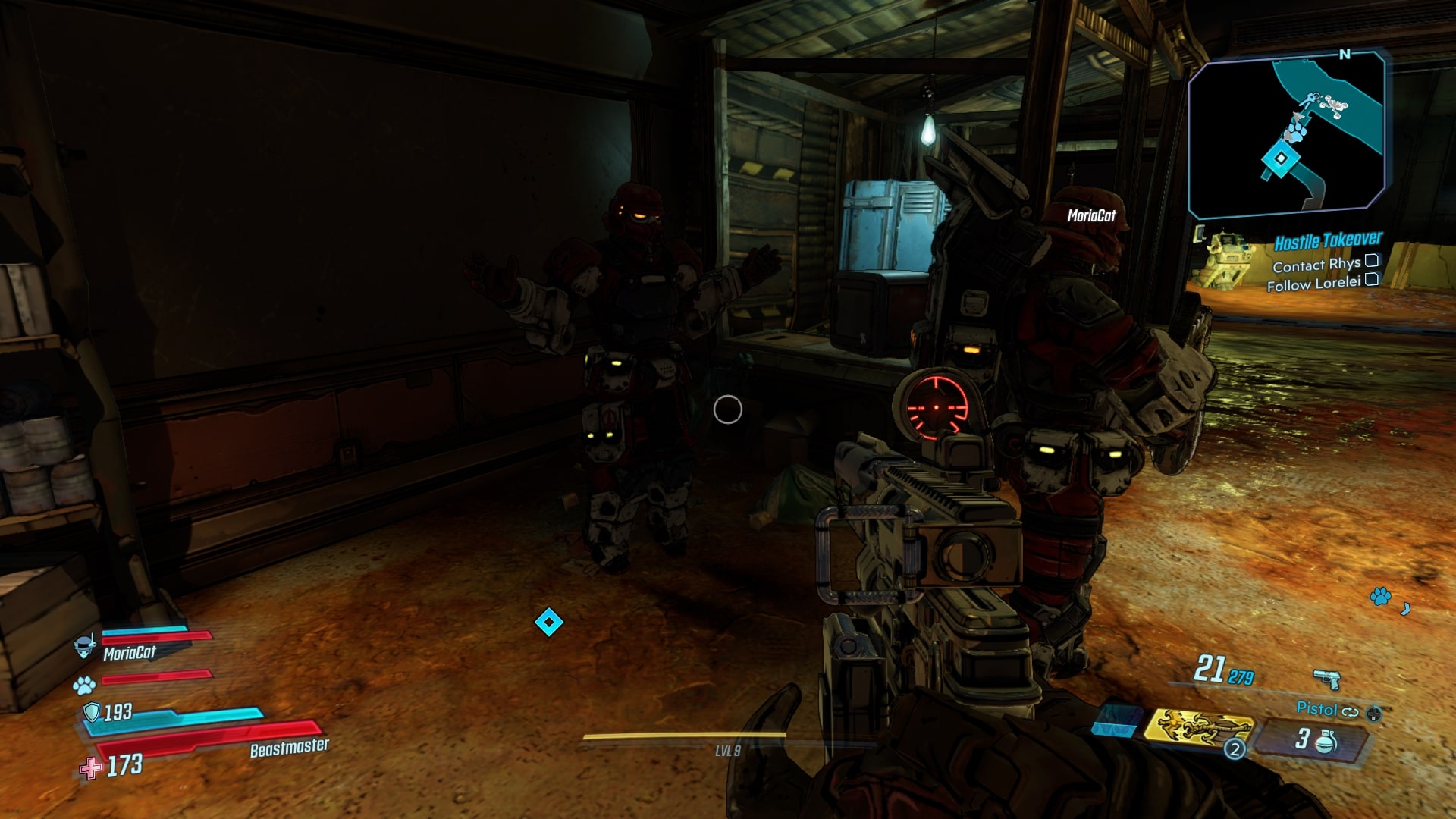 Rozpoczynając rozgrywkę wybieramy jedną z czterech postaci o unikatowych umiejętnościach. Najpopularniejszym wyborem (z tego co widuję) jest FL4K, Beastmaster, który nie dość, że lata ze zwierzątkiem obok, to jeszcze może wysyłać Rakki do walki z przeciwnikami. Oprócz niego, jest jeszcze: Moze, Gunner ze swoim mechem, Zane, Operative i jego “klon” oraz Amara, Syrena, ze swoimi magicznymi mocami.