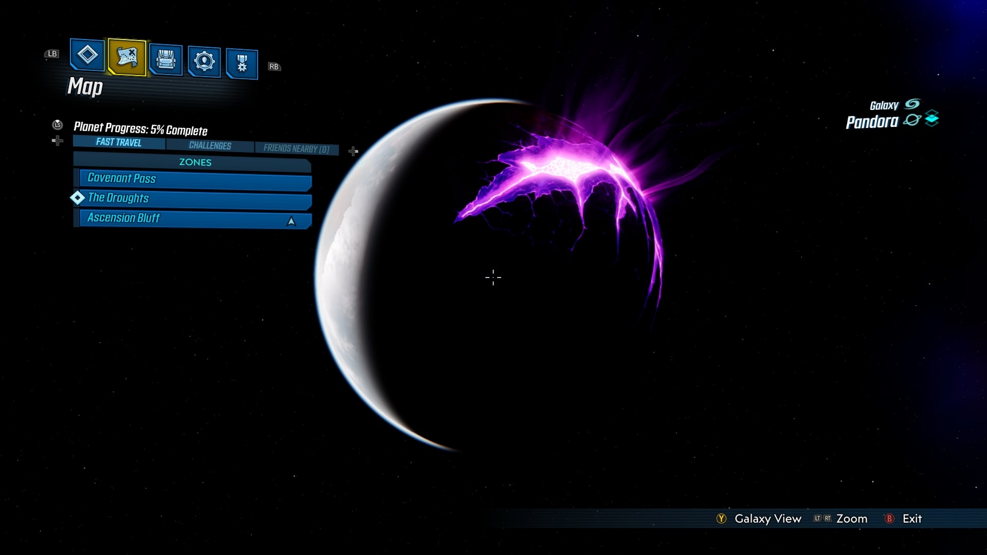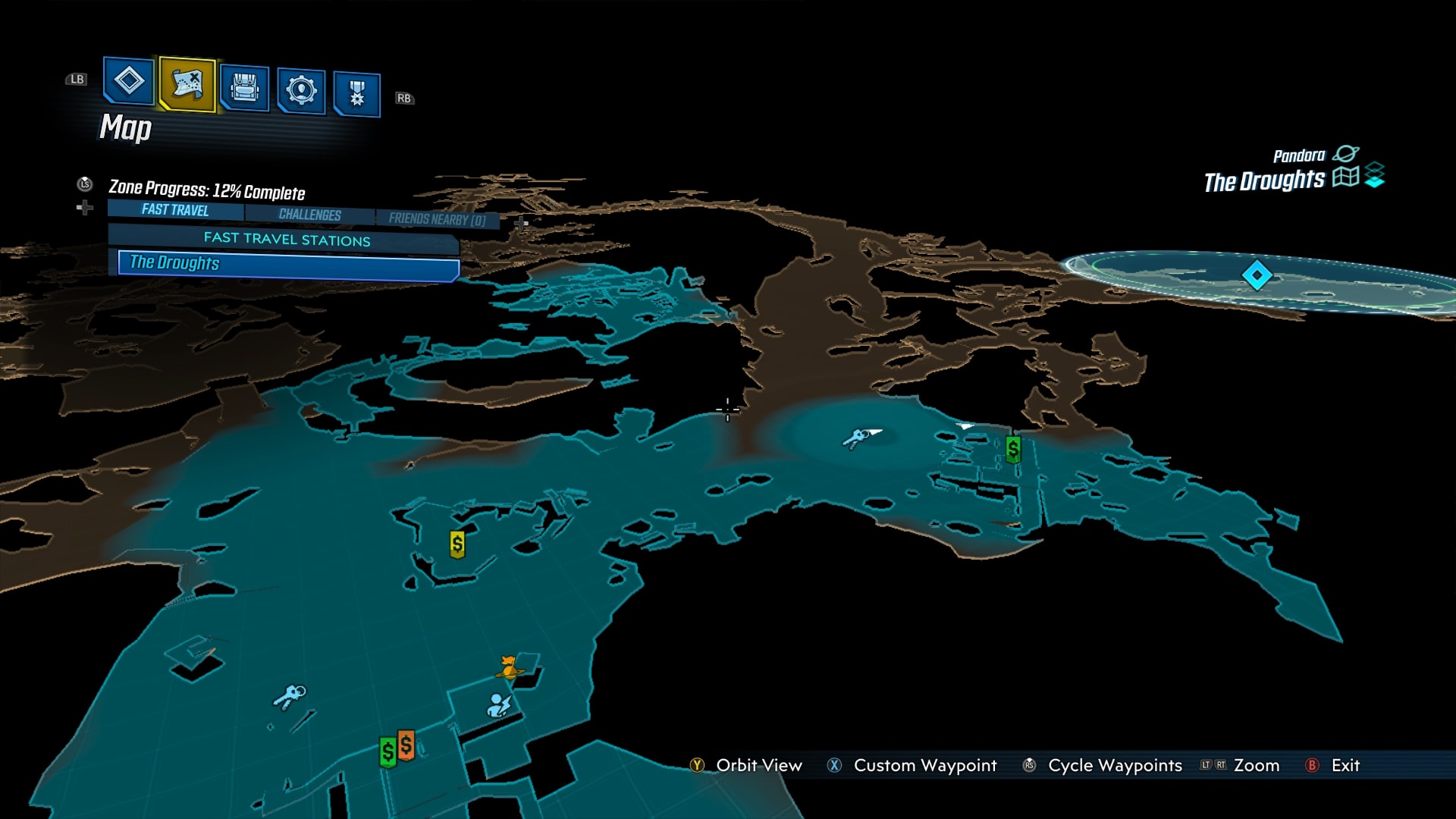 Mapa w Borderlands 3, ta po kliknięciu w ekwipunek, jest świetna. Nie dość, że mamy tam widok na inne planety i całą galaktykę, to wszystko wykonane jest w 3D. Mapę aktualnej lokacji możemy dowolnie obracać, co pomaga rozeznać się po okolicy i pozwala lepiej wytyczyć ścieżki. Straszliwie pomocne!