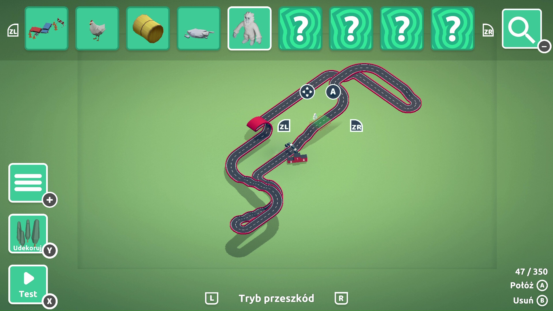 Jeżeli komuś nie wystarczą domyślne trasy, twórcy dali opcję prostego powiększenia tej liczby. Produkcja zawiera edytor plansz, którego obsługa za pomocą kontrolera jest całkiem wygodna.