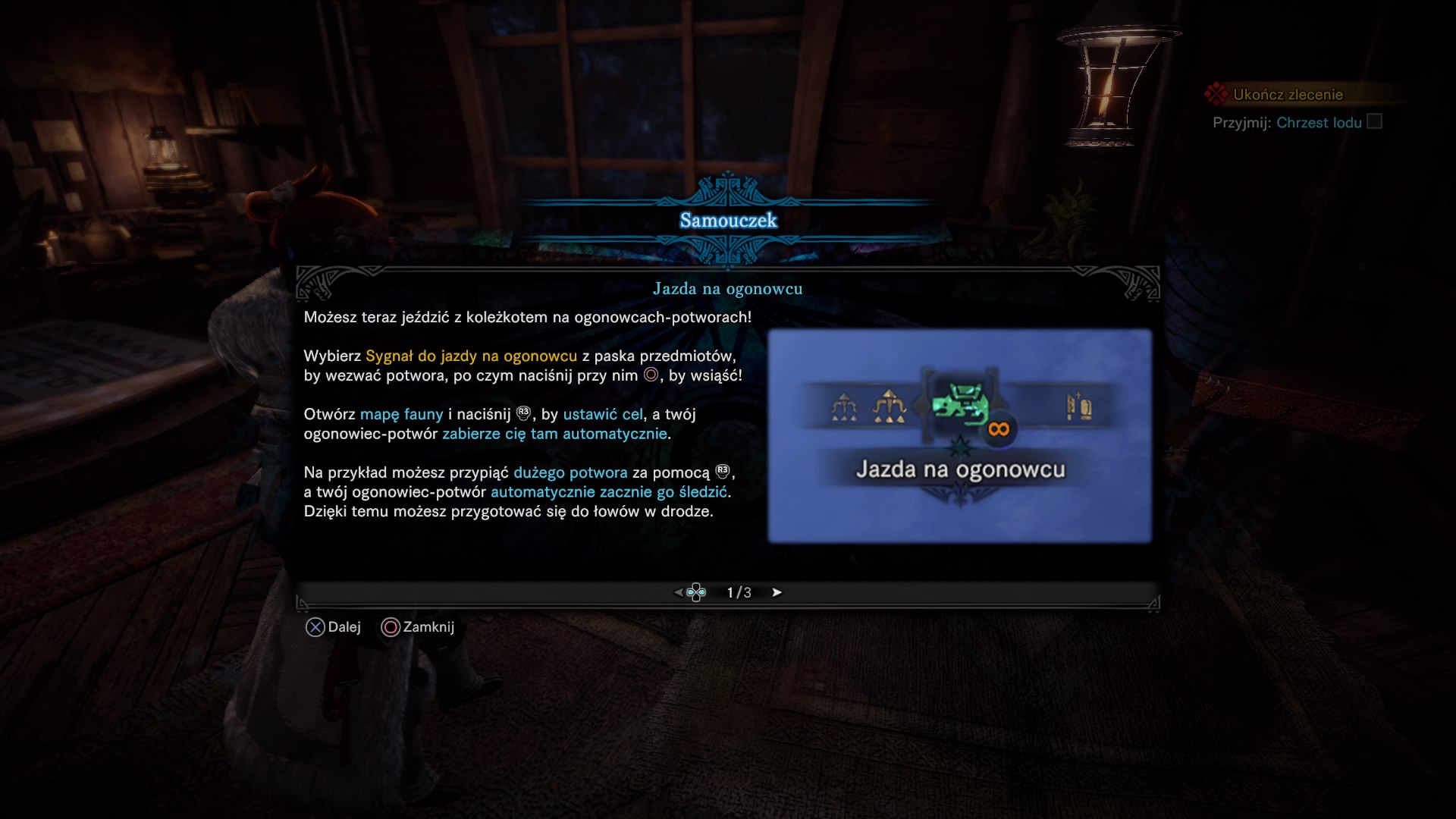 Moim ulubionym dodatkiem została “jazda na ogonowcu”. Gdy nikt nas nie atakuje, to możemy zagwizdać i przywołać małego ogonowca-potwora, na którego grzebiecie będziemy mogli podróżować wraz z koleżkotem w dowolne miejsce. Jest to bardzo przydatne w trakcie walki. Gdy potwór ucieka nam do nowego miejsca, wskakujemy na ogonowca, który automatycznie zabierze nas w kolejny obszar starcia. Kapitalne jest to, że w trakcie jazdy mamy dostęp do ekwipunku, możemy się uleczyć, stworzyć mikstury, czy pułapki oraz naostrzyć broń.