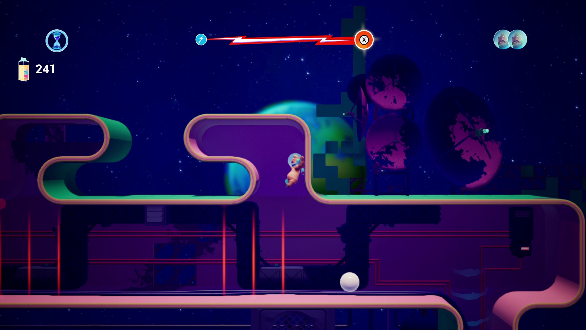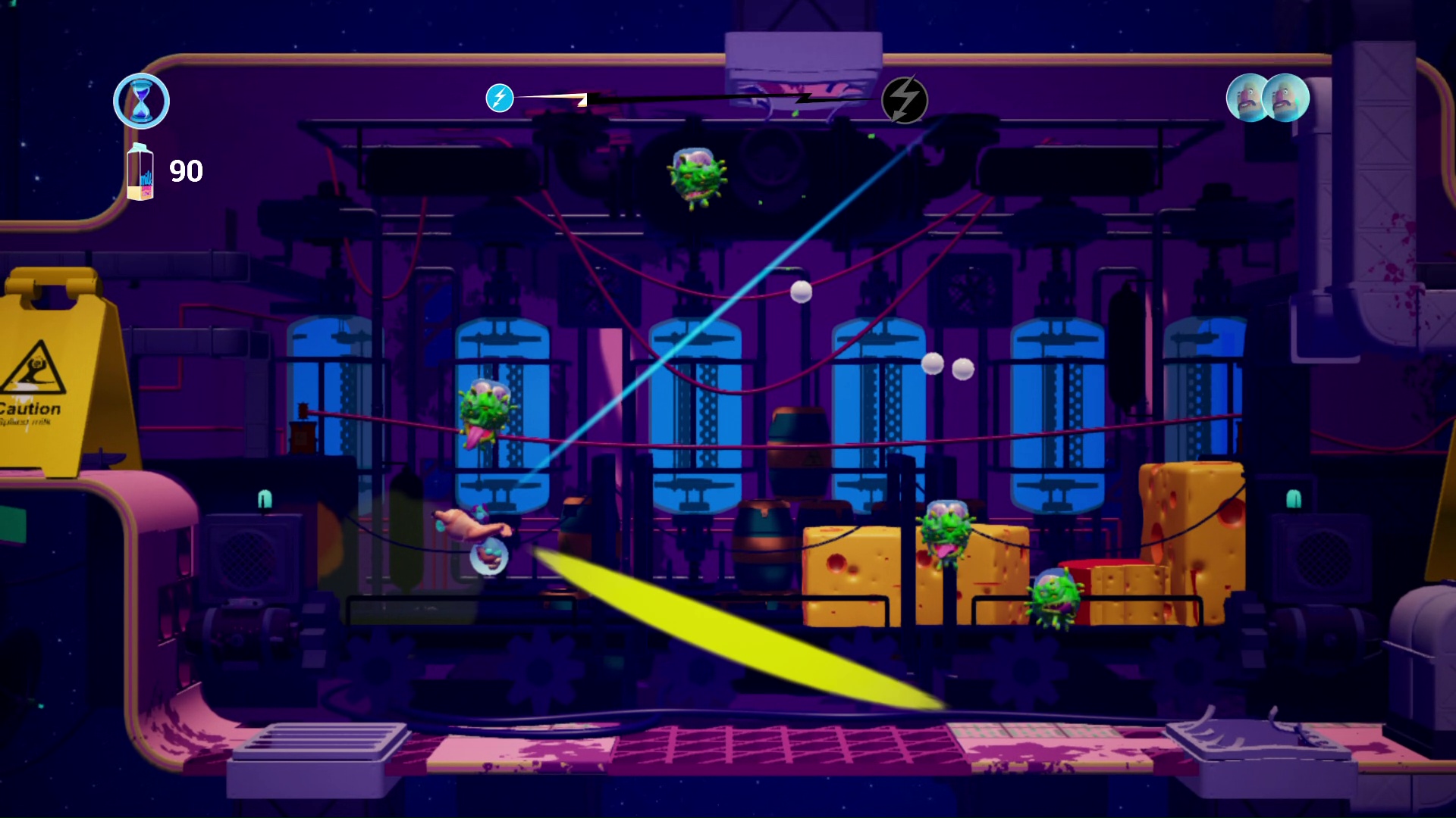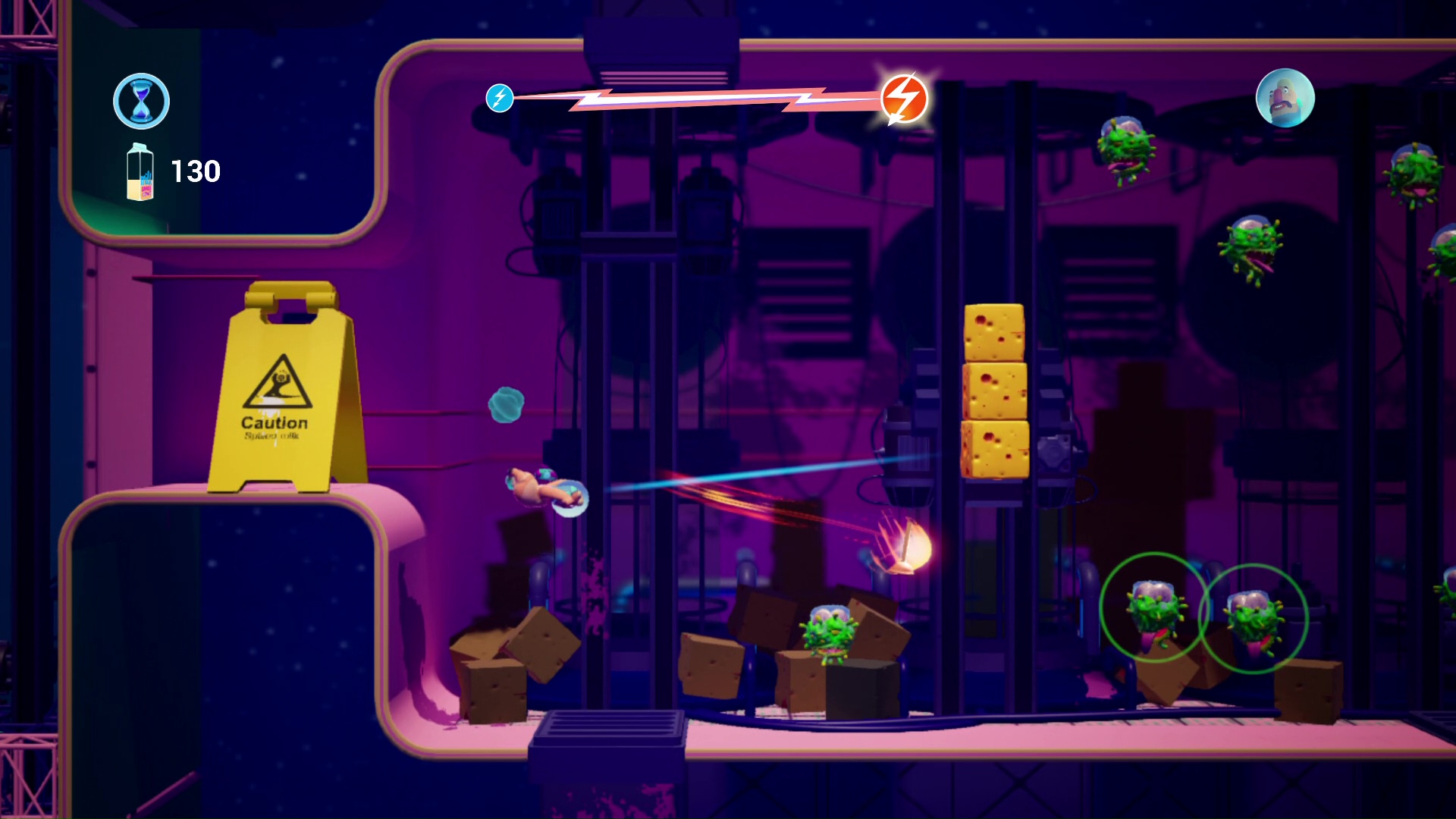 Pod względem rozgrywki mamy tutaj do czynienia z niezłym, całkiem ciekawym twin stick shooterem. Poza poruszaniem się w praktycznie każdym kierunku, kierowany przez nas bohater ma parę przydatnych umiejętności. Potrafi „czmychać” na krótki dystans, co powala przedzierać się przez lasery, strzelać, czy spowalniać chwilowo czas. Wyruszamy więc w podróż przez kolejne etapy i pomieszczenia, walcząc po drodze z napotkanymi, wrogimi Muutantami. Rodzajów przeciwników nie ma niestety zbyt wiele.