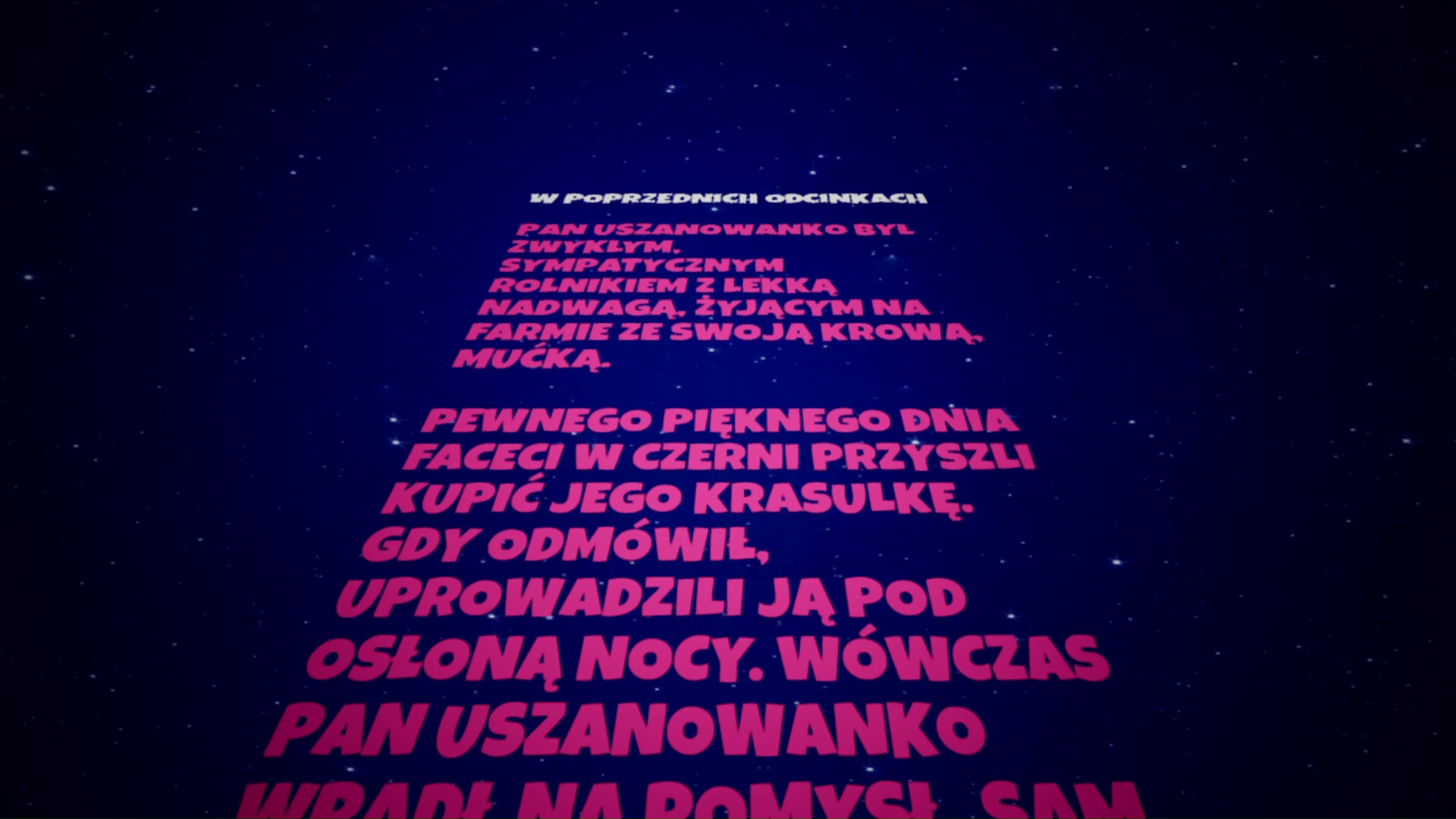 Produkcja oferuje nietypową, pełną humoru historię. Głównym bohaterem jest rolnik zwany Panem Uszanowanko. Jego krowa została uprowadzona, więc… sam postanowił przebrać się za krowę i dał się porwać kosmitom. Wszystko to, by uratować swoją krasulę przed złymi Muutantami.