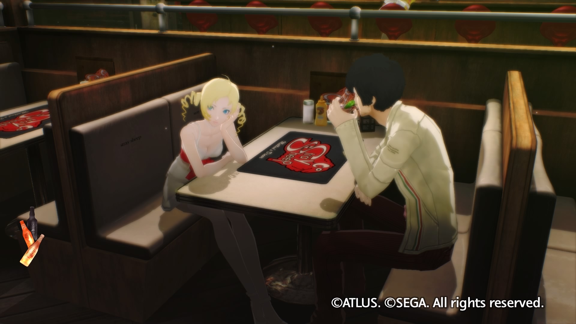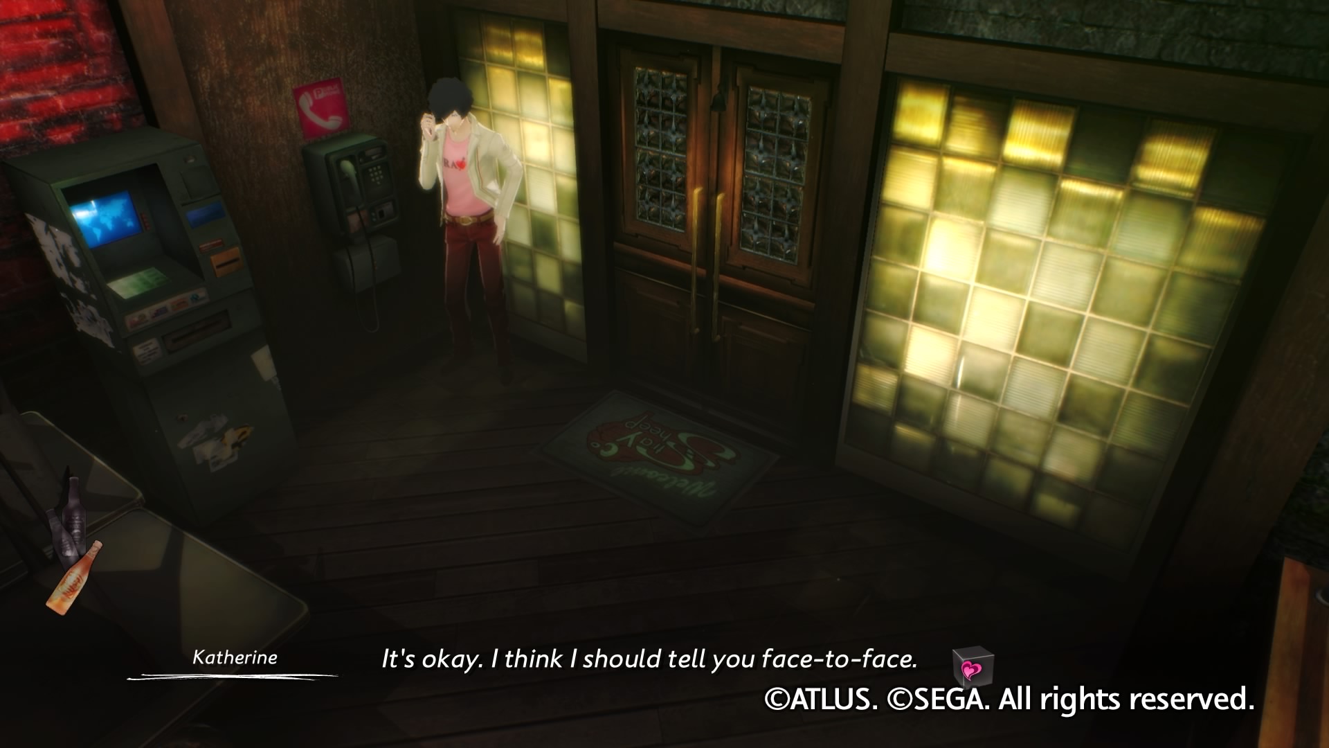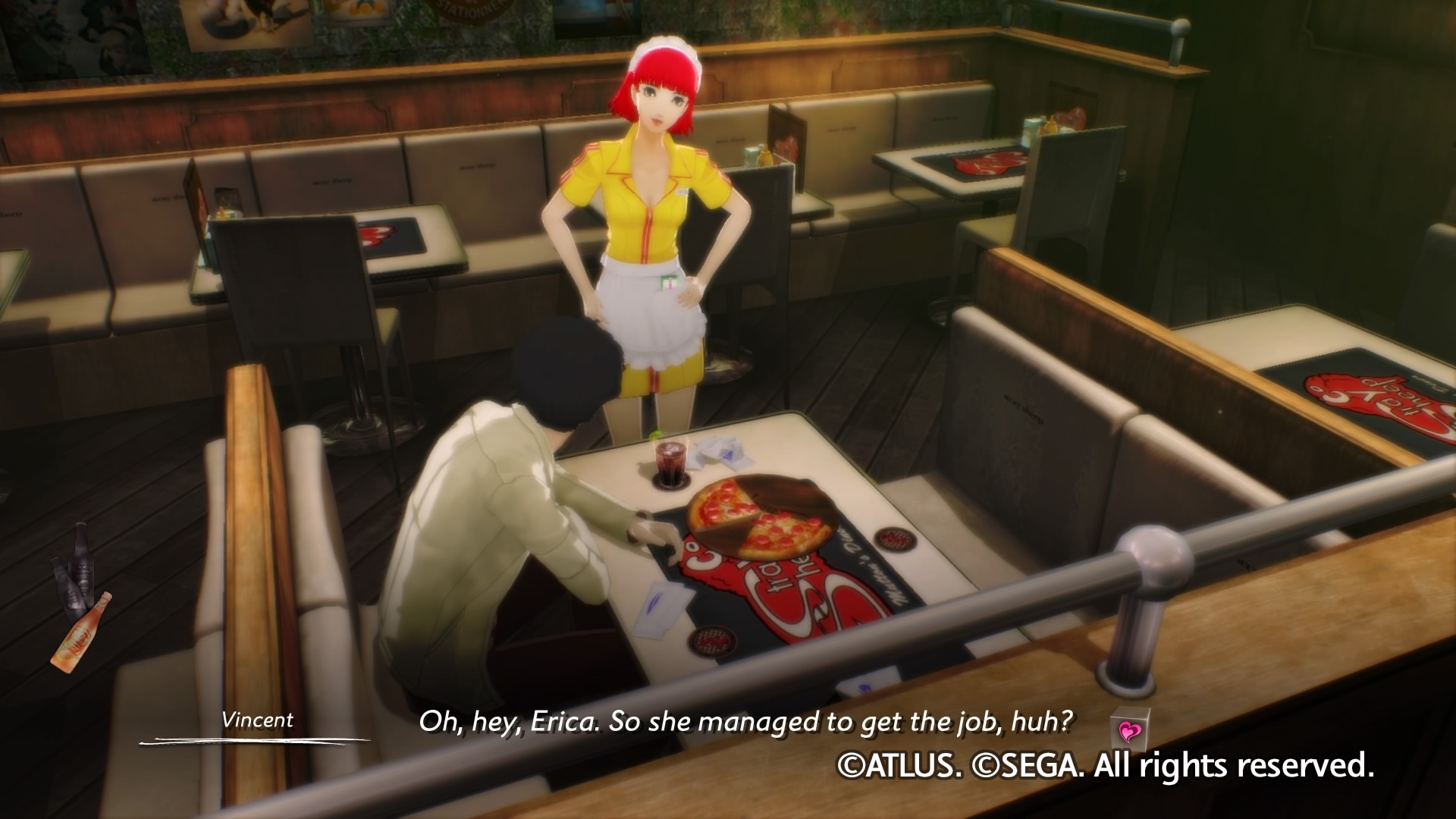 W tym miejscu warto się zatrzymać przy rozgrywce. Trzon zabawy pozostaje podobny. W dzień towarzyszymy Vincentowi w jego normalnych czynnościach. Zazwyczaj ograniczają się one do prostego schematu: pobudka – spotkanie z Katherine/Orlando – wizyta w barze Stray Sheep i rozmowa z ludźmi. Tutaj nic się nie zmieniło od 2011 roku i znowu rozmowy z innymi są najsilniejszym aspektem scenariusza. Każdy ma inne rozterki moralne bądź problemy i tylko my jako główny bohater możemy im zaradzić. Dodatkowo możemy pisać wiadomości do naszych dam serca, pić alkohol, dzięki czemu dowiemy się co nieco o historii konkretnych trunków bądź oddać się graniu na postawionym w barze automacie. Osobiście myślałem, że drugi raz wszystkie te aktywności nie porwą mnie z taką siłą jak za pierwszym razem. Nie mogłem się bardziej mylić. Wszystko od aranżacji przez zarysowanie bohaterów wciąga jak bagno i chcemy, żeby ten bezpieczny czas nigdy się nie skończył.