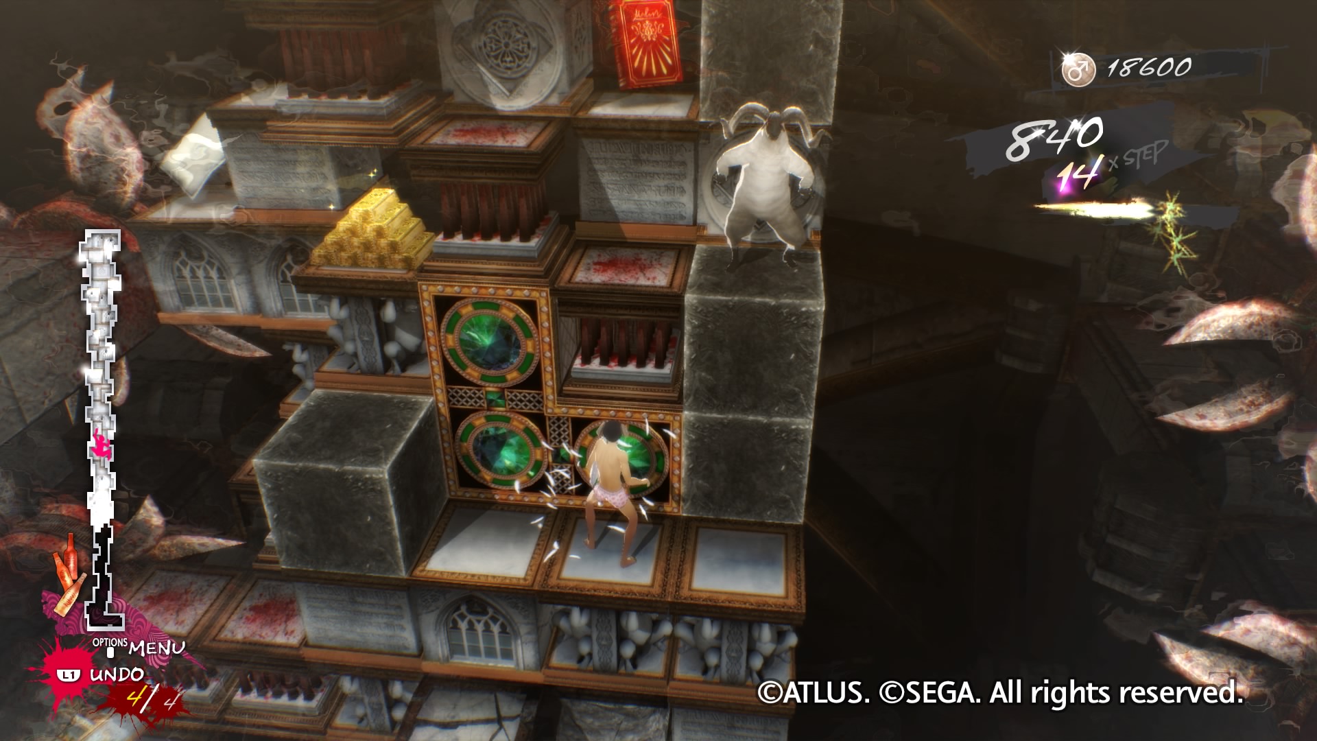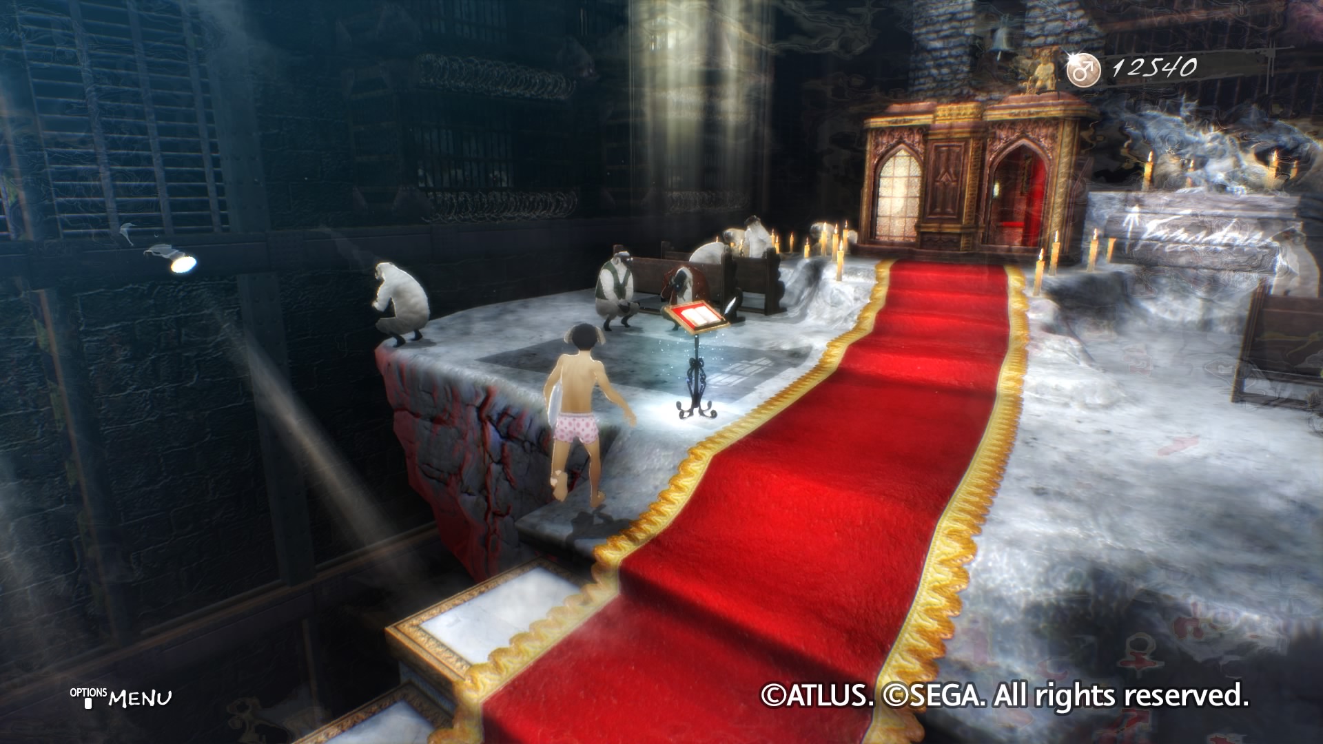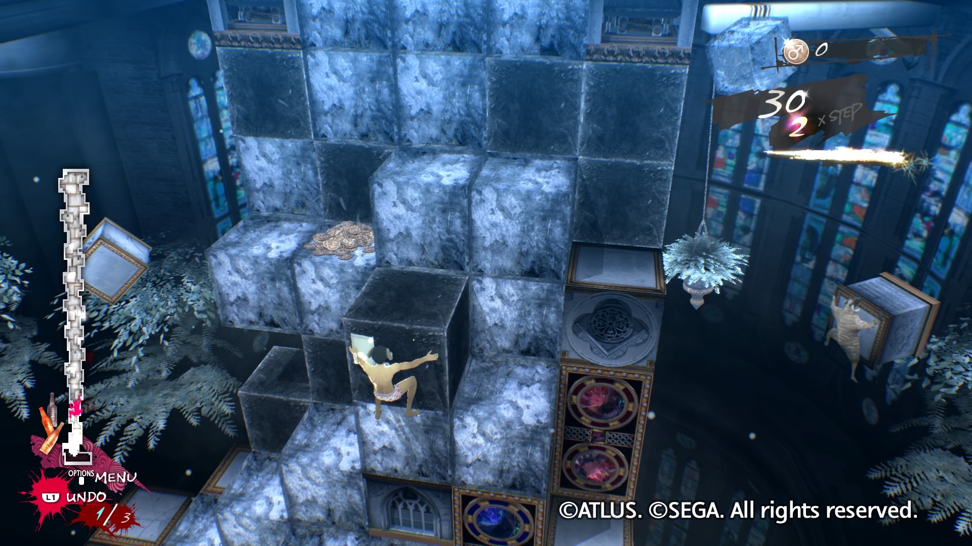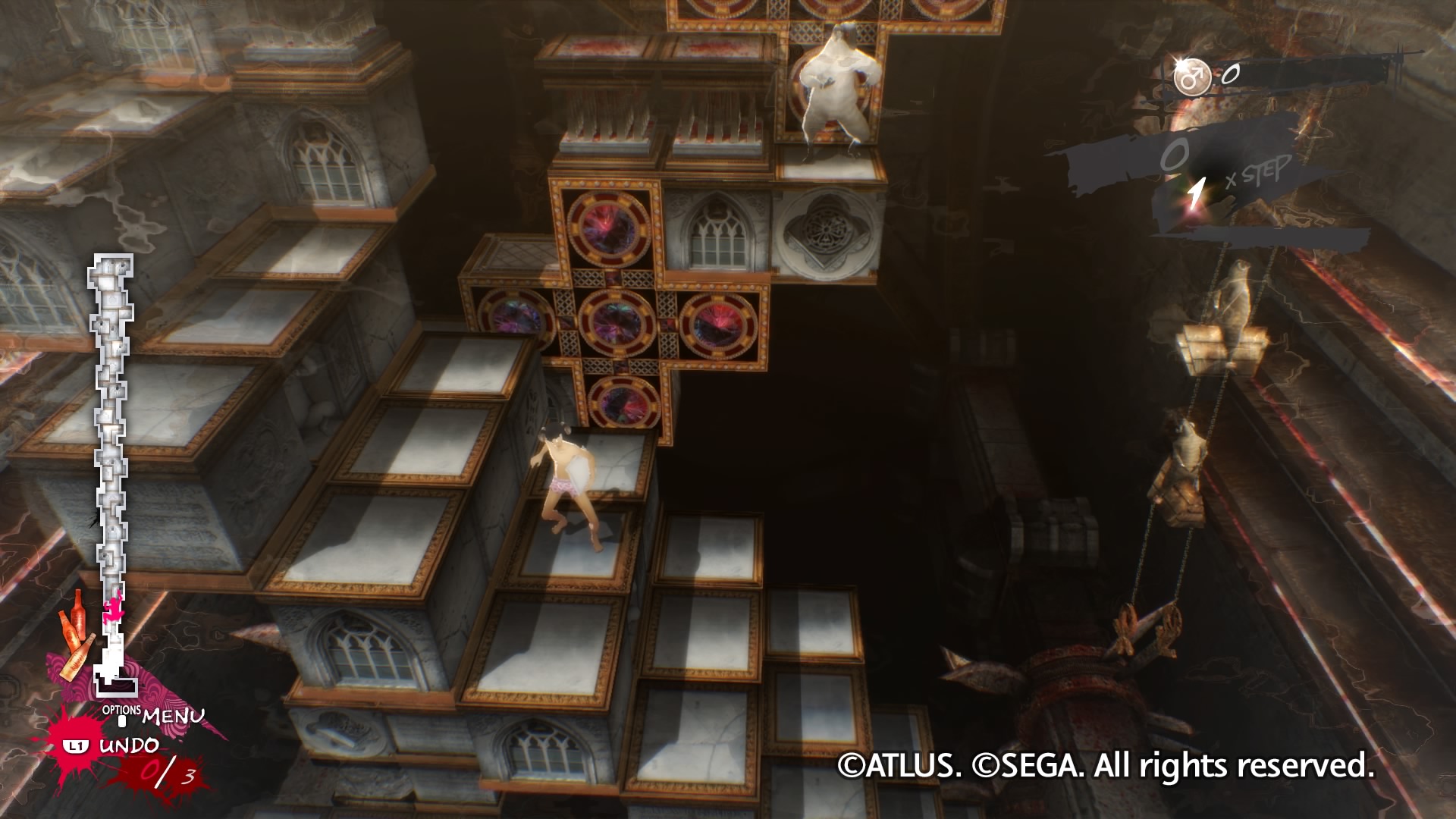 Niestety musimy kiedyś iść spać i tym sposobem trafiamy do naszego koszmaru. Każda noc to inne wyzwania, jakie są stawiane przed naszym bohaterem i stadem owiec, które będą wspinały się po wieżach albo nigdy nie obudzą się ze swojego snu. Powiedzieć, że te etapy są przesiąknięte symboliką i odniesieniami do religii oraz uniwersum Shin Megami Tensei to jak nie powiedzieć nic. Kościelne dzwony, konfesjonał, stado owiec idące na rzeź za swoje grzechy. W tym koszmarze trzeba myśleć szybko i skutecznie bo inaczej upadek zaboli bardziej niż zwykle. Trzon tego segmentu również pozostał nietknięty, całość opiera się na pomyśle gry logicznej w której to przesuwamy odpowiednie bloki by torować sobie drogę na szczyt. I tak jak kiedyś, również teraz niektóre etapy mogą mocno dać się we znaki, jednak samodzielne odkrycie rozwiązania naszego problemu daje ogromne podkłady satysfakcji.