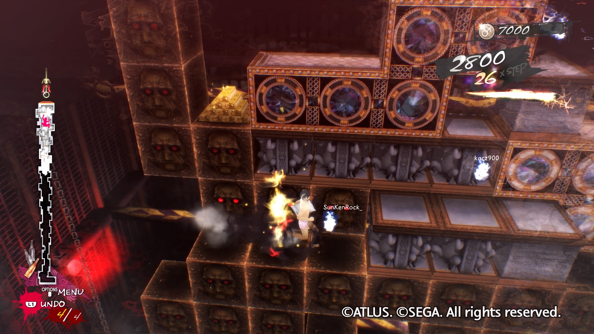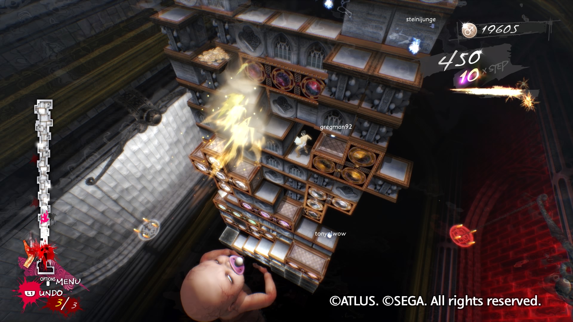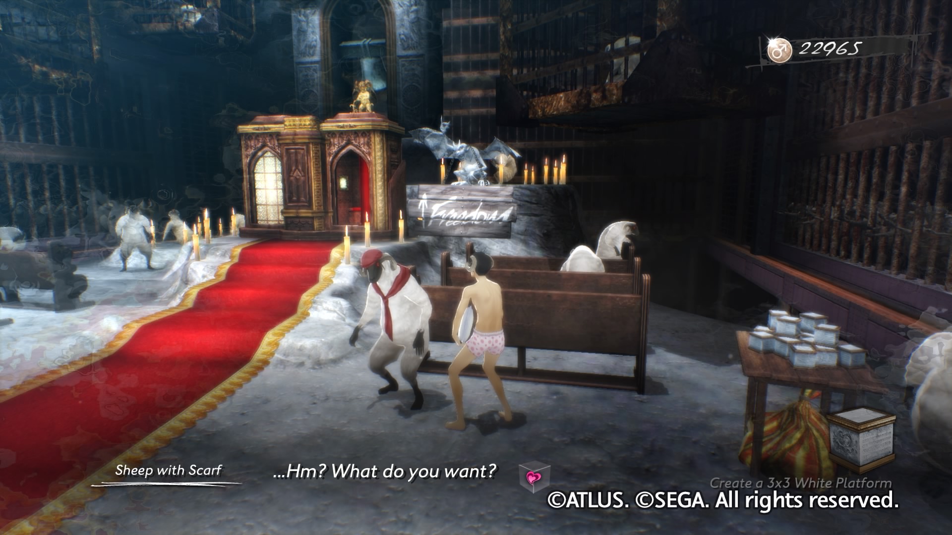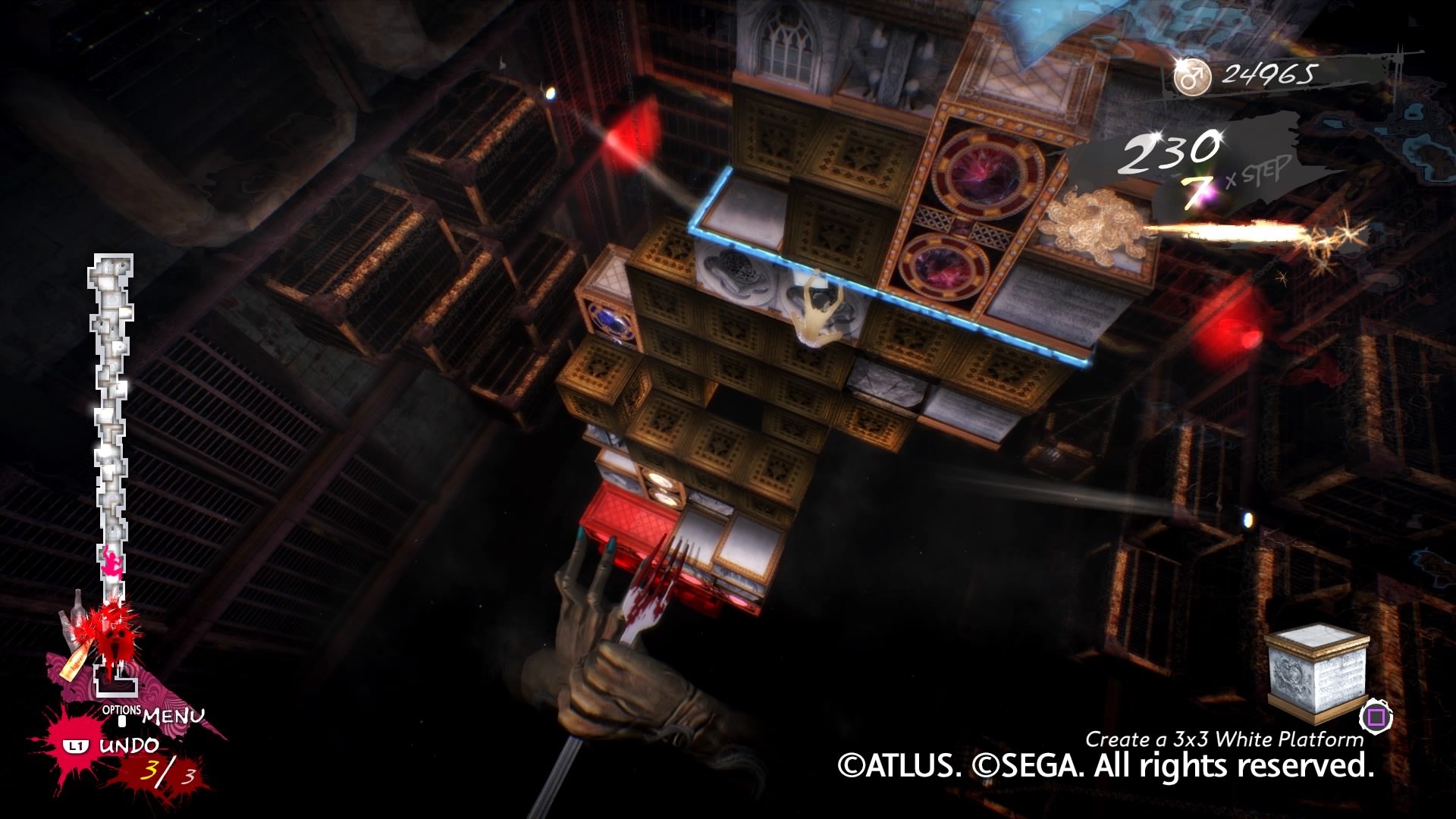 Niestety musimy kiedyś iść spać i tym sposobem trafiamy do naszego koszmaru. Każda noc to inne wyzwania, jakie są stawiane przed naszym bohaterem i stadem owiec, które będą wspinały się po wieżach albo nigdy nie obudzą się ze swojego snu. Powiedzieć, że te etapy są przesiąknięte symboliką i odniesieniami do religii oraz uniwersum Shin Megami Tensei to jak nie powiedzieć nic. Kościelne dzwony, konfesjonał, stado owiec idące na rzeź za swoje grzechy. W tym koszmarze trzeba myśleć szybko i skutecznie bo inaczej upadek zaboli bardziej niż zwykle. Trzon tego segmentu również pozostał nietknięty, całość opiera się na pomyśle gry logicznej w której to przesuwamy odpowiednie bloki by torować sobie drogę na szczyt. I tak jak kiedyś, również teraz niektóre etapy mogą mocno dać się we znaki, jednak samodzielne odkrycie rozwiązania naszego problemu daje ogromne podkłady satysfakcji.