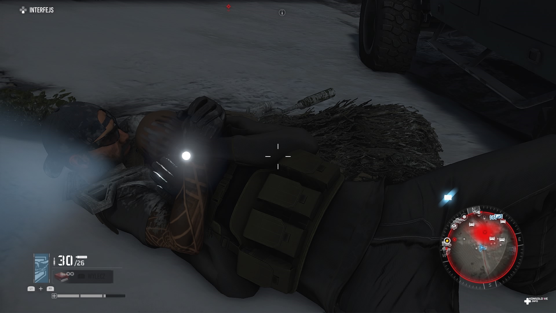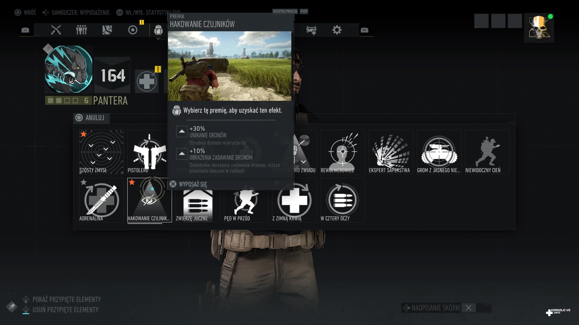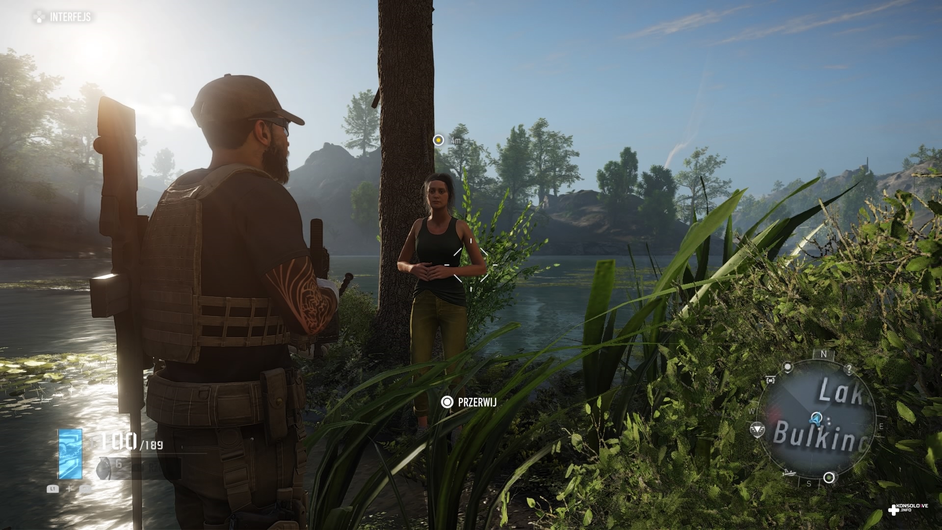 Ghost Recon: Breakpoint wprowadza nowość względem poprzedniej odsłony – element surwiwalowy. Nasza postać musi uważać przy schodzeniu z urwisk – jeden zły krok i tracimy równowagę, co powoduje spadek maksymalnego poziomu paska kondycji. Jeśli zobaczymy, że nie jesteśmy w pełni sił – co jest sygnalizowane czerwonymi krańcami wspomnianego wskaźnika – będziemy musieli wyleczyć kontuzję. Dokonujemy tego na przykład pijąc wodę z manierki, a tę napełniamy przy źródłach pozbawionych zasolenia. Chyba, że wykupimy stosowną umiejętność, która sprawi, że nasza manierka dostanie filtr. Będziemy wtedy mogli ją napełniać nawet w słonych jeziorach. Walcząc z przeciwnikami, możemy odnieść poważne obrażenia, które uniemożliwią nam odzyskanie pełni zdrowia. Będziemy musieli wtedy skorzystać ze strzykawki (mamy ich ograniczoną ilość), aby natychmiast się wyleczyć. Alternatywnie istnieje możliwość zabandażowania ran (mamy nielimitowaną ilość apteczek). Proces ten jest jednak o wiele wolniejszy niż wstrzyknięcie sobie specyfiku, co może być bardzo ryzykowne w trakcie walki. Dodatkowo zakładanie bandaży wygląda mało naturalnie, co skutecznie burzy immersję. Nasz Nomad po prostu odwija ranę bandażem, ale robi to na tyle mało wiarygodnie, że bardzo szybko niedopracowanie animacji bandażowania ran zaczęło mnie irytować.