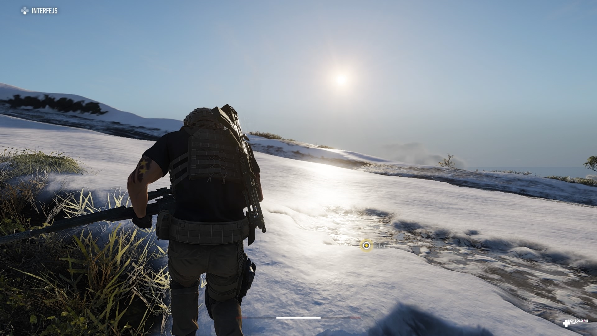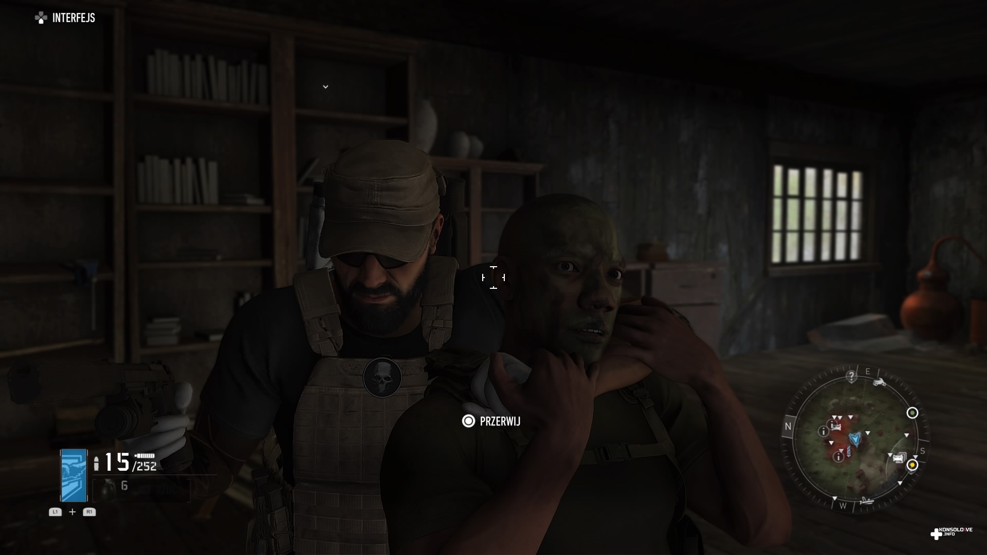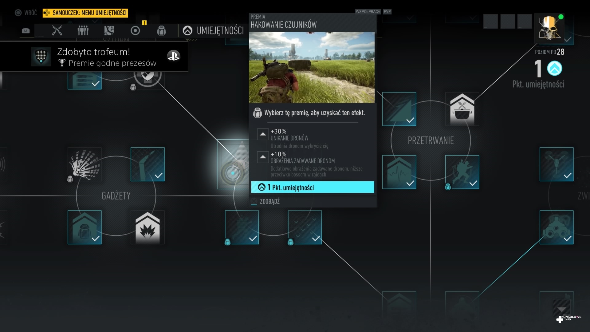Ghost Recon: Breakpoint wprowadza nowość względem poprzedniej odsłony – element surwiwalowy. Nasza postać musi uważać przy schodzeniu z urwisk – jeden zły krok i tracimy równowagę, co powoduje spadek maksymalnego poziomu paska kondycji. Jeśli zobaczymy, że nie jesteśmy w pełni sił – co jest sygnalizowane czerwonymi krańcami wspomnianego wskaźnika – będziemy musieli wyleczyć kontuzję. Dokonujemy tego na przykład pijąc wodę z manierki, a tę napełniamy przy źródłach pozbawionych zasolenia. Chyba, że wykupimy stosowną umiejętność, która sprawi, że nasza manierka dostanie filtr. Będziemy wtedy mogli ją napełniać nawet w słonych jeziorach. Walcząc z przeciwnikami, możemy odnieść poważne obrażenia, które uniemożliwią nam odzyskanie pełni zdrowia. Będziemy musieli wtedy skorzystać ze strzykawki (mamy ich ograniczoną ilość), aby natychmiast się wyleczyć. Alternatywnie istnieje możliwość zabandażowania ran (mamy nielimitowaną ilość apteczek). Proces ten jest jednak o wiele wolniejszy niż wstrzyknięcie sobie specyfiku, co może być bardzo ryzykowne w trakcie walki. Dodatkowo zakładanie bandaży wygląda mało naturalnie, co skutecznie burzy immersję. Nasz Nomad po prostu odwija ranę bandażem, ale robi to na tyle mało wiarygodnie, że bardzo szybko niedopracowanie animacji bandażowania ran zaczęło mnie irytować.