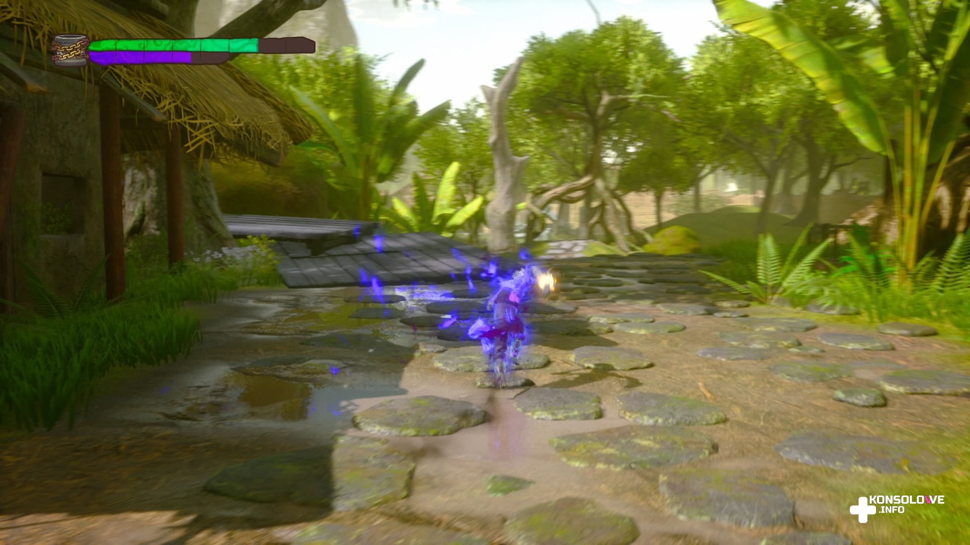 W Monkey King: Hero is Back występują też znajdźki. Podróżując po świecie, znajdziemy tajemnicze zwoje, opisujące historię krainy. To jednak nie wszystko. Podniesiemy też całą masę surowców – a to wątrobę potwora, a to gekona drzewnego, a to lazuryt. Następnie surowce te możemy przekształcić w sklepie na przydatne specyfiki – mikstury leczące i przywracające poziom magii, amulety i płatki dusz – waluty w recenzowanym tytule. Jeśli bowiem zbierzemy odpowiednią ilość dusz, możemy je przeznaczyć na rozwinięcie technik magicznych. Warto też rozglądać się za Bogami Ziemi. Te małe, ceniące spokój stworki zwiększą nasz maksymalny poziom życia, energii magicznej i zadawane obrażenia. Bardzo podoba mi się to, że znajdźki nie pełnią jedynie roli wypełniania czasu, ale są zwyczajnie przydatne.